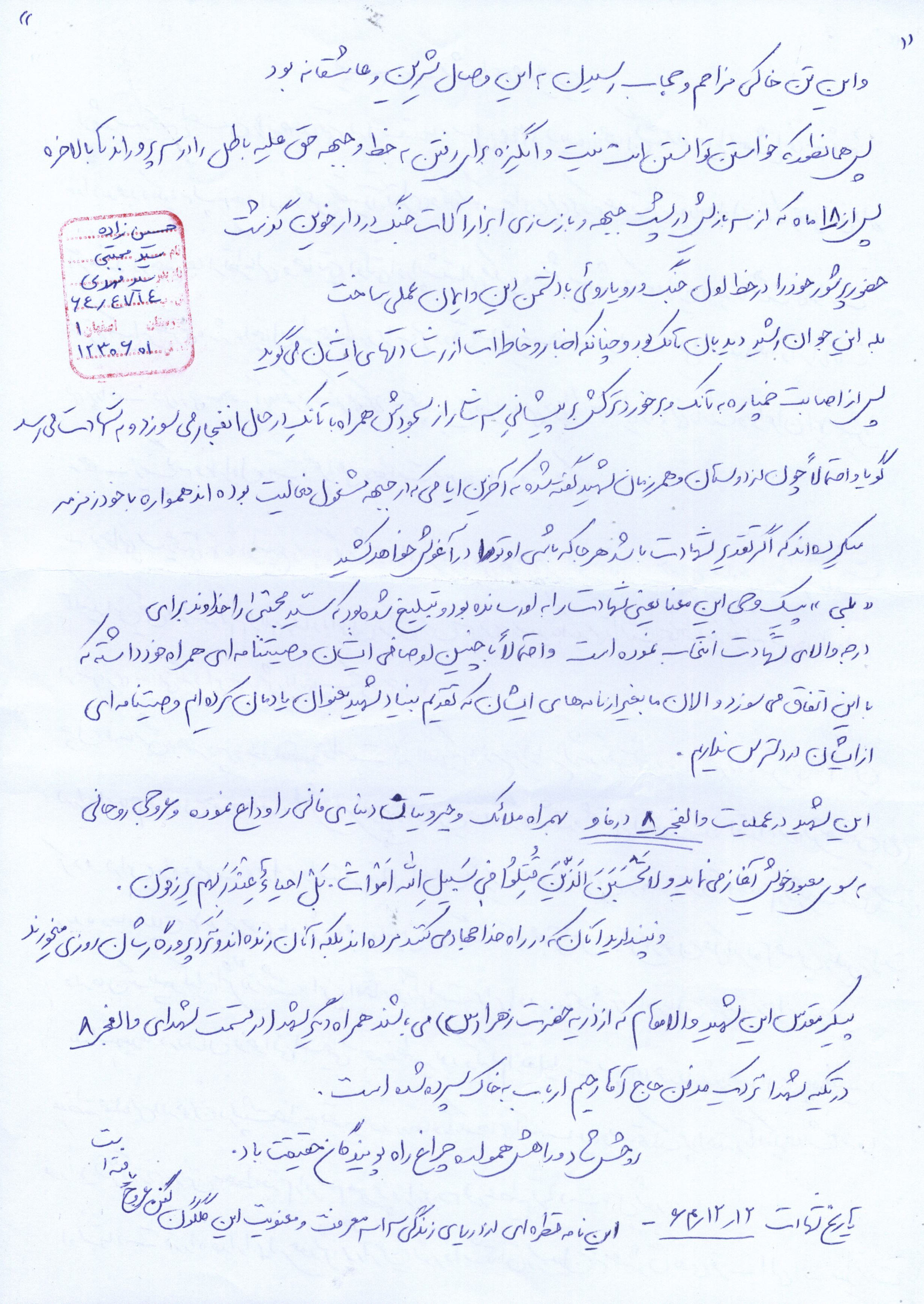 اسناد مرتبط با شهید سیدمجتبی حسین زاده صلاتی