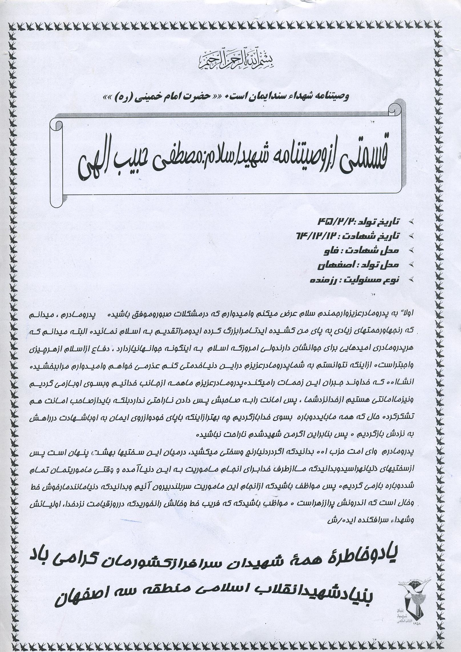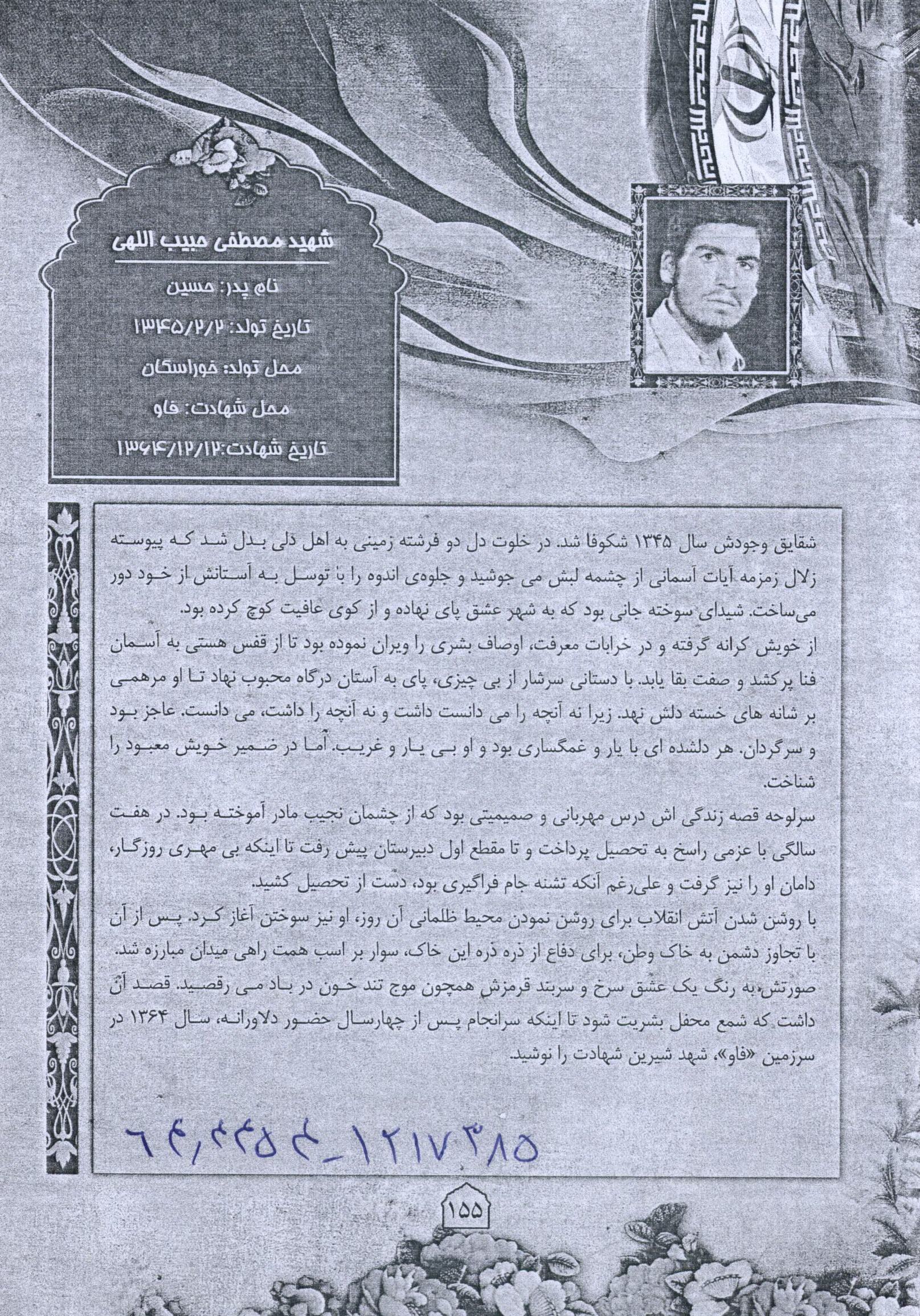 اسناد شناسه: 201347 2022-3-10 12:47 0 دیدگاه اسناد مرتبط با شهید مصطفی حبیب الهی Download : 950867902.jpg Download : 1309765968.jpg Download : 1885534696.jpg