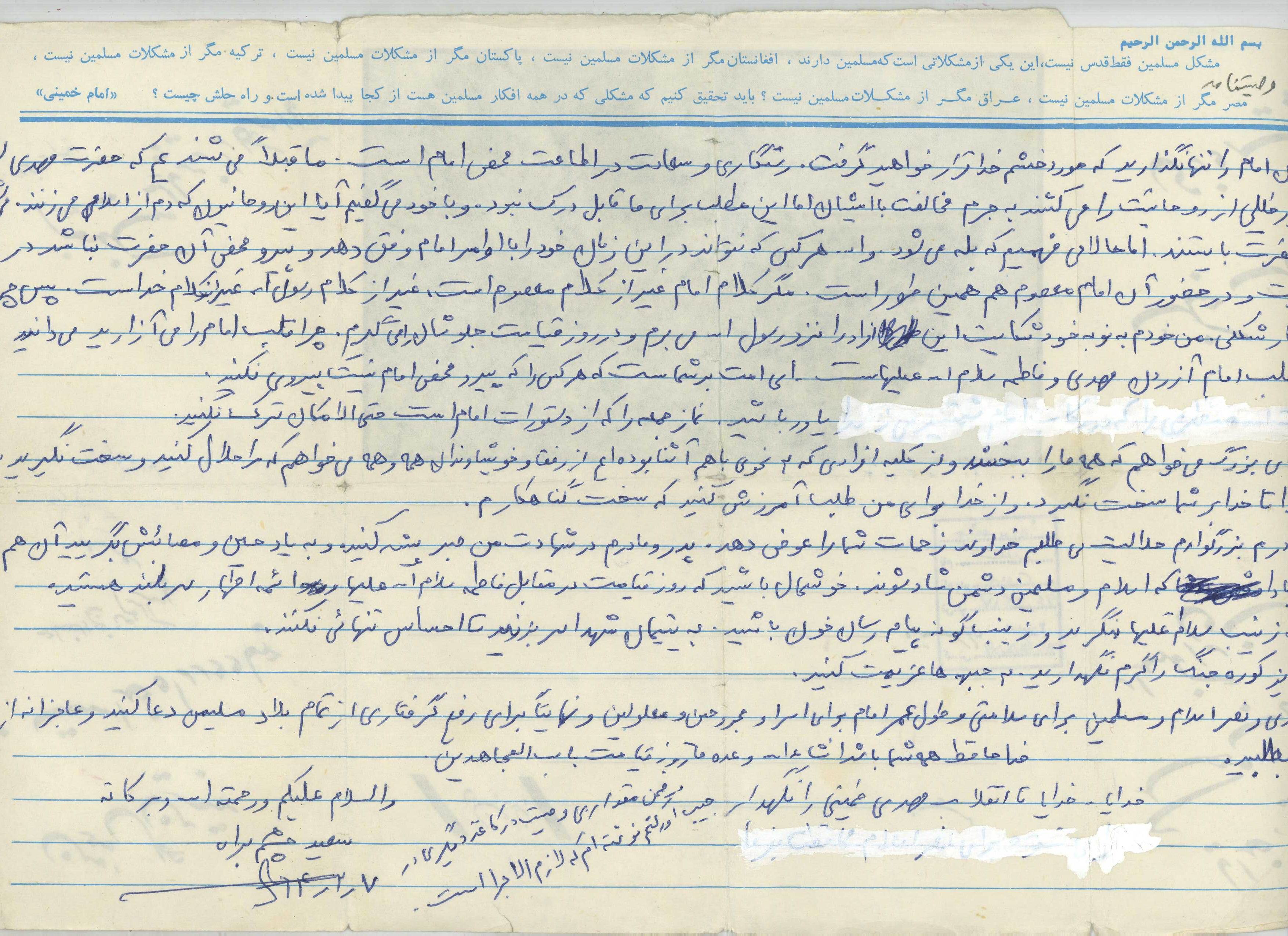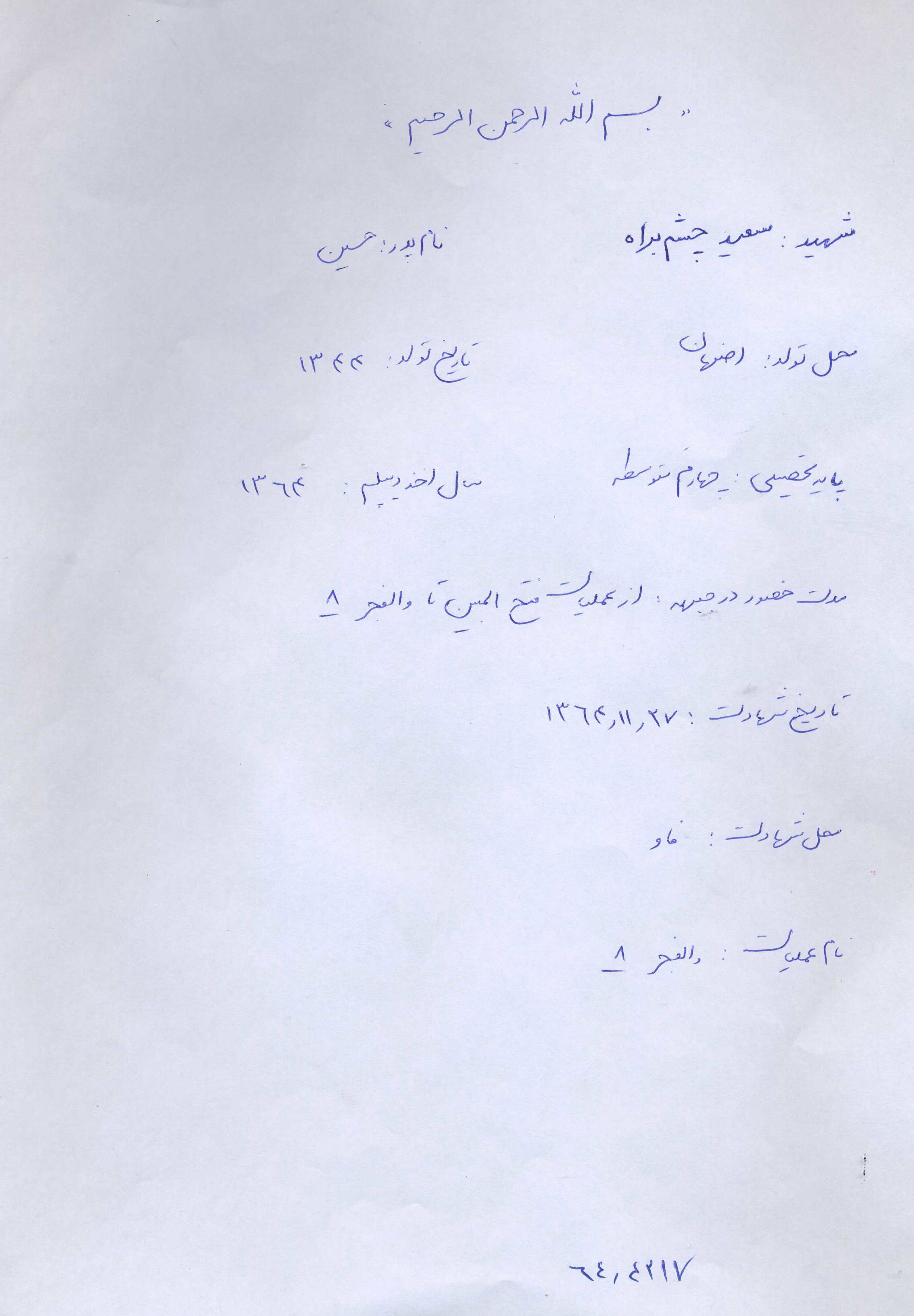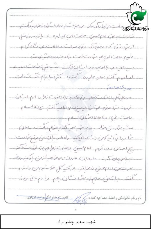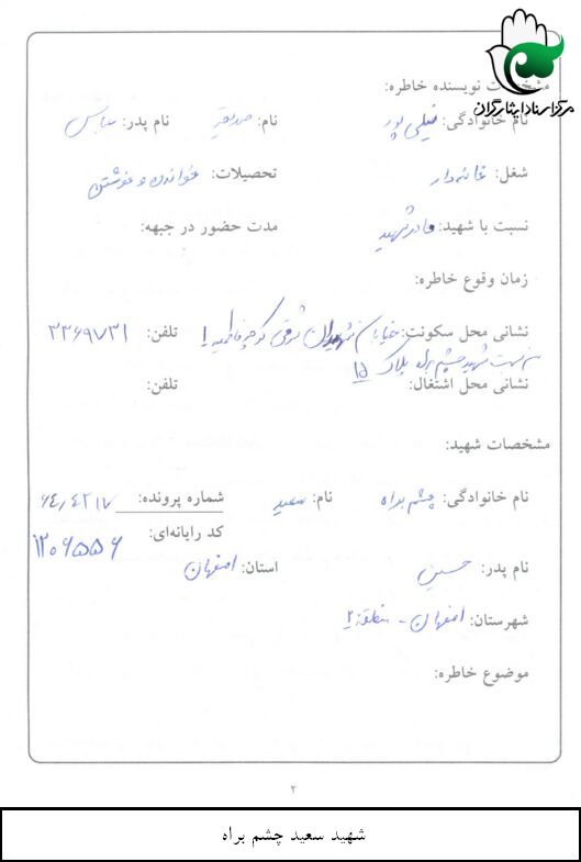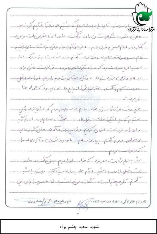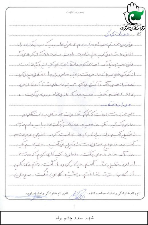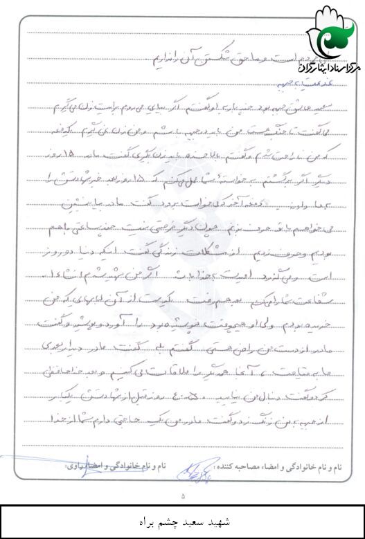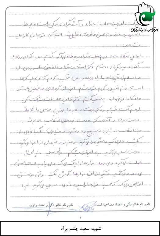 اسناد مرتبط با شهید سعید چشم براه