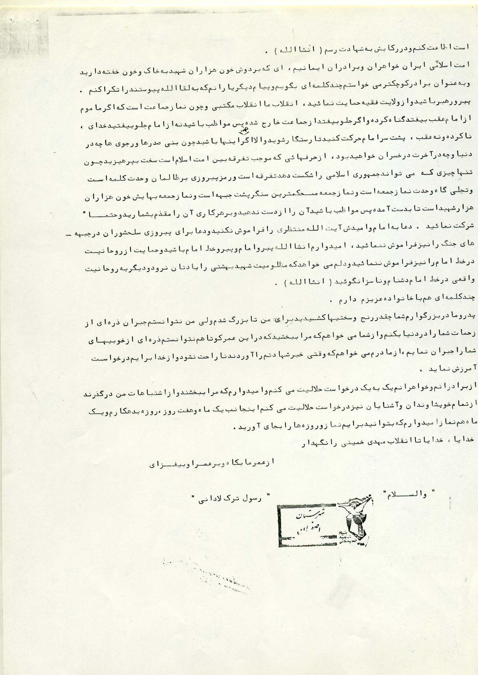 اسناد مرتبط با شهید رسول ترک لادانی