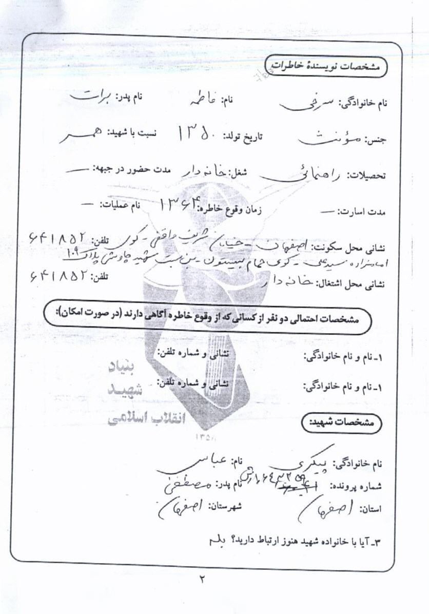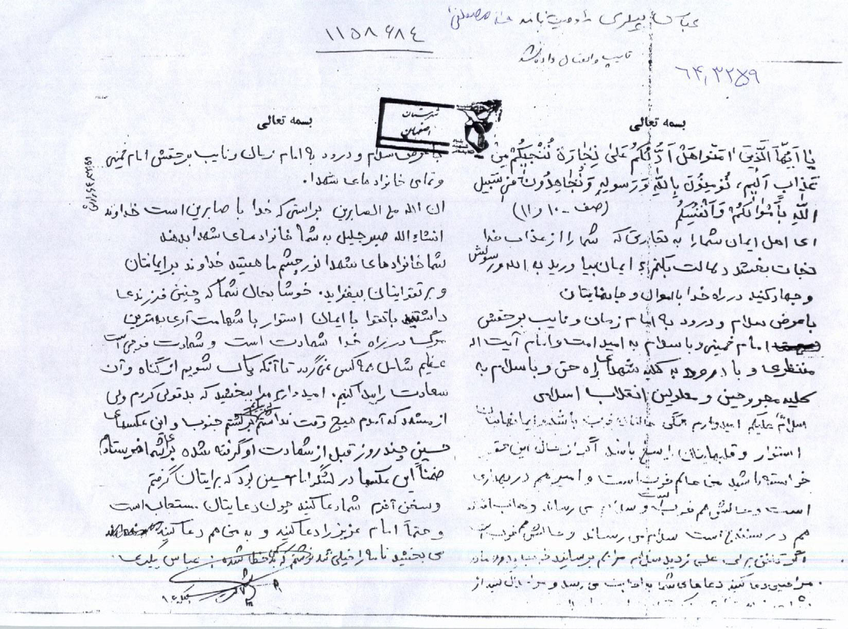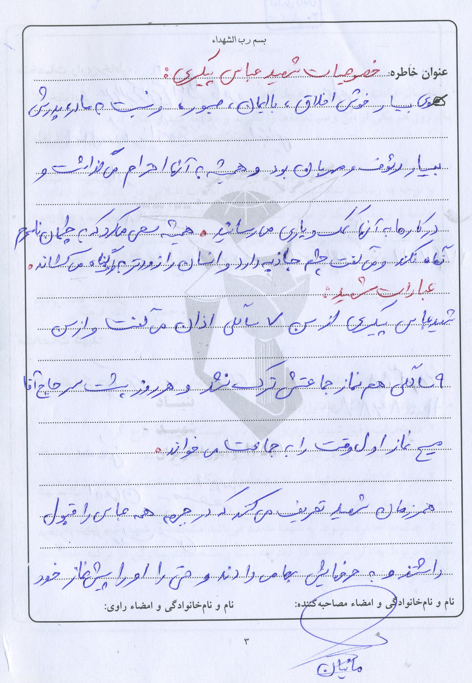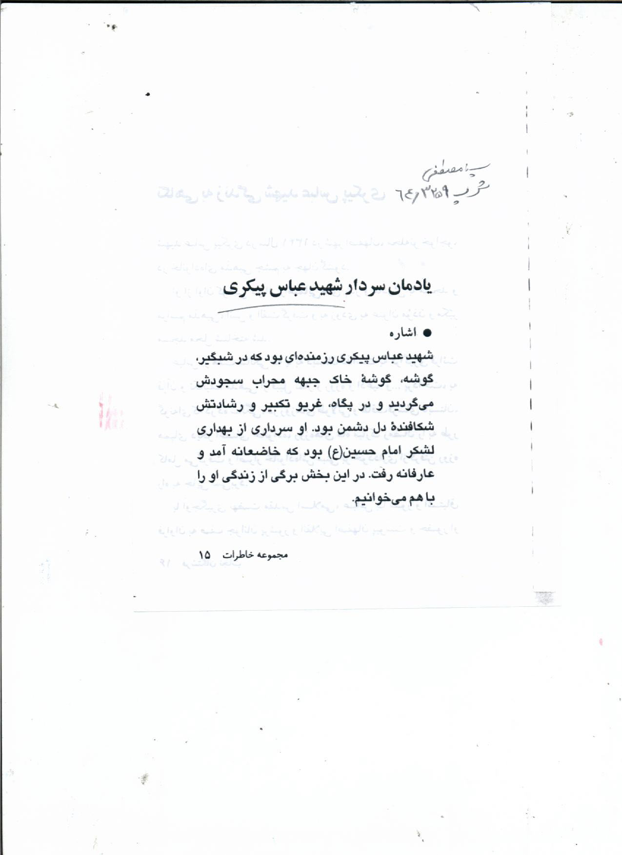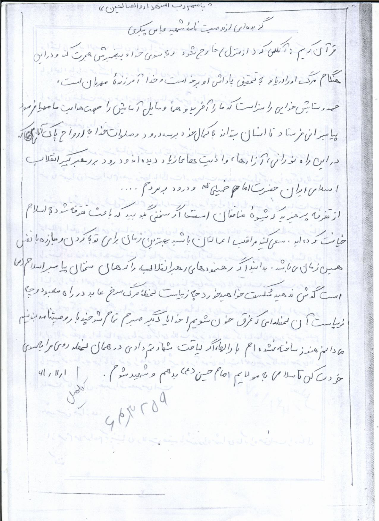 اسناد مرتبط با شهید عباس پیکری