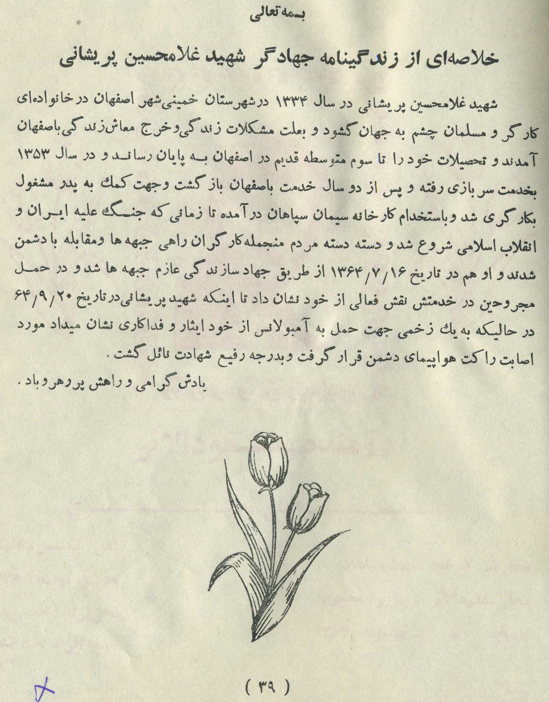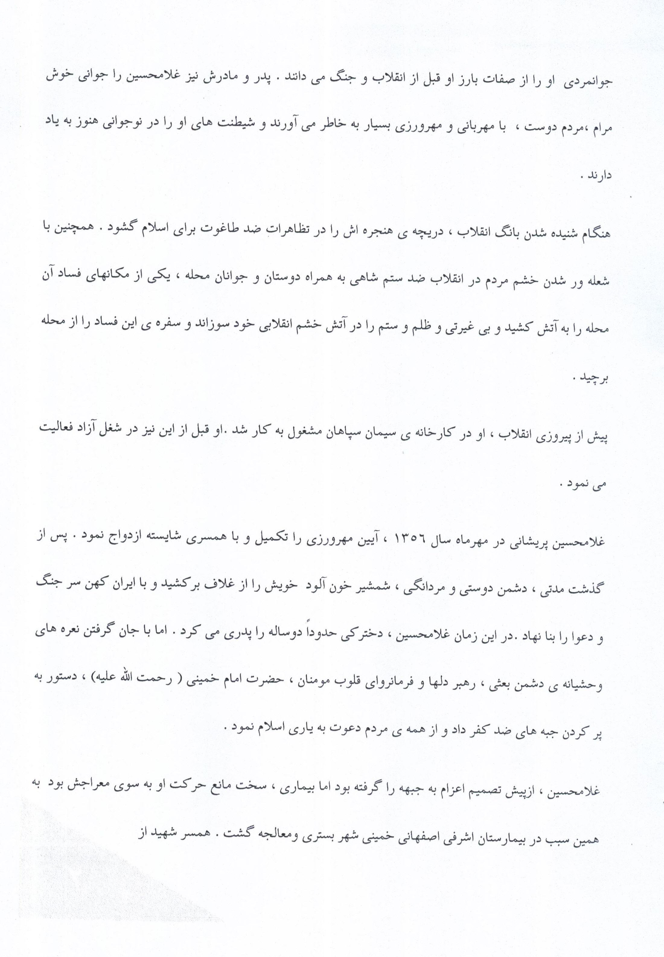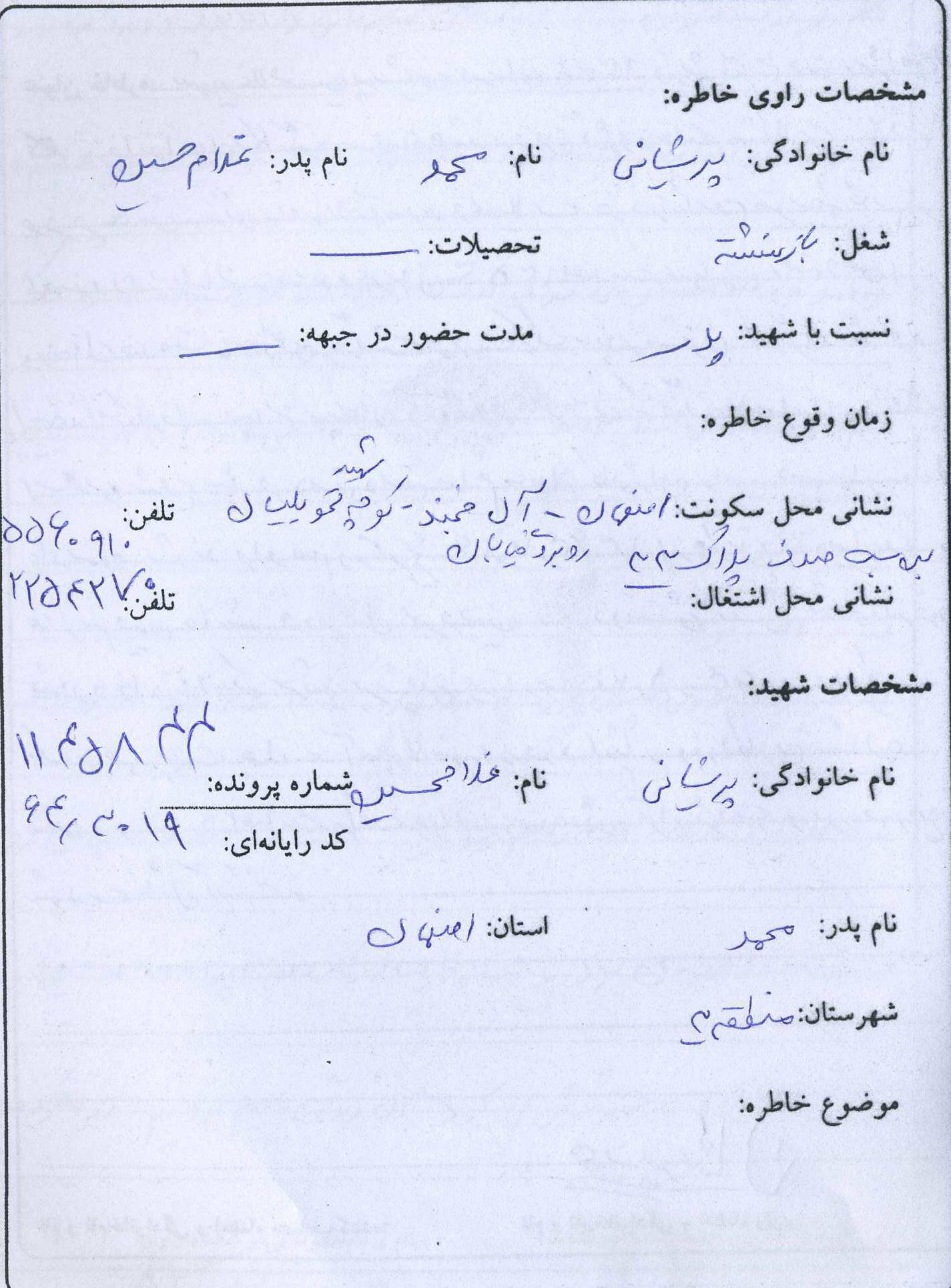 اسناد مرتبط با شهید غلام حسین پریشانی