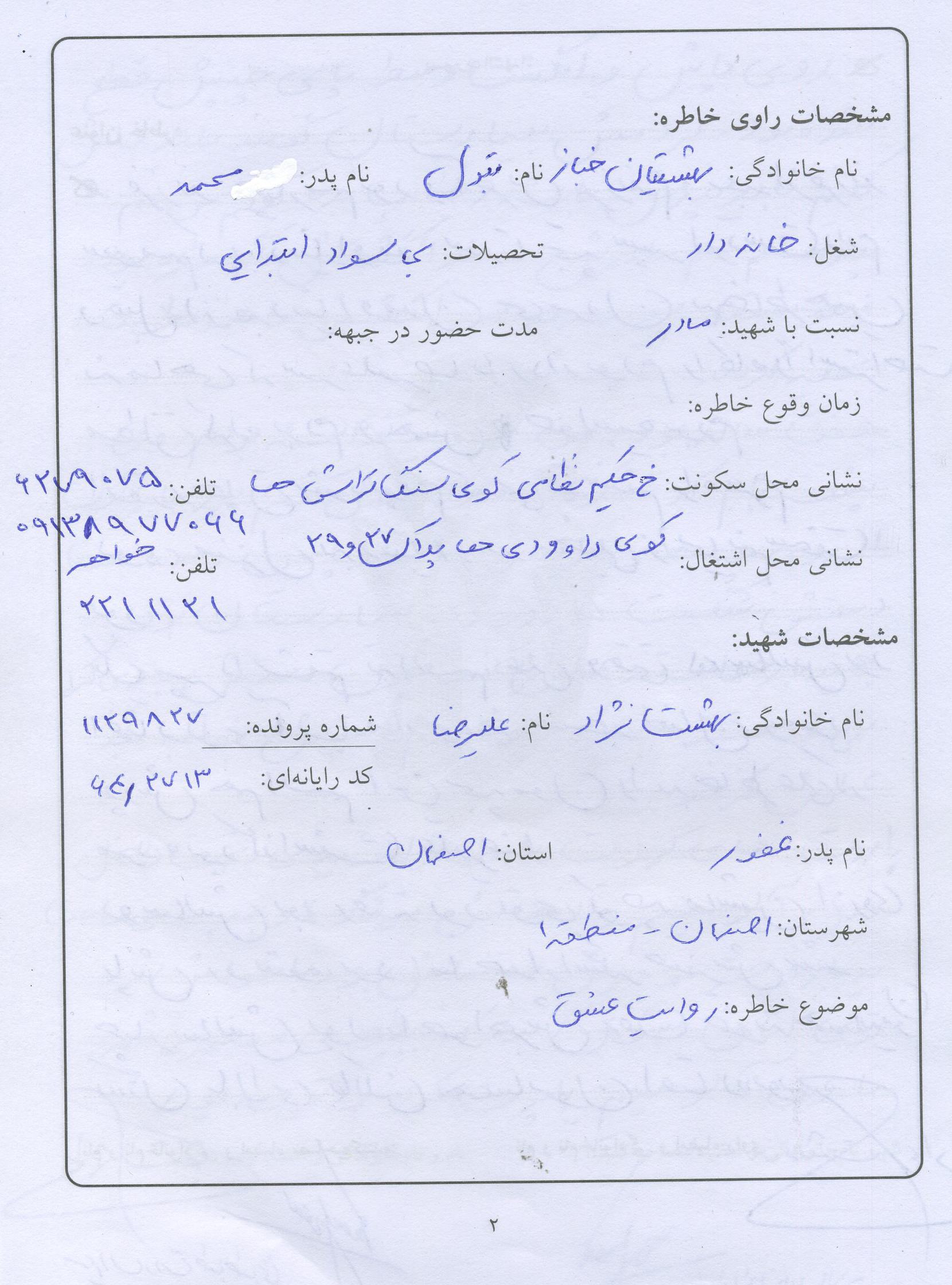 اسناد مرتبط با شهید علی رضا بهشت نژاد