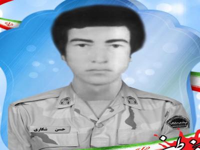 شهید حسن شکاری در آبان ماه 1349 در روستای خرو علیا (طبس) دیدهبه جهان گشود.بعد از اتمام دوره ابتدایی به علت نبود مدرسه راهنمایی در روستا و نیز عدم توانایی خانواده جهت فرستادن وی به شهر مجبور به ترک تحصیل گردید. آن شهید گرامی که جوانی متواضع ، خوش اخلاق و مومن بود ، همچنین از عاشقان راستین حضرت سیدالشهدا (ع) به شمار می آمد در نیمه مهر ماه سال 1368 به خدمت مقدس سربازی اعزام شد و در زاهدان شروع به خدمت نمود.وی که در طول خدمت خود دلیرانه برای دفاع از اسلام و میهن اسلامی خود تلاش نمود بعد از حدود ده ماه خدمت صادقانه در تاریخ 1369/05/07هنگام مبارزه با اشرار و قاچاقچیان از خدا بی خبر به درجه رفیع شهادت نایل آمد و یاد و نام خود را در صحنه روزگار و صفحات تاریخ جاودانه ساخت.