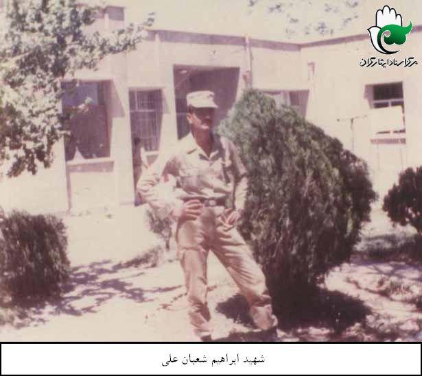 شهید ابراهیم شعبانعلی تا سن 13 سالگی مانند دیگر افراد به درس خواندن و زندگی عادی مشغول بود تا اینکه با به پایان رساندن سال دوم راهنمایی دیگر تصمیم گرفت که به میدان جنگ برود زیرا آن زمان، زمان جنگ و دفاع از میهن بود. این شهید 4 ماه از طریق جهاد فرهنگی به جبهههای حق علیه باطل رفت و پس از گذراندن این زمان 3 ماه از طریق بسیج به جنگ علیه دشمن ادامه داد و به علت علاقهای که به دفاع از وطن خویش داشت وارد ارتش شد و بعد از گذراندن دوره مقدماتی اولیه در شاهرود و سپس دوره تخصصی که در شیراز بود فارغ التحصیل شد و پس از سازماندهی در گروه 22 توپخانه؟؟؟ مشهد رضا این یگان را به مناطق جنگی اعزام کردند و این شهید بدون اینکه به خانواده خود خبر دهد خود را به منطقه میرساند و تا مدتی هیچ کس از وضع او خبر نداشت تا اینکه بعد از 3 ماه در حالی که از ناحیه پا مجروح بود خود را به منزل رساند و بعد از 10 روز استراحت دوباره به منطقه رفت تا اینکه بعد از 15 روز خبر شهادت آن برادر را به خانوادهاش دادند و آن طور که معلوم بود به خاطر ترکشی که به گردن او اصابت کرده بود شهید شده بود. این برادر با خوفشانی خود از میهن خود دفاع کرد و خود را فدای این راه نمود. پس نگذاریم که خون این شهیدان پایمال شود و با ادامه دادن راه آنها از دین و میهن خود دفاع کنیم.