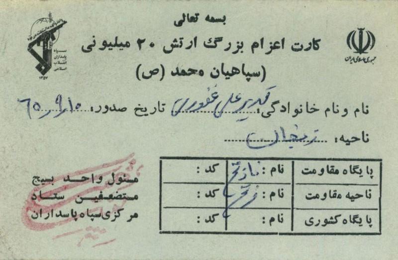 شهید قدیر علی غفوری، پنجم مهر 1333، در روستای بهرامآباد از توابع شهر قزوین به دنیا آمد. پدرش بابا (فوت1339) کشاورز بود و مادرش فیروزه نام داشت. در حد خواندن و نوشتن سواد آموخت. کارگر بود. سال 1357 ازدواج کرد و صاحب دو پسر و دو دختر شد. از سوی بسیج در جبهه حضور یافت. بیست و ششم دی 1365، در شلمچه بر اثر اصابت ترکش به گردن، شهید شد. مزار او در گلزار شهدای شهر زادگاهش واقع است.