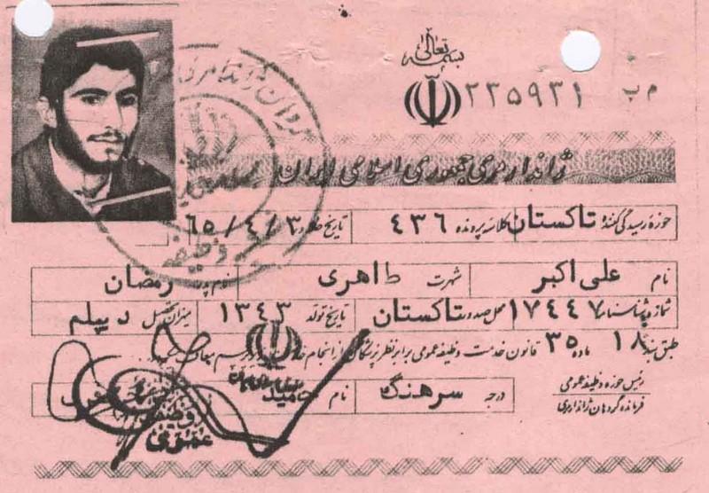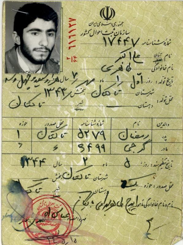 شهید علی اکبرطاهری، یکم مهر 1343، در شهر تاکستان به دنیا آمد. پدرش رمضانعلی، کشاورز بود و مادرش گرجی نام داشت. تا پایان دوره متوسطه درس خواند و دیپلم گرفت. از سوی بسیج در جبهه حضور یافت. دوم بهمن 1365، در شلمچه بر اثر اصابت ترکش به دست، چشم و شکم، شهید شد. مزار او در گلزار شهدای ضیاء آباد واقع است.
