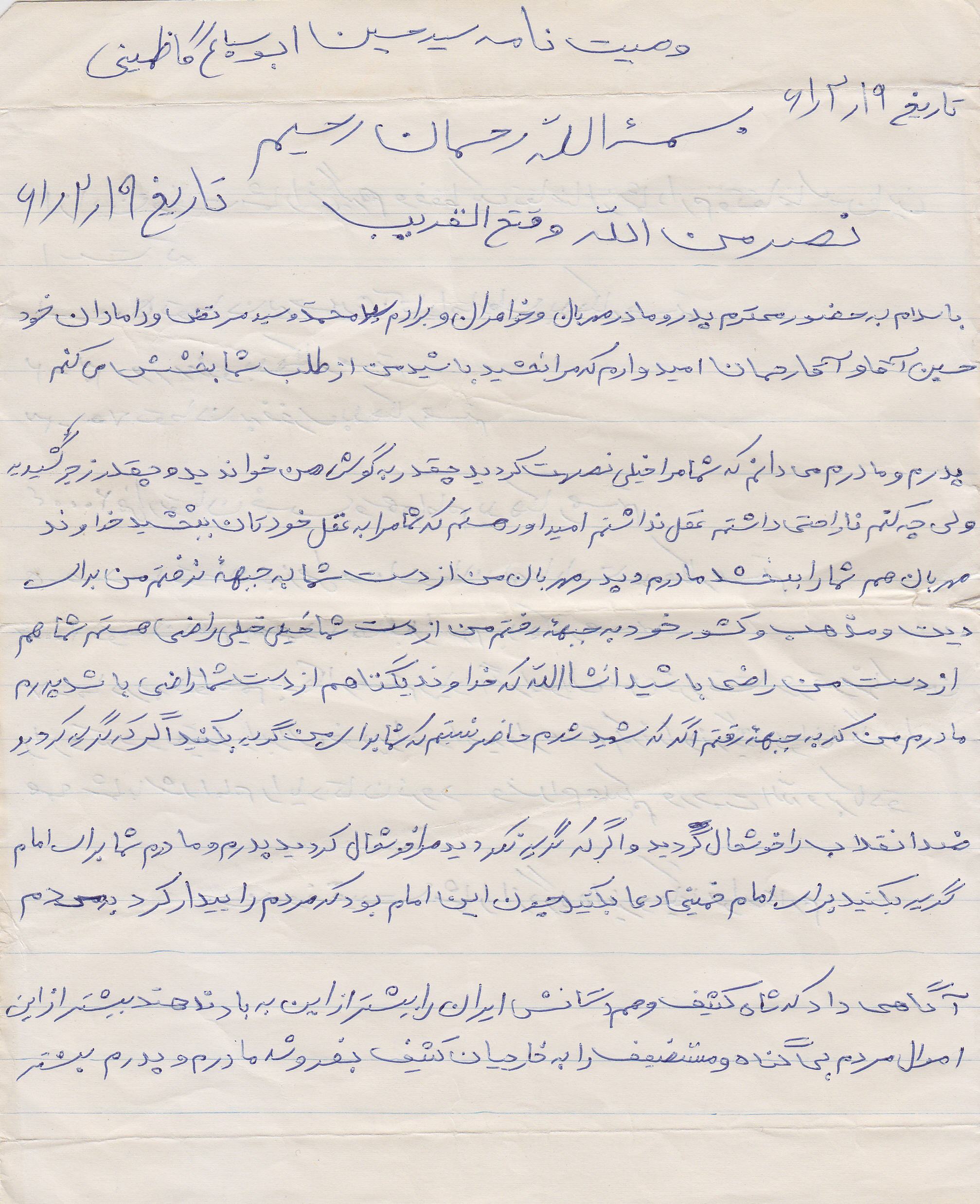 اسناد شناسه: 206198 ۱۴۰۰-۱۲-۱۹ ۱۳:۵۹ 0 دیدگاه اسناد مرتبط با شهید سیدحسین ابوسباغ کاظمینی دانلود : 373984697.jpg دانلود : 537459981.jpg دانلود : 1050722029.jpg