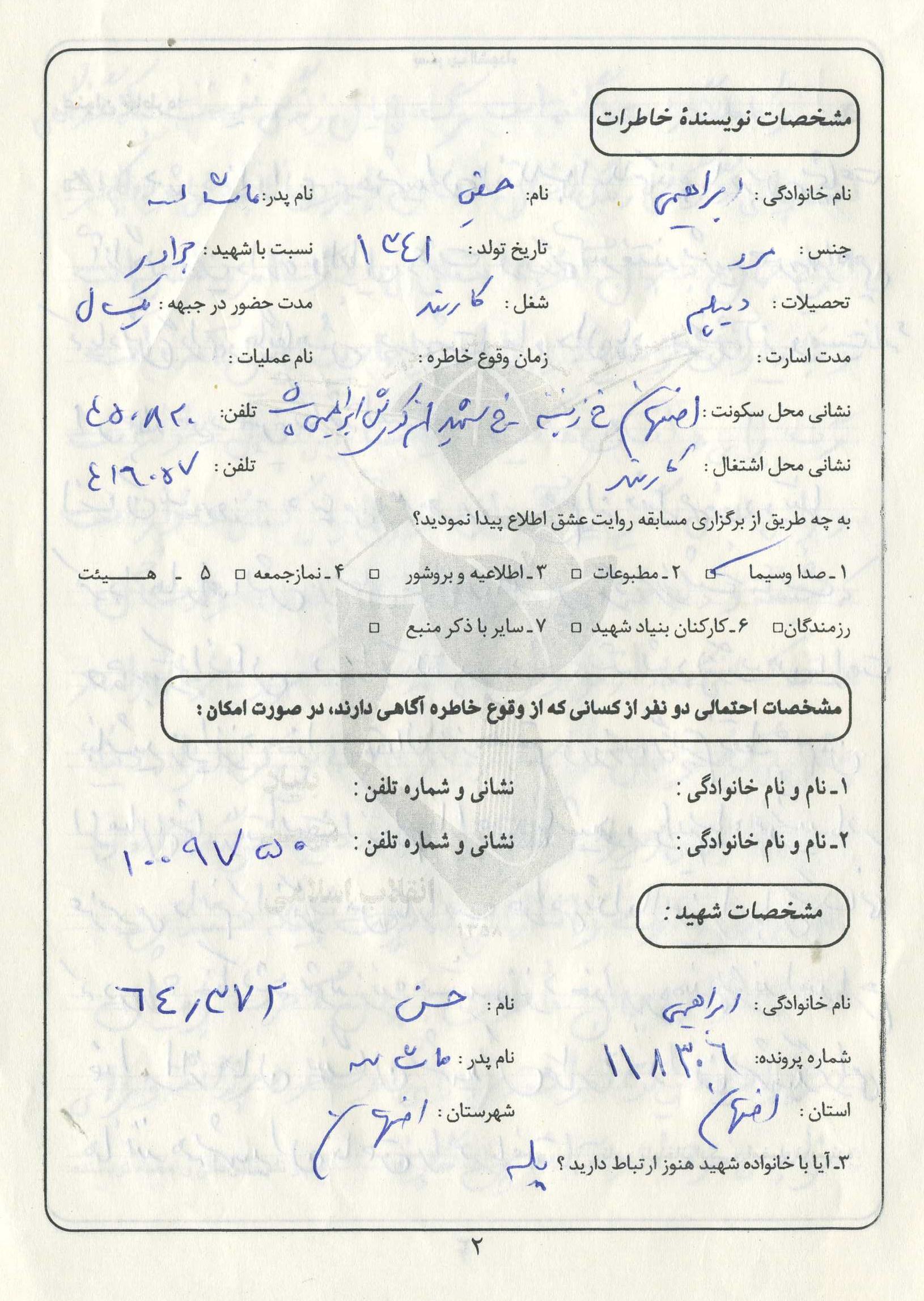 اسناد شناسه: 206363 ۱۴۰۰-۱۲-۱۹ ۱۴:۰۱ 0 دیدگاه اسناد مرتبط با شهید حسن ابراهیمی دانلود : 499181530.jpg دانلود : 305407742.jpg دانلود : 2019139896.jpg دانلود : 1297506037.jpg دانلود : 1953637253.jpg دانلود : 1688490429.jpg