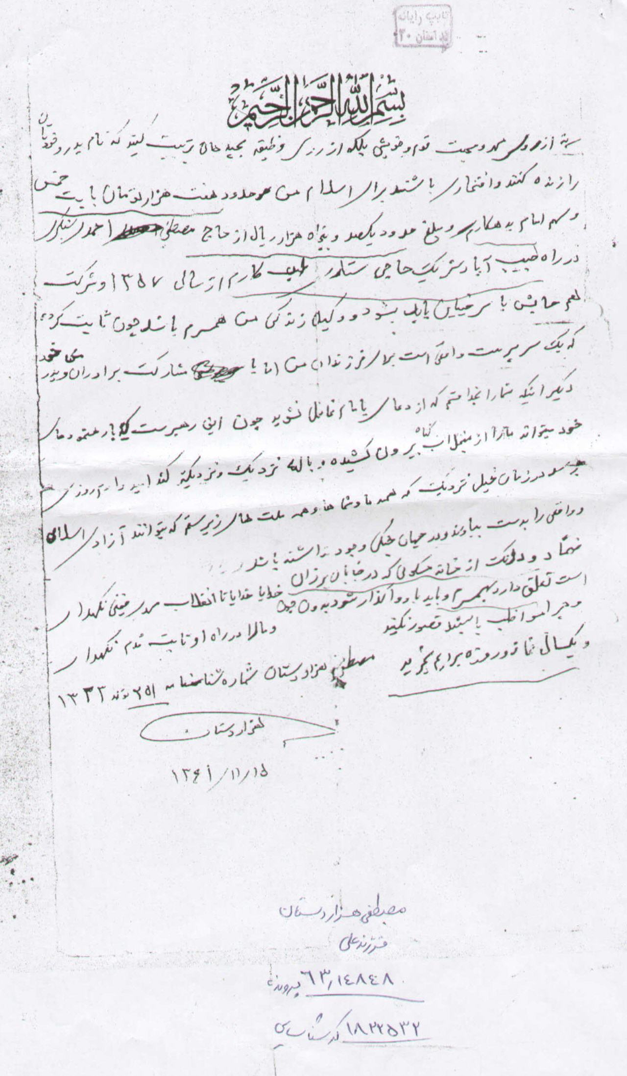 اسناد مرتبط با شهید مصطفی هزاردستان