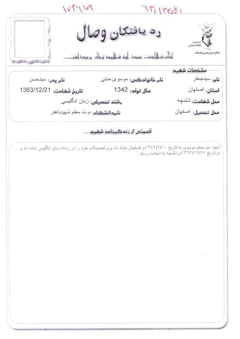 اسناد شناسه: 209216 ۱۴۰۰-۱۲-۱۹ ۱۴:۴۱ 0 دیدگاه اسناد مرتبط با شهید سیدجعفر موسوی مدنی دانلود : 540939053.jpg دانلود : 1960057209.jpg دانلود : 861628311.jpg دانلود : 97267951.jpg دانلود : 737596372.jpg دانلود : 2040706822.jpg دانلود : 873317210.jpg دانلود : 1400798942.jpg دانلود : 329741648.jpg دانلود : 368941799.jpg دانلود : 694681819.jpg دانلود : 1414940920.jpg