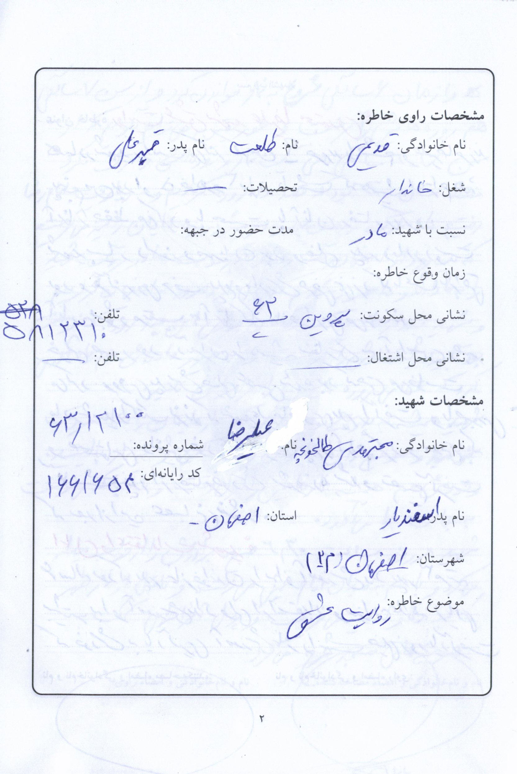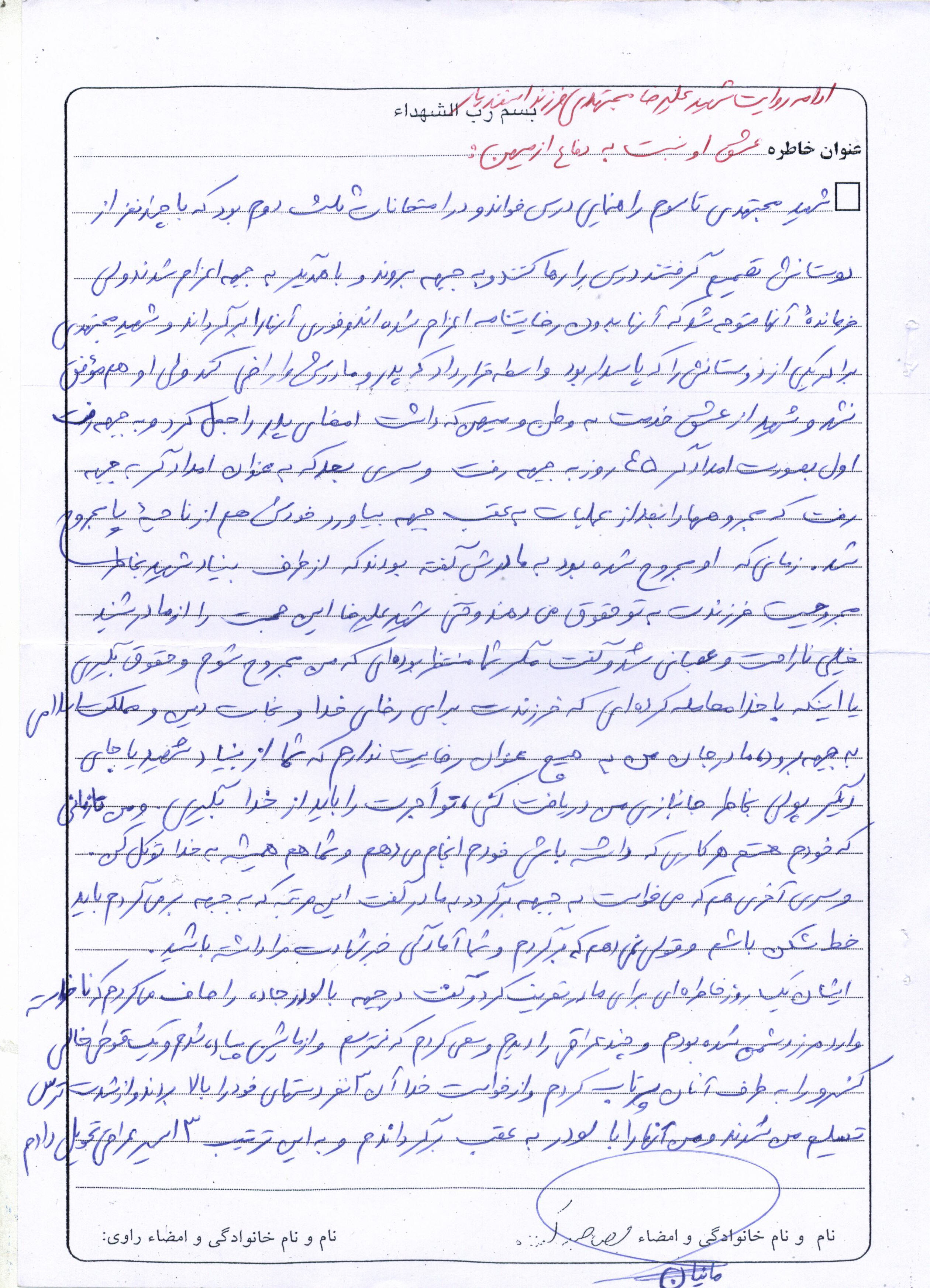 اسناد مرتبط با شهید علی رضا مجتهدی طالخونچه