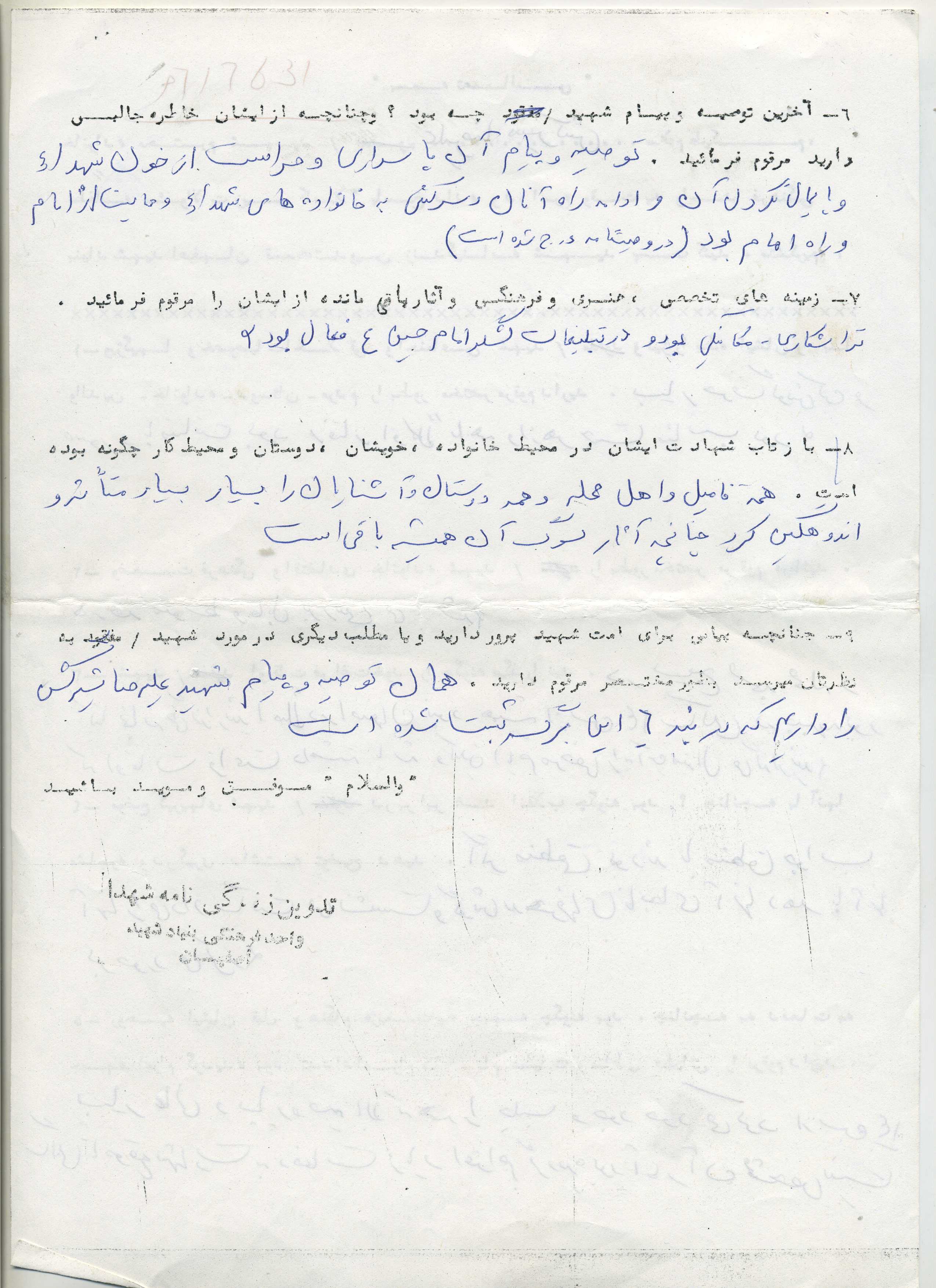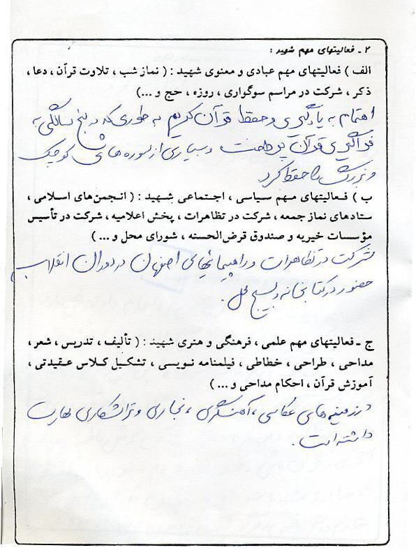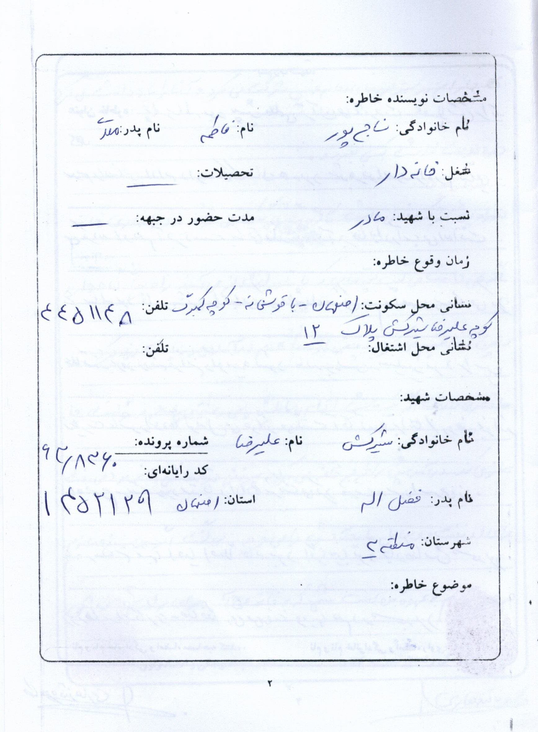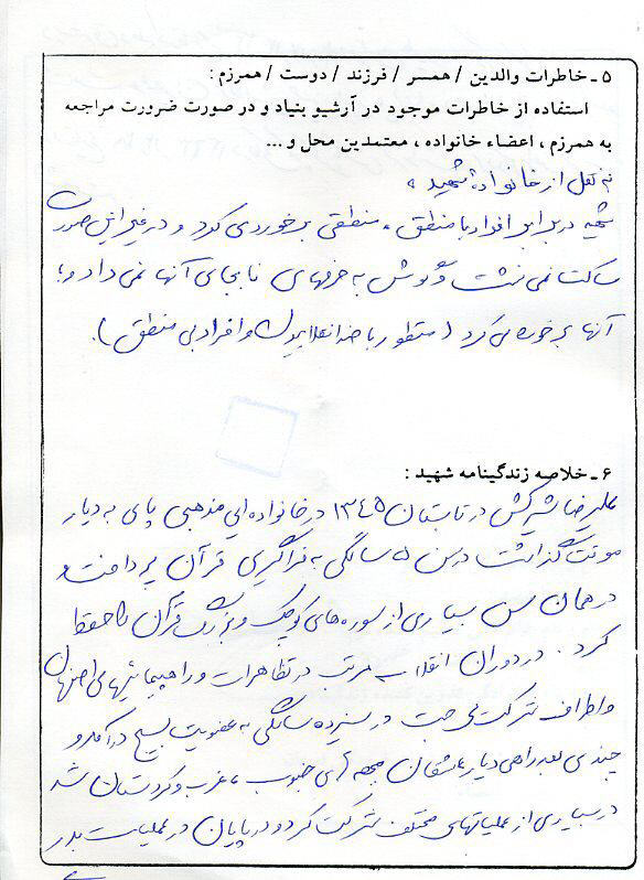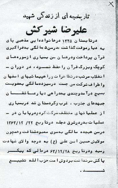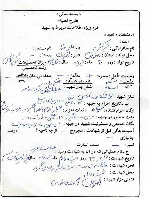اسناد مرتبط با شهید علی رضا شیرکش خوراسگانی