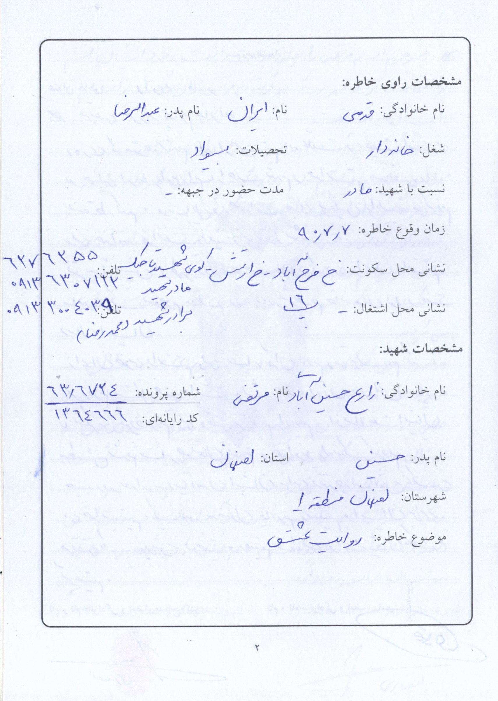 اسناد مرتبط با شهید مرتضی زارع حسین آبادی