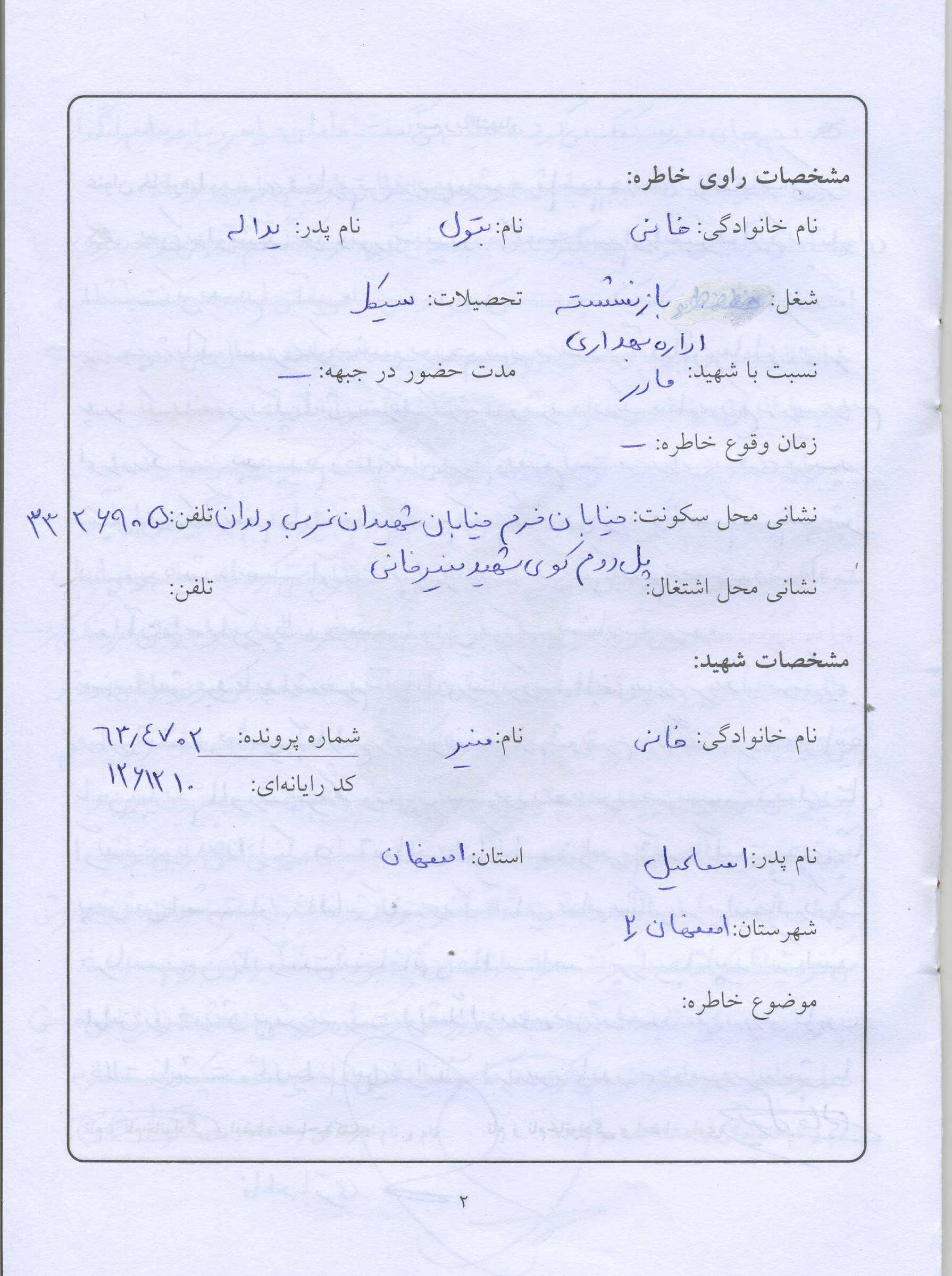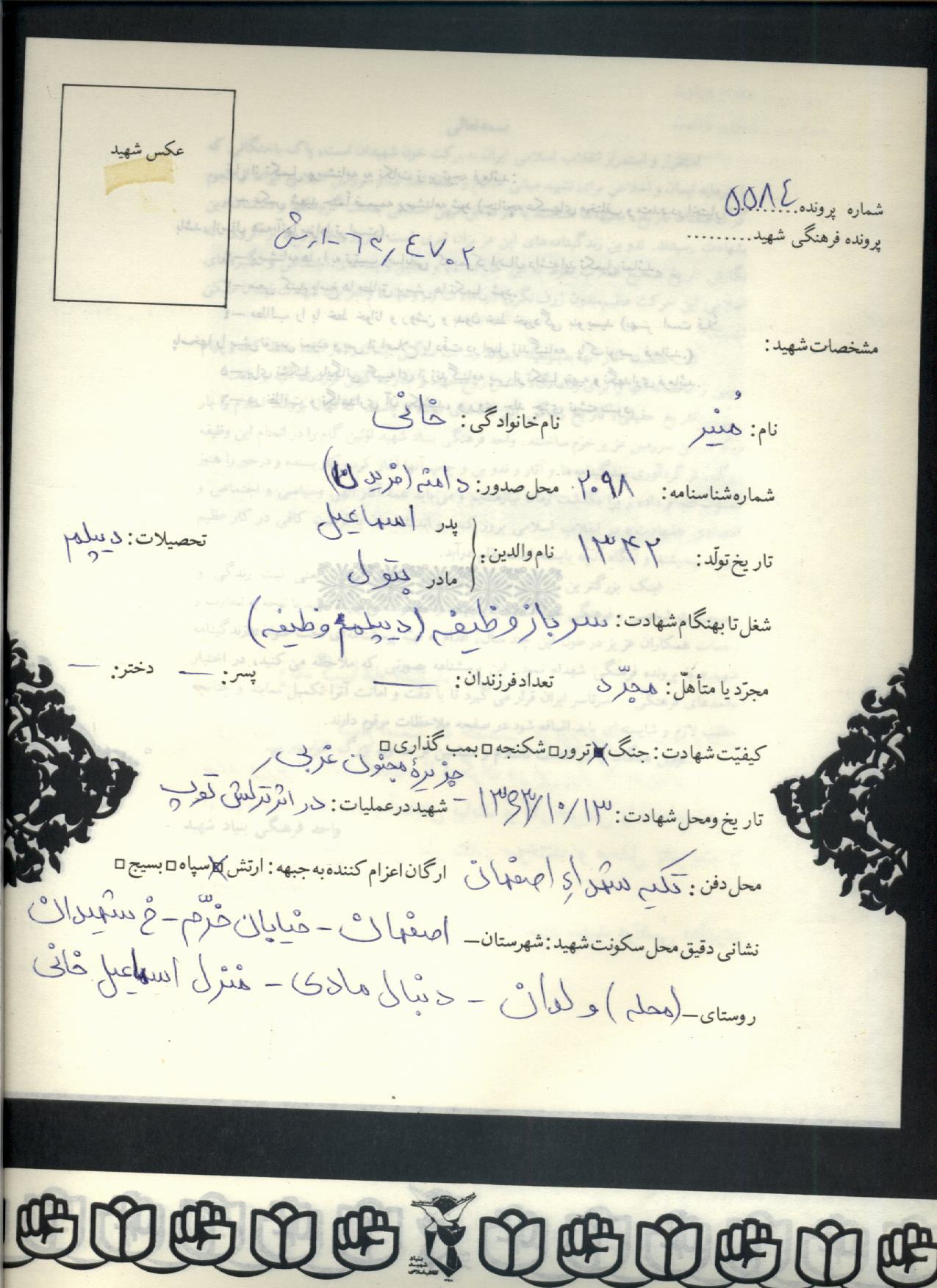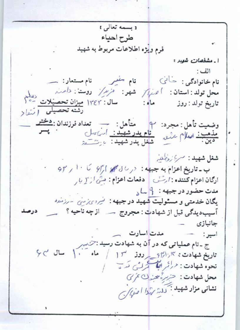 اسناد مرتبط با شهید منیر خانی