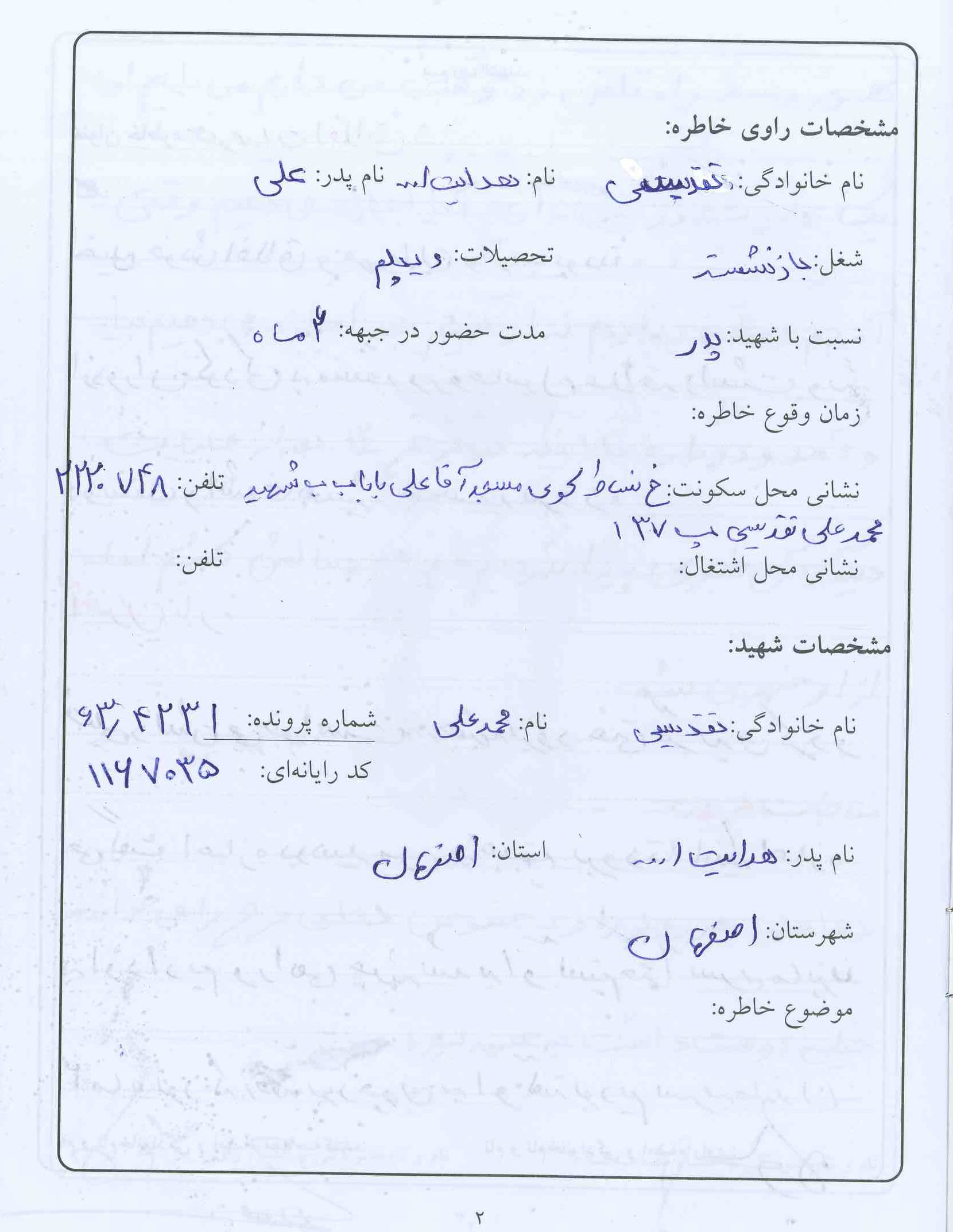 اسناد مرتبط با شهید محمدعلی تقدیسی