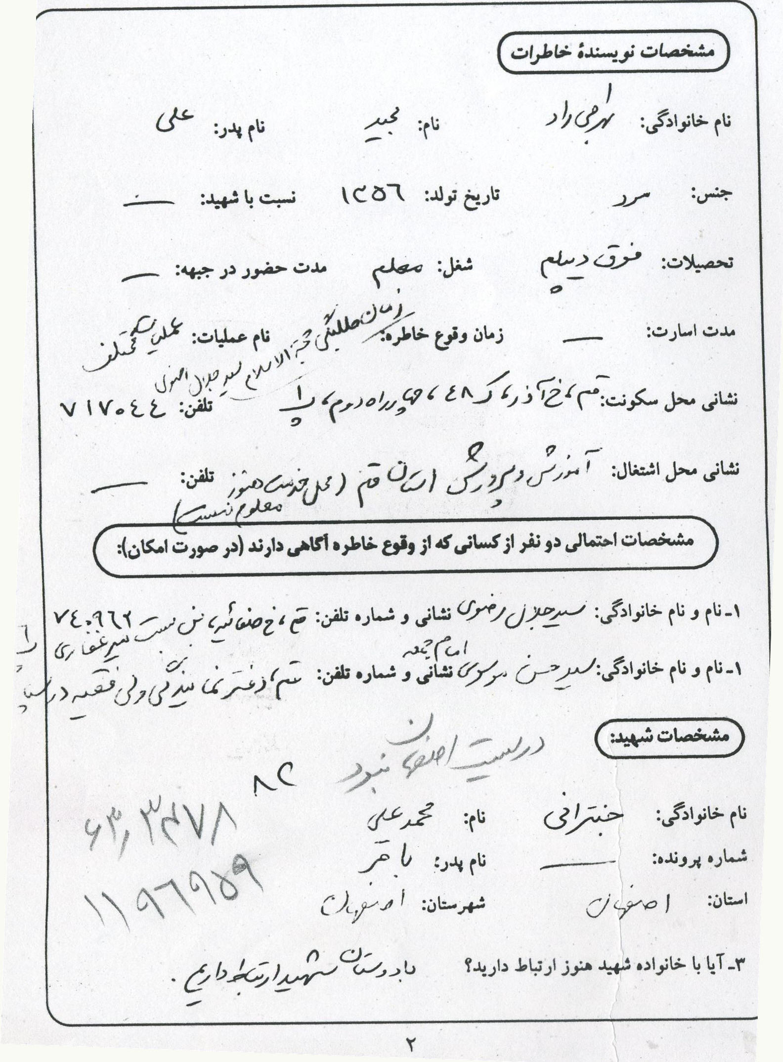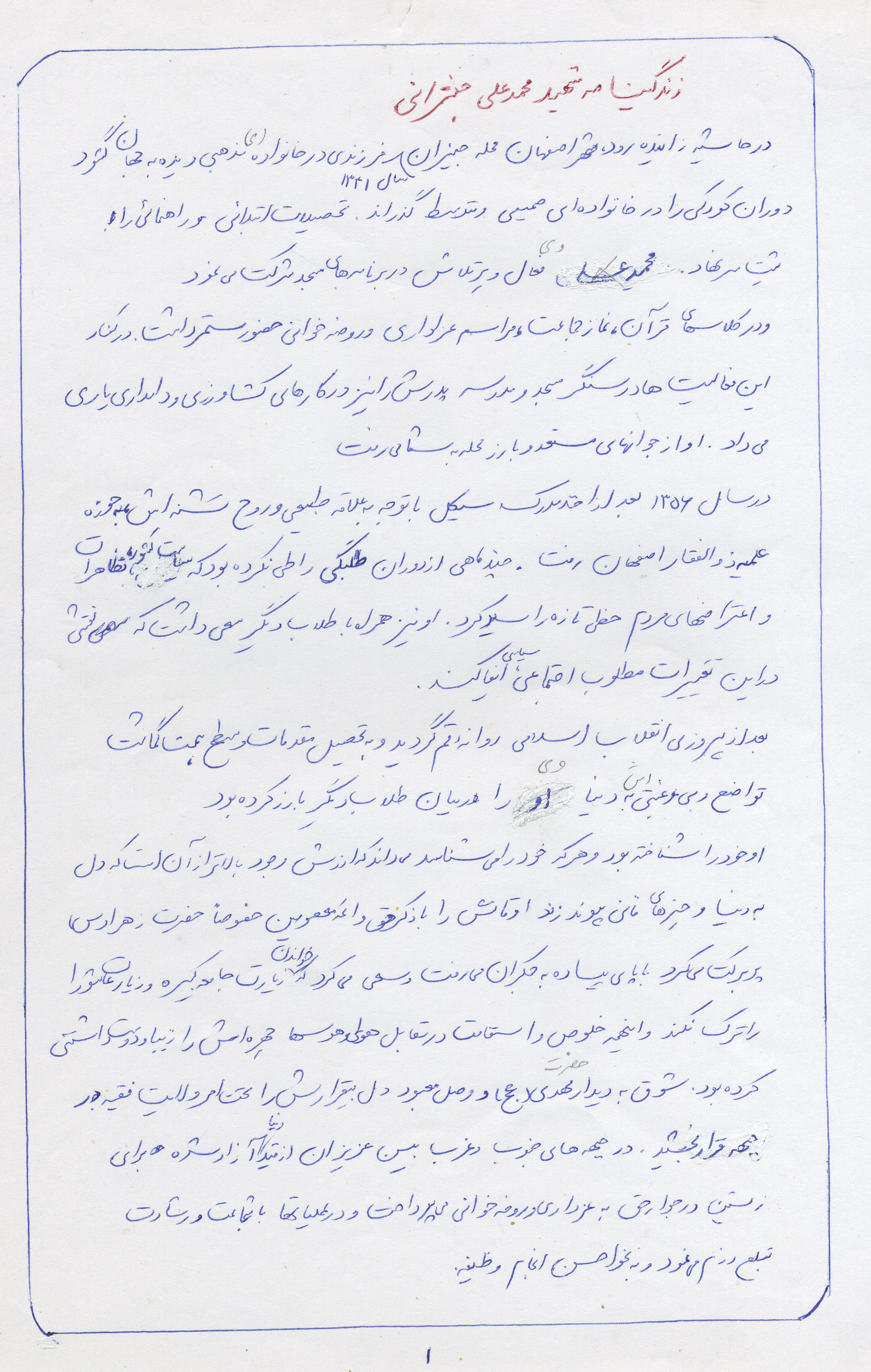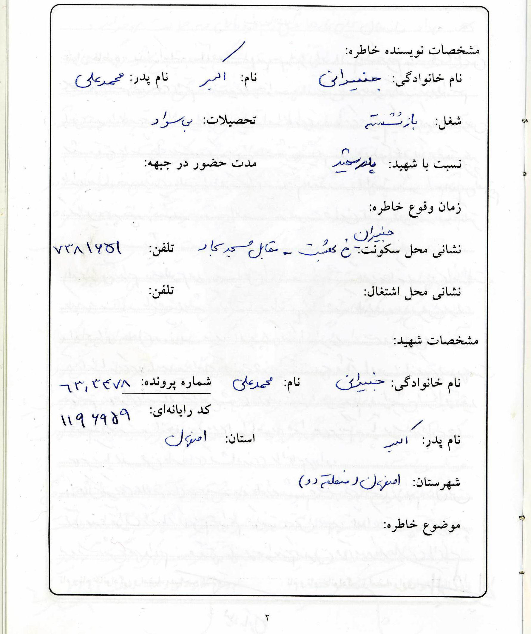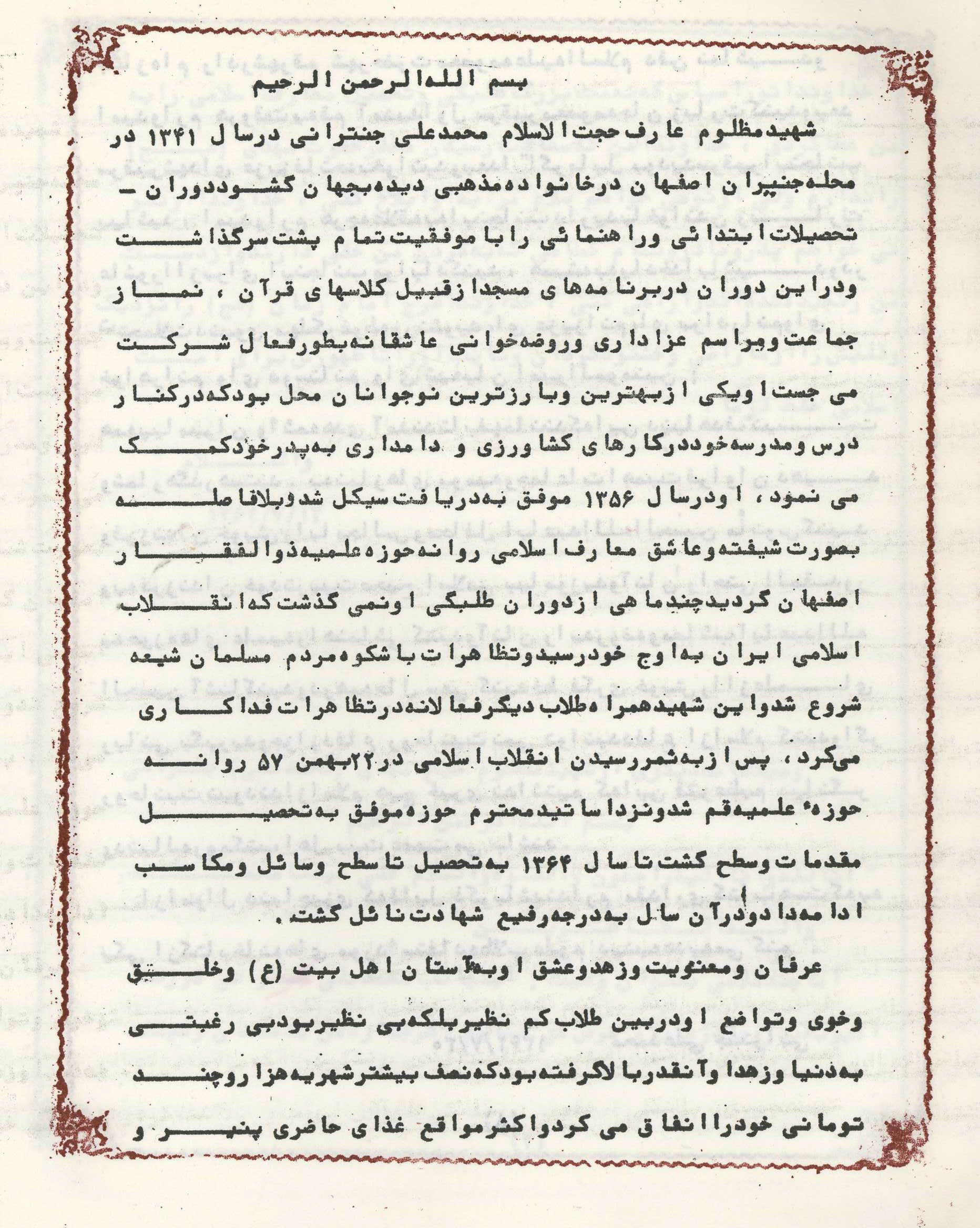 اسناد مرتبط با شهید محمدعلی جنیرانی