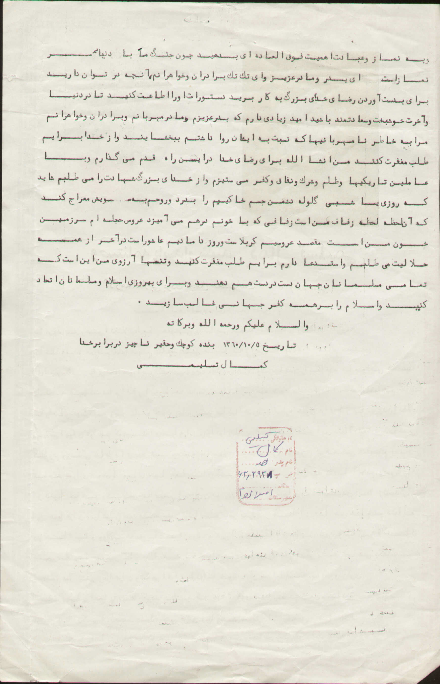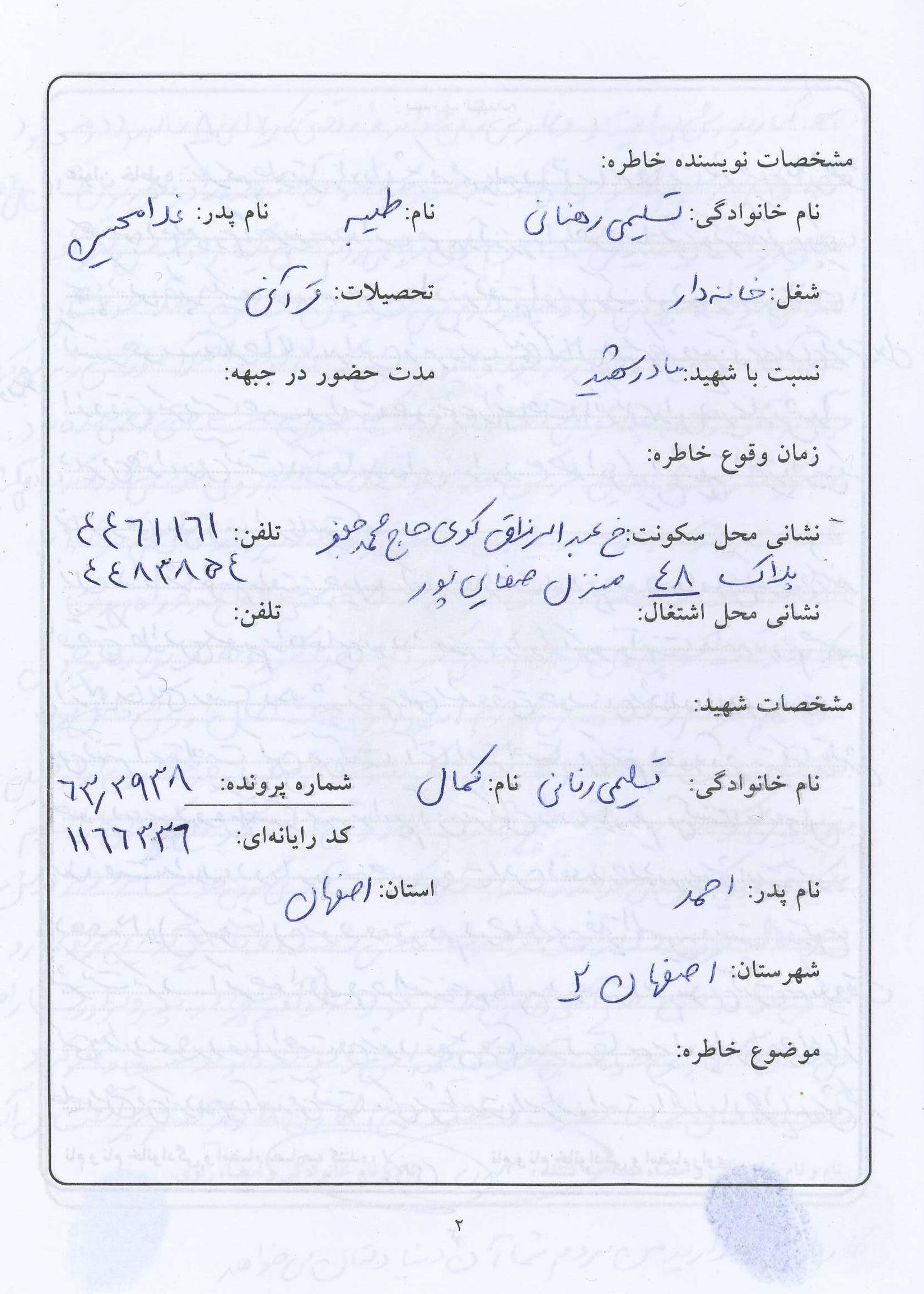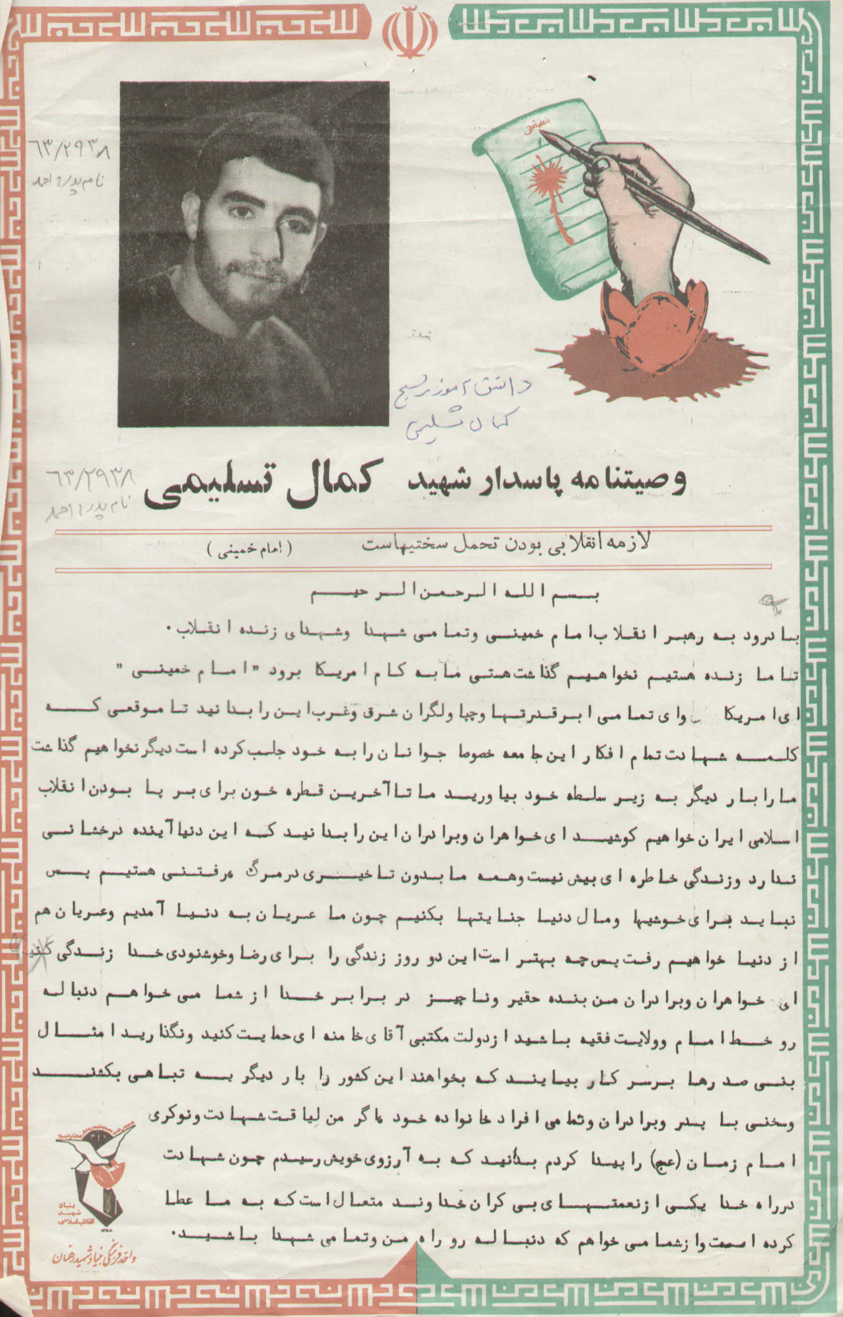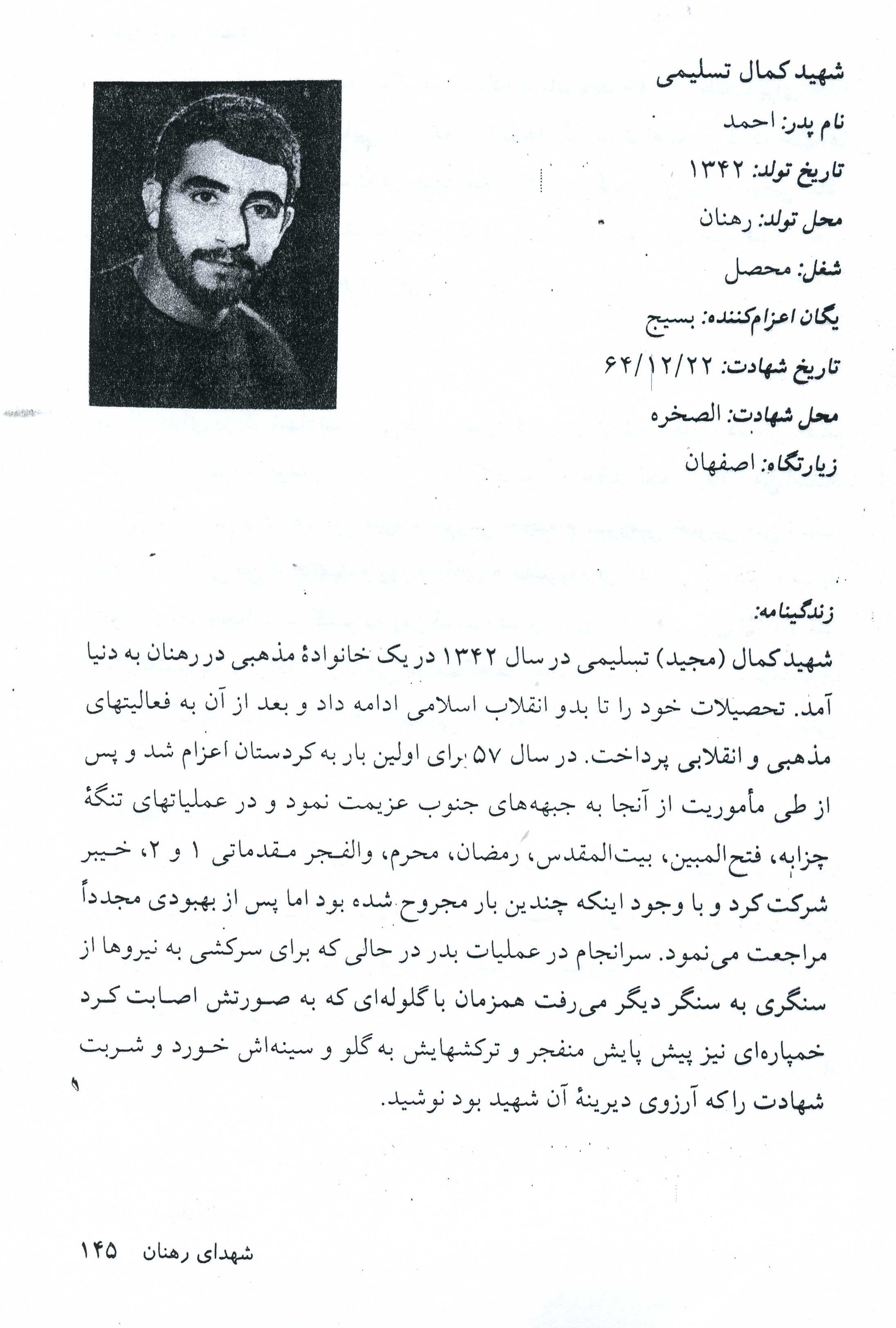 اسناد مرتبط با شهید کمال تسلیمی رنانی