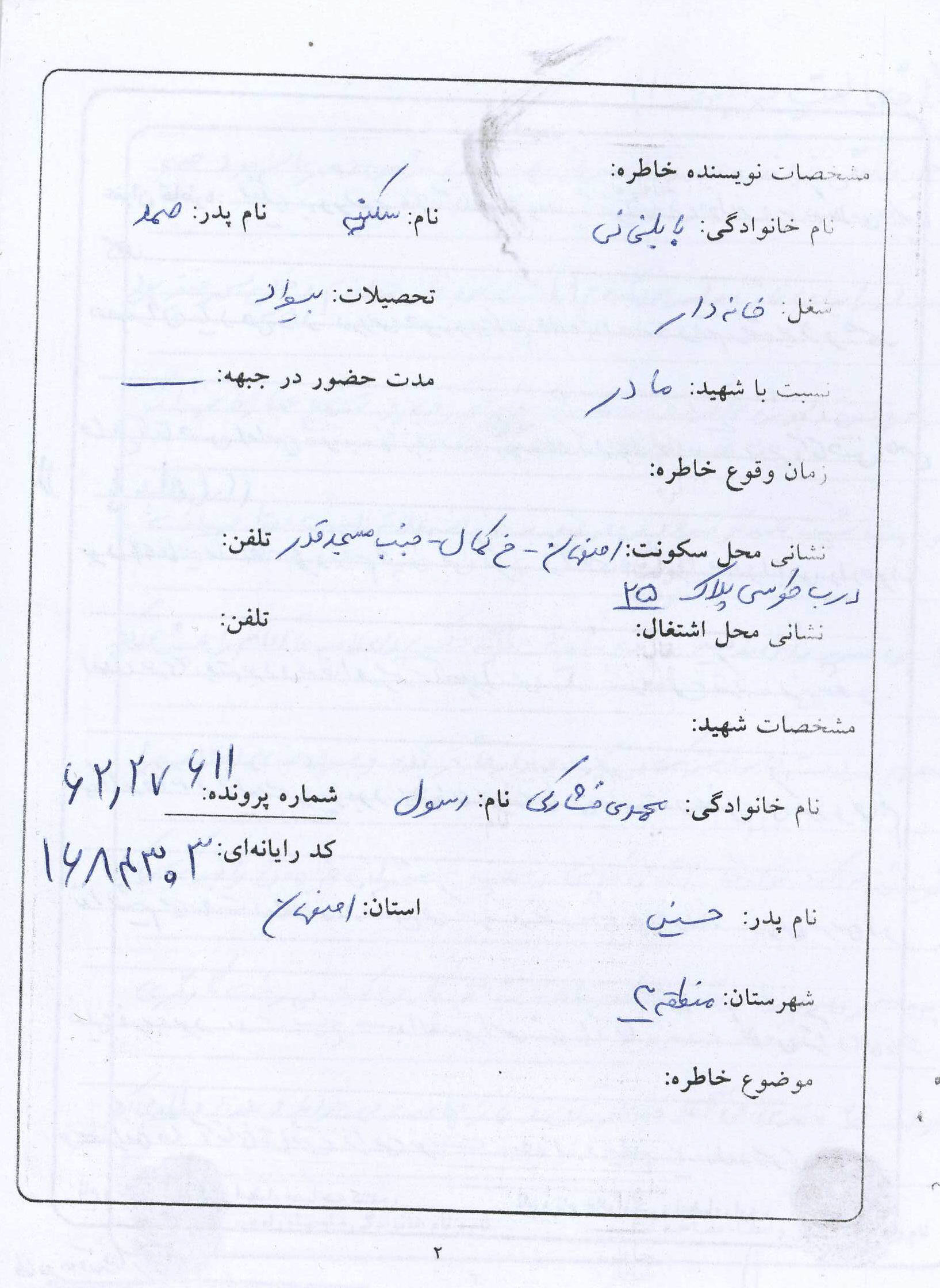 اسناد مرتبط با شهید رسول محمدی فشارکی