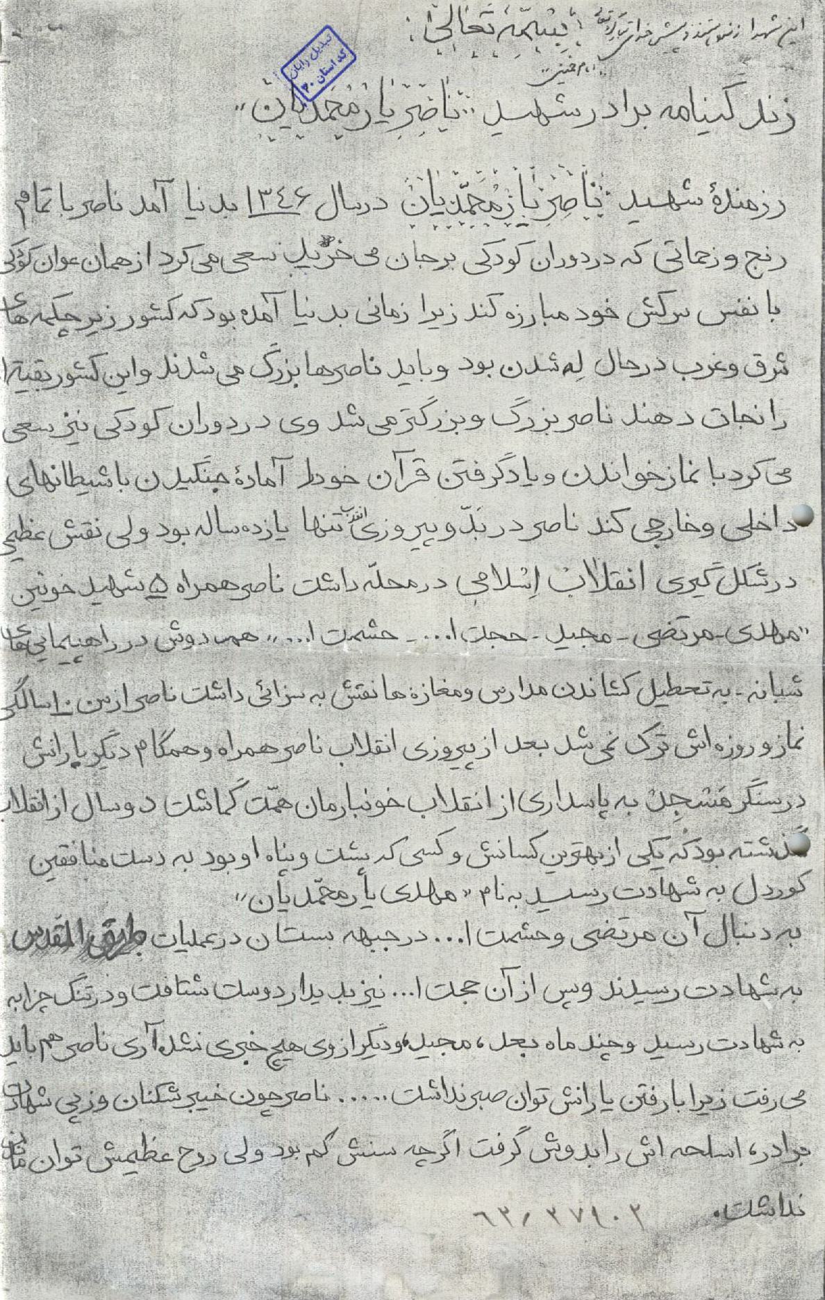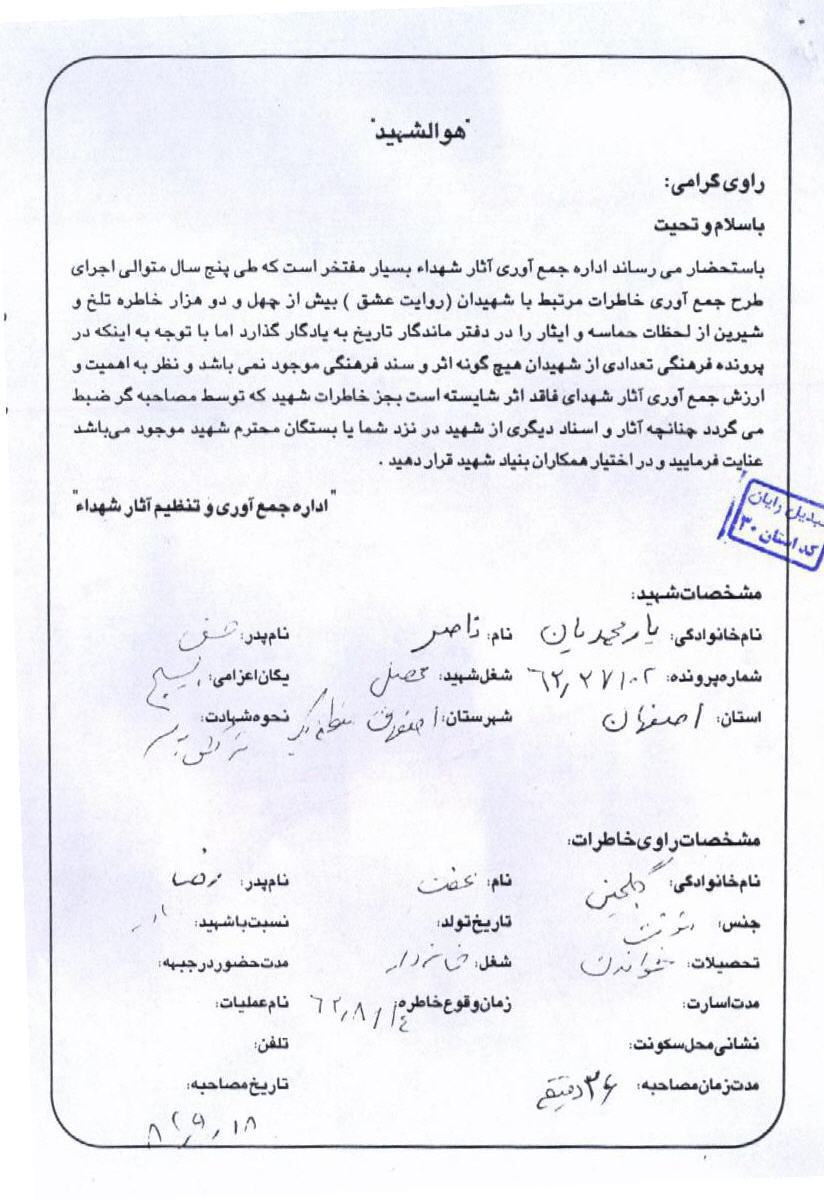 اسناد مرتبط با شهید ناصر یارمحمدیان