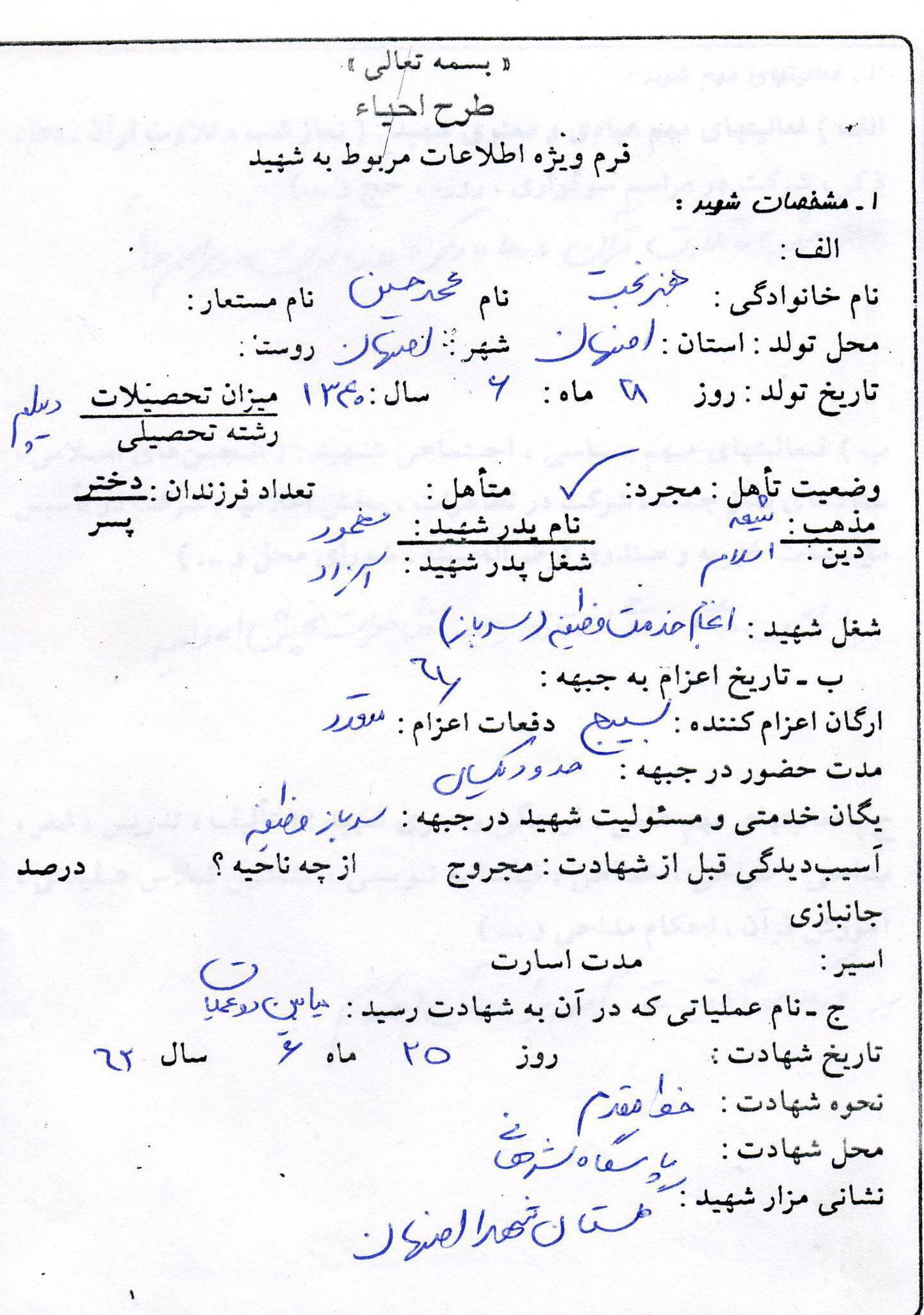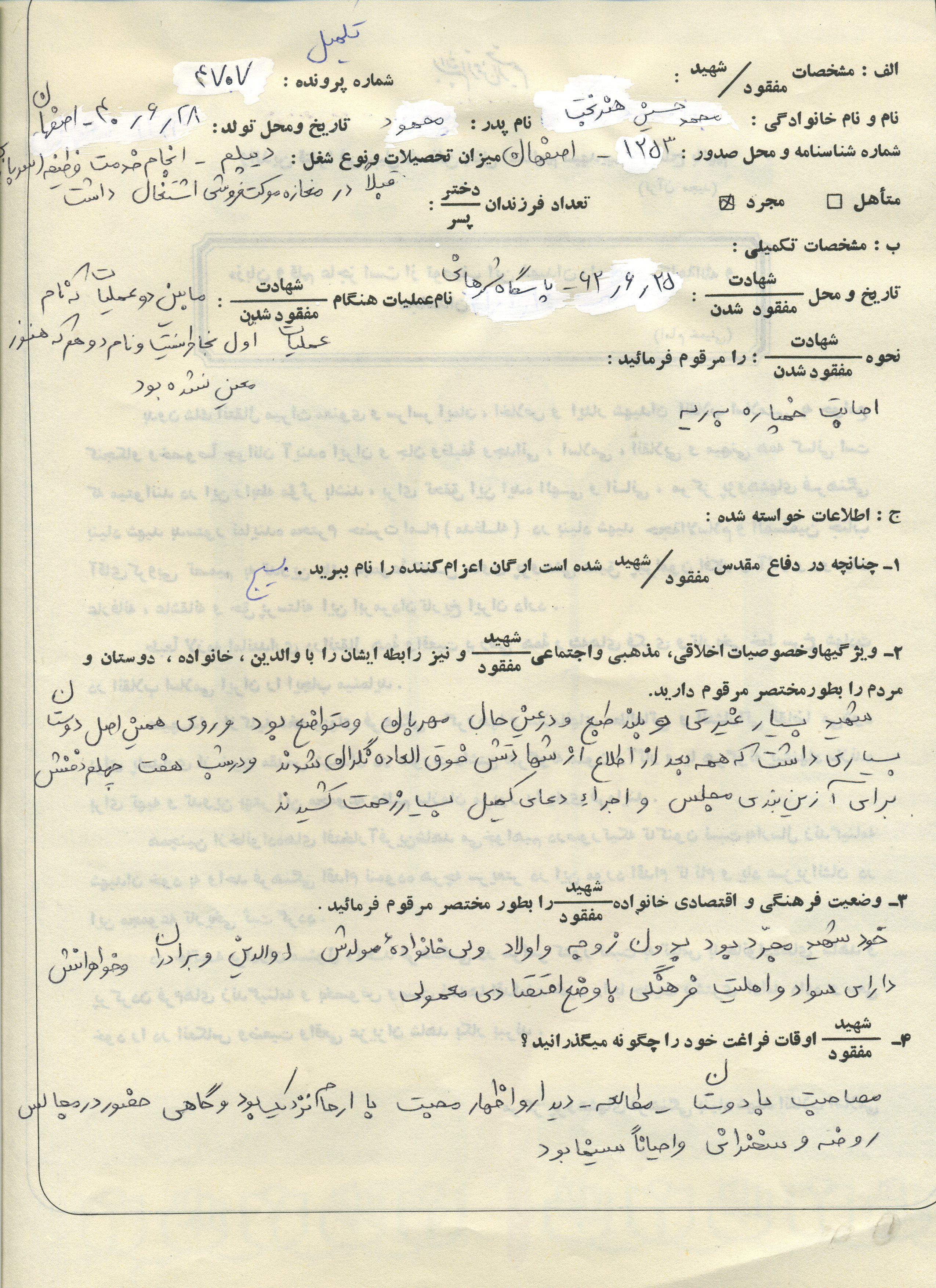 اسناد مرتبط با شهید محمدحسین هنربخت
