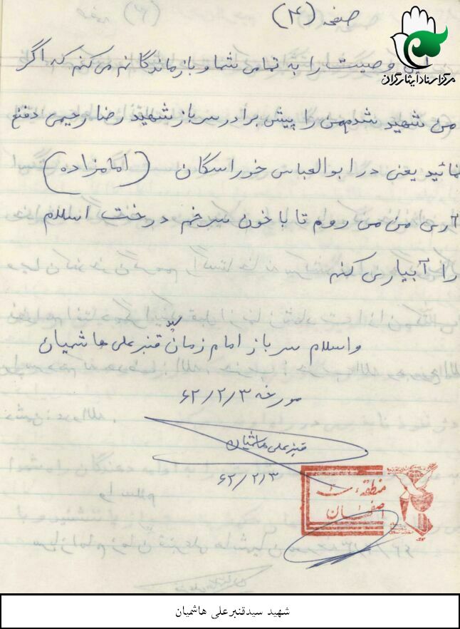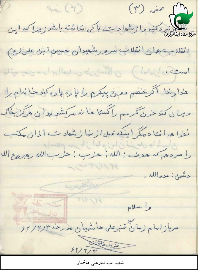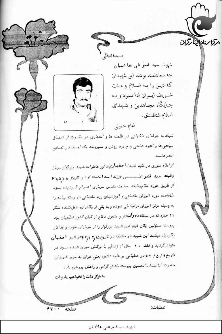 اسناد مرتبط با شهید سیدقنبرعلی هاشمیان