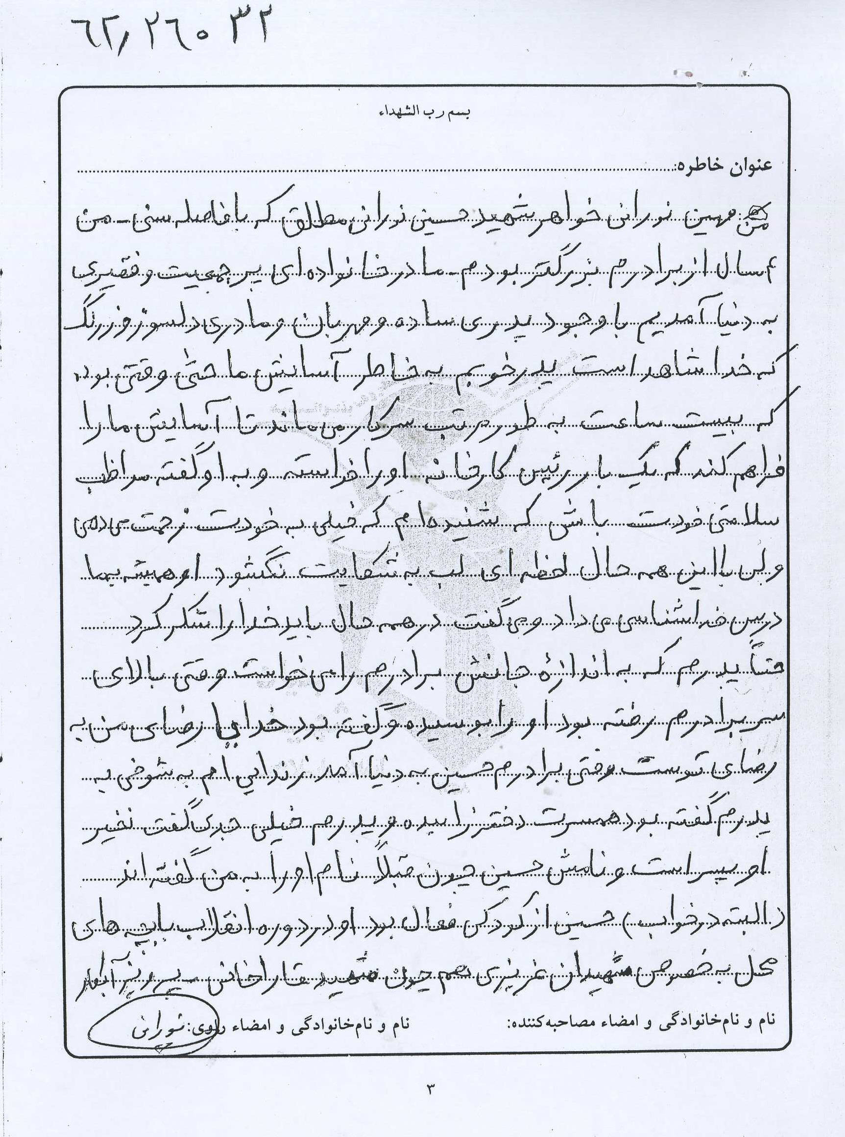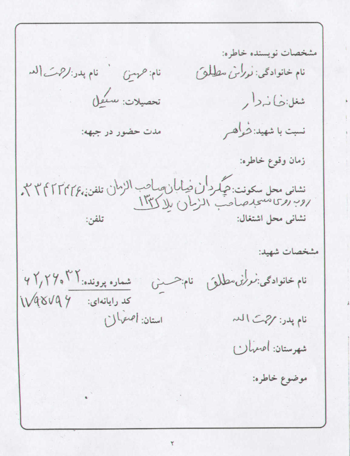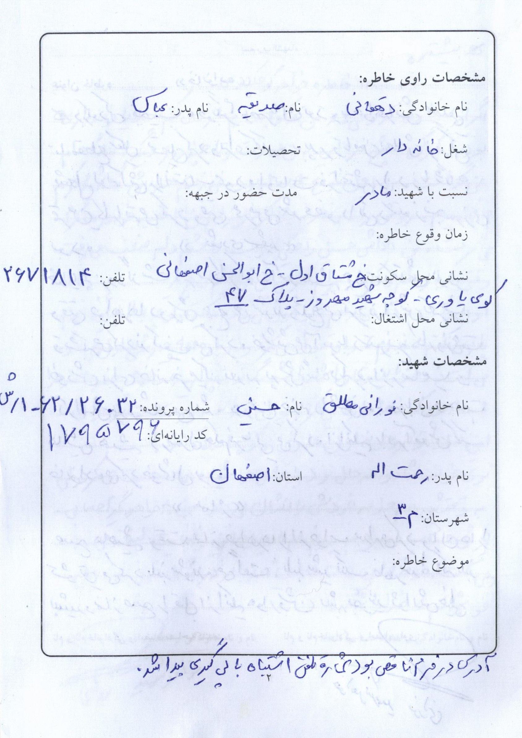 اسناد مرتبط با شهید حسین نورانی مطلق