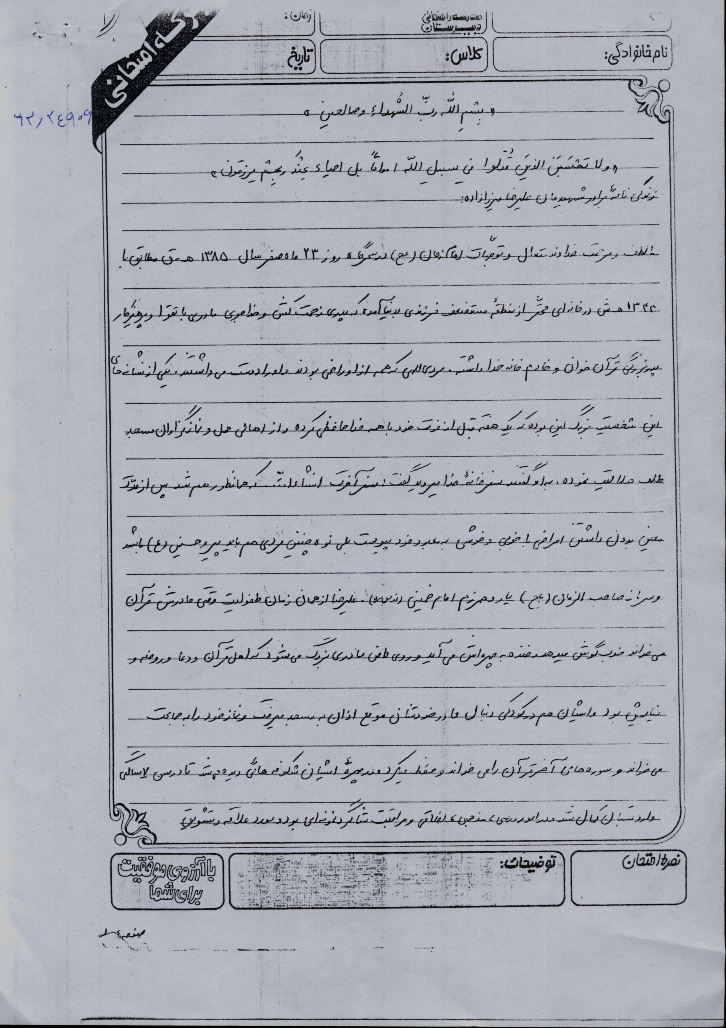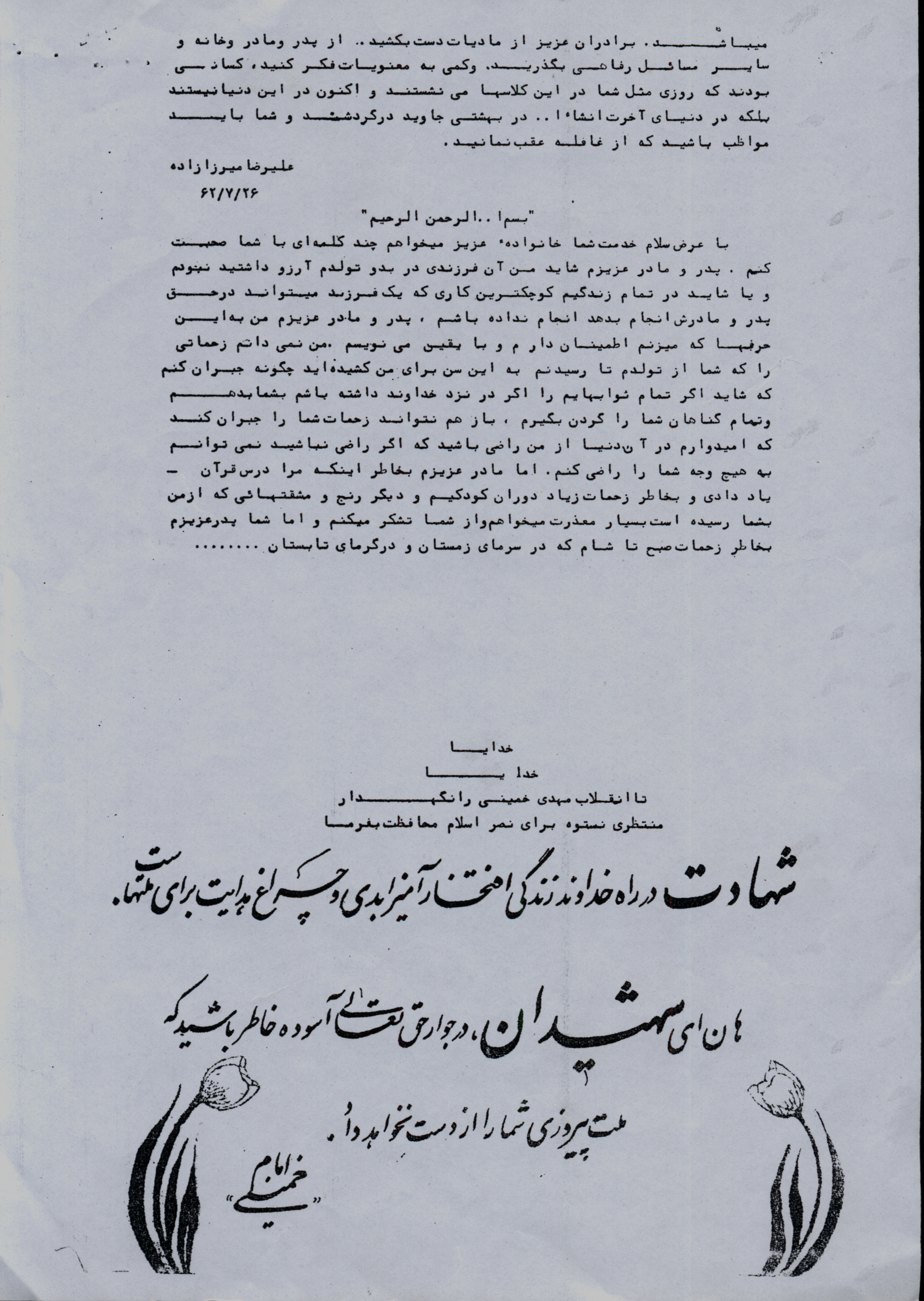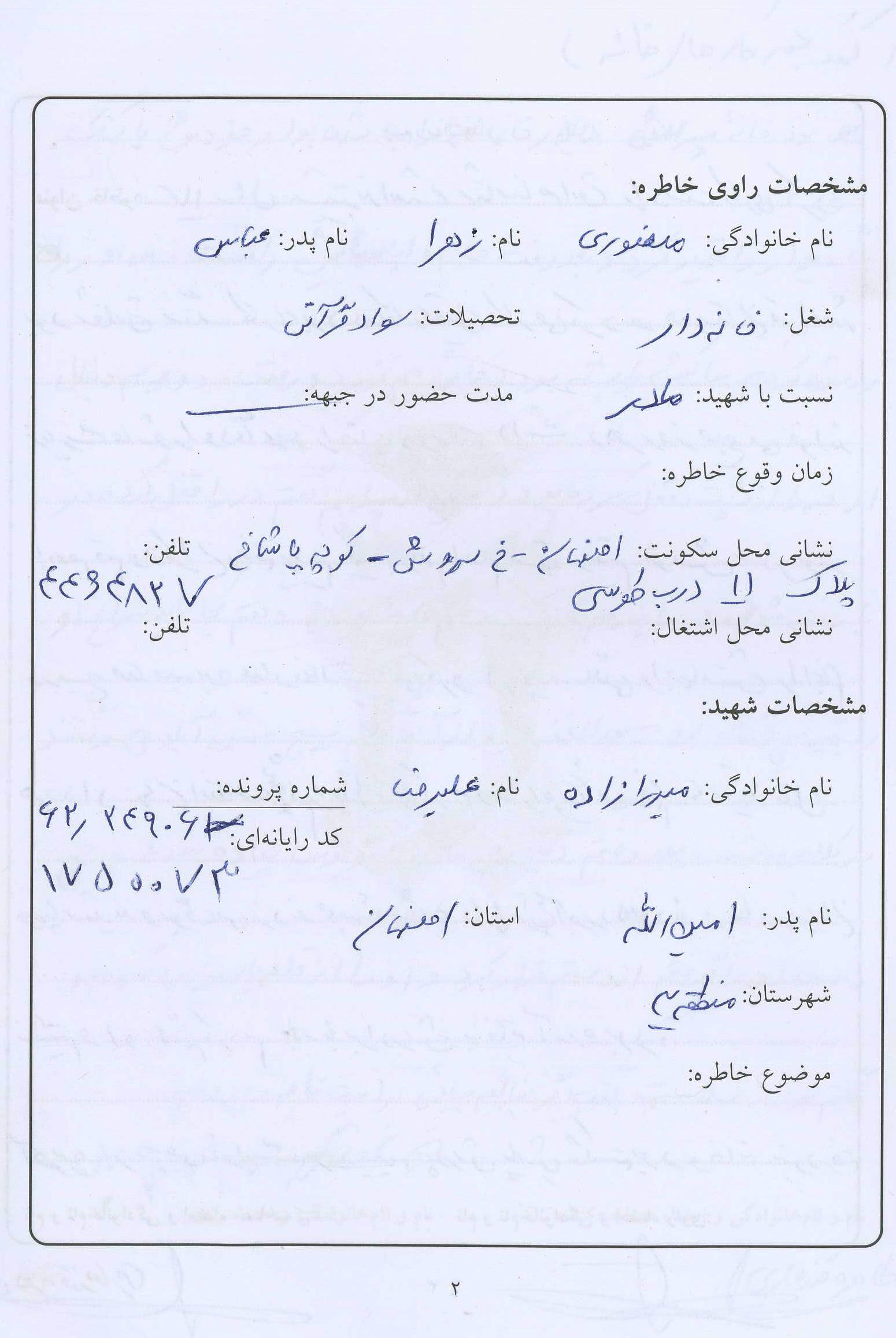 اسناد مرتبط با شهید علی رضا میرزازاده قهجاورستانی