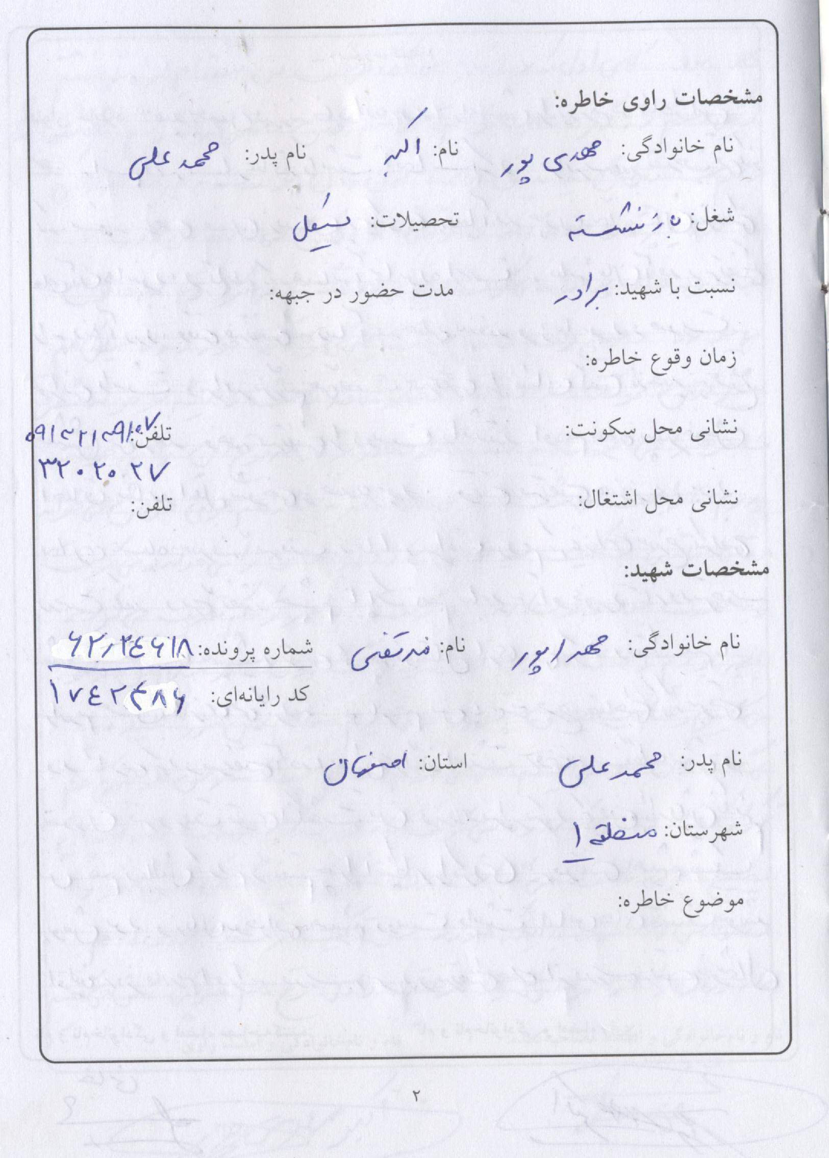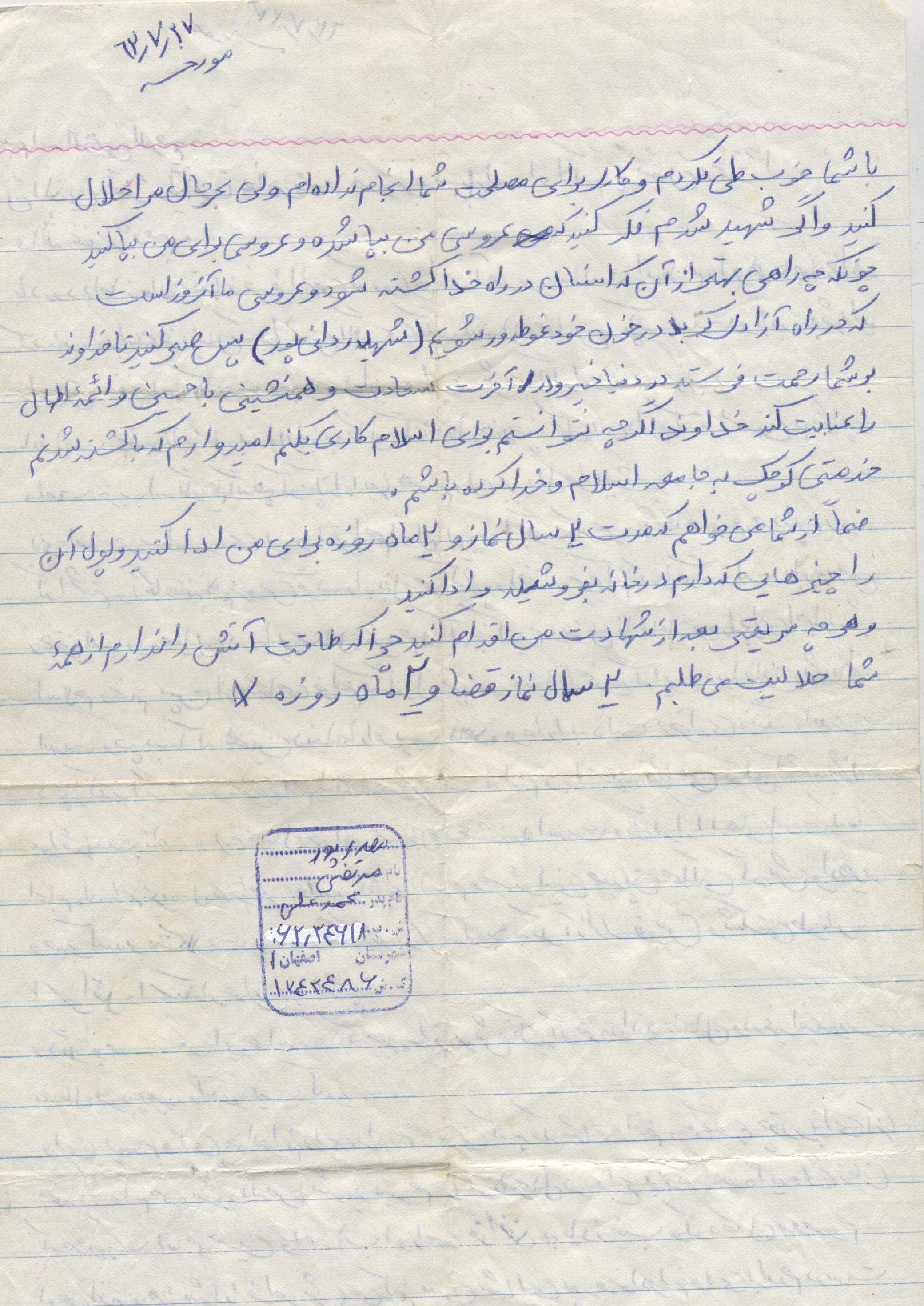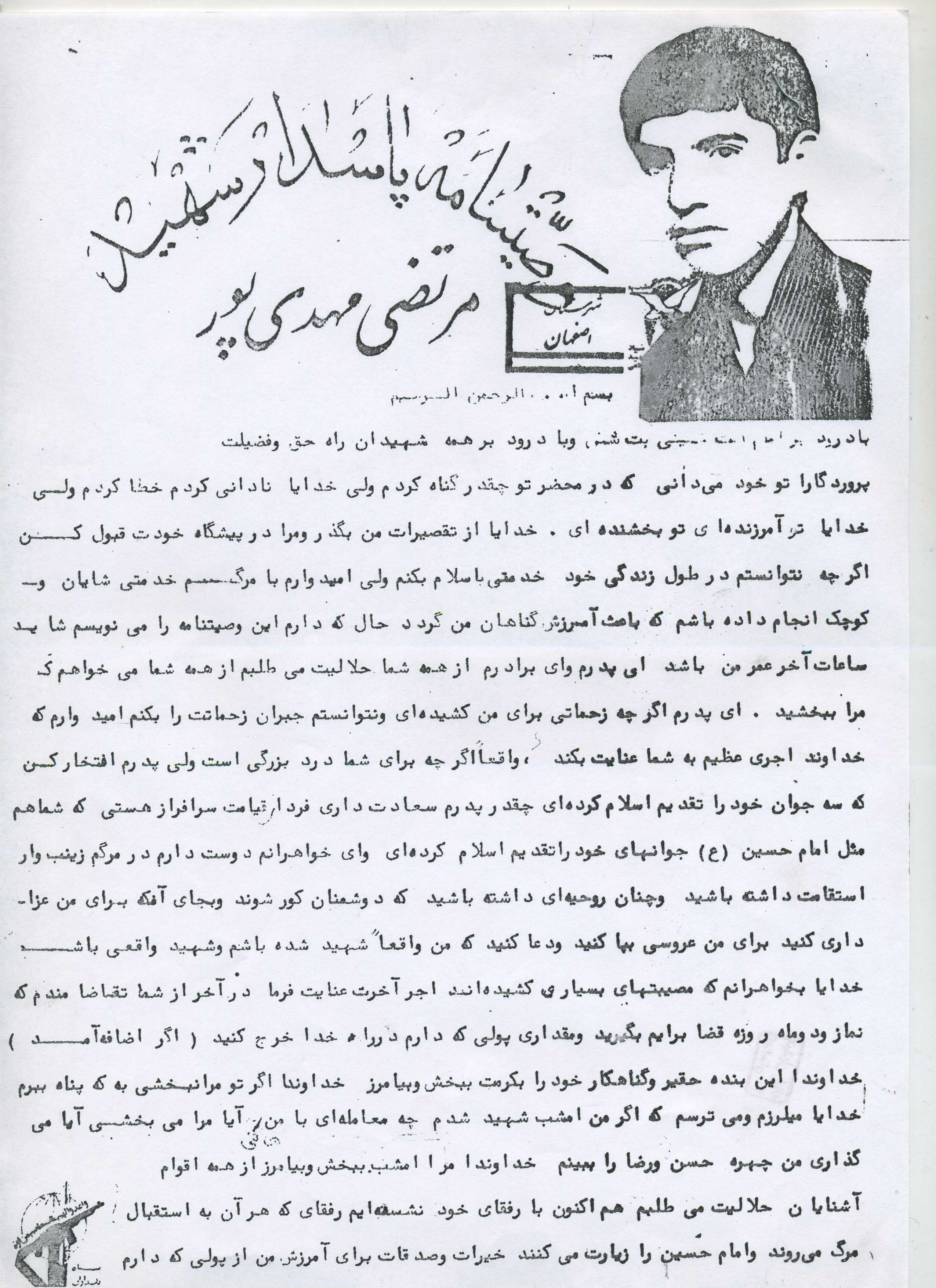 اسناد مرتبط با شهید مرتضی مهدی پورسبدانی