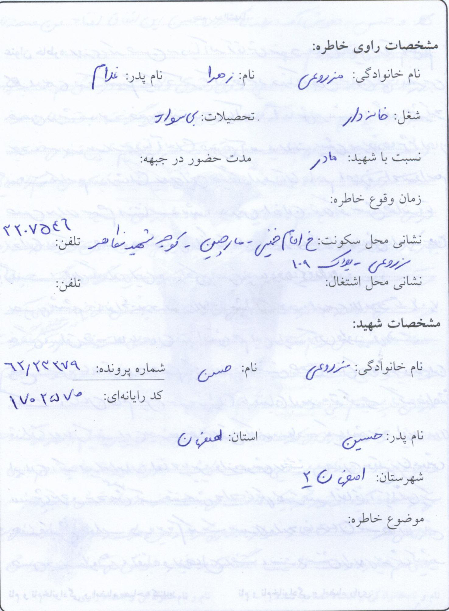 اسناد مرتبط با شهید حسن مزروعی سبدانی