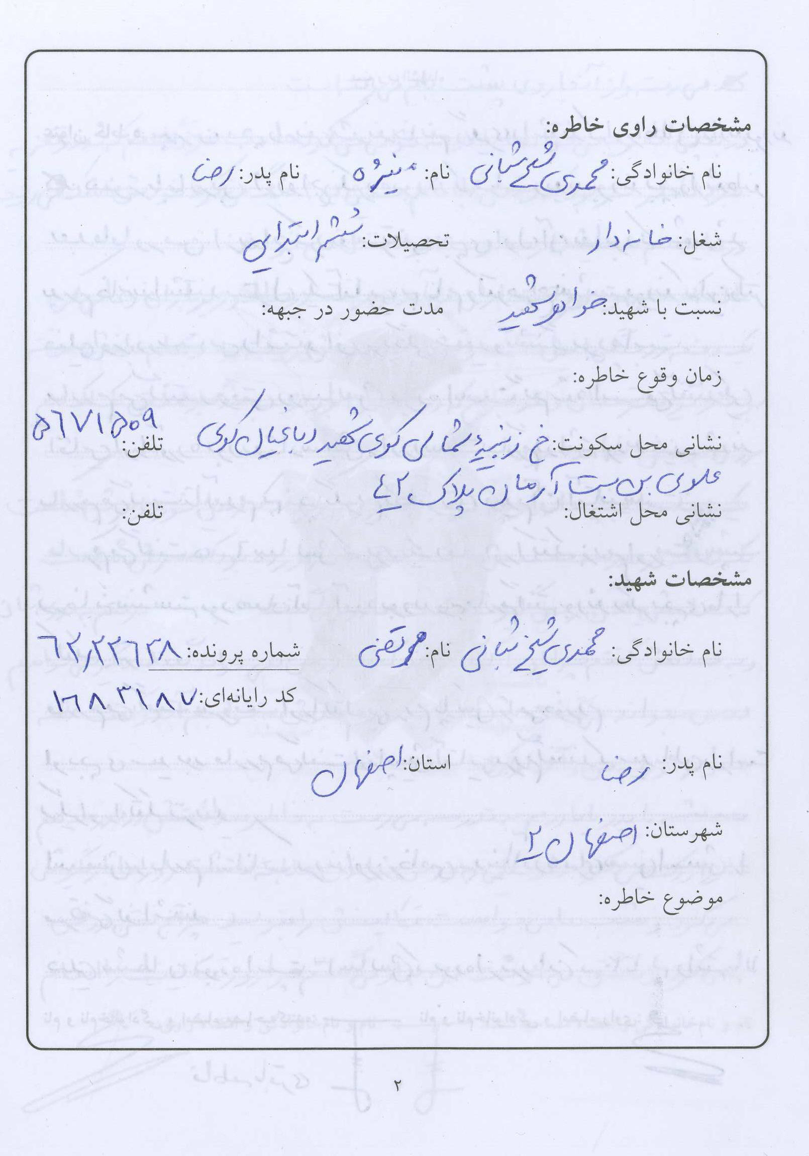 اسناد مرتبط با شهید مرتضی محمدی شیخ شبانی