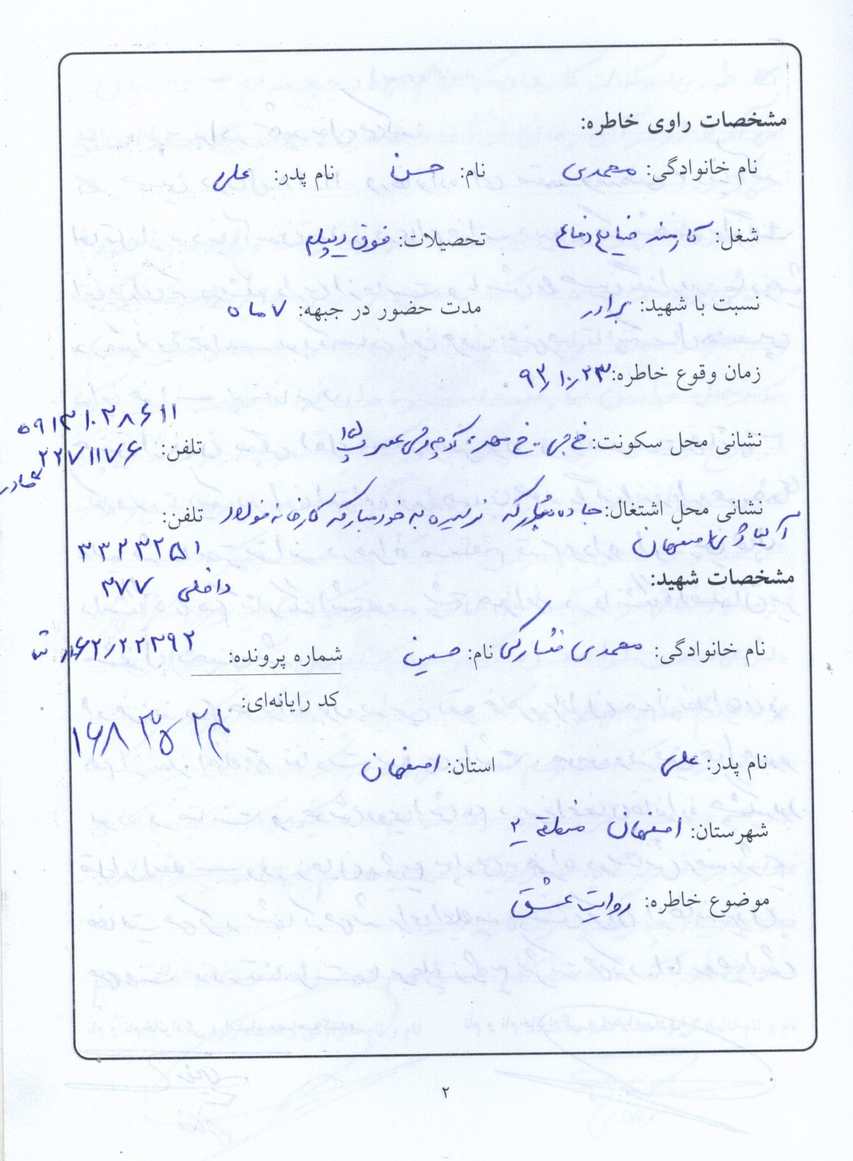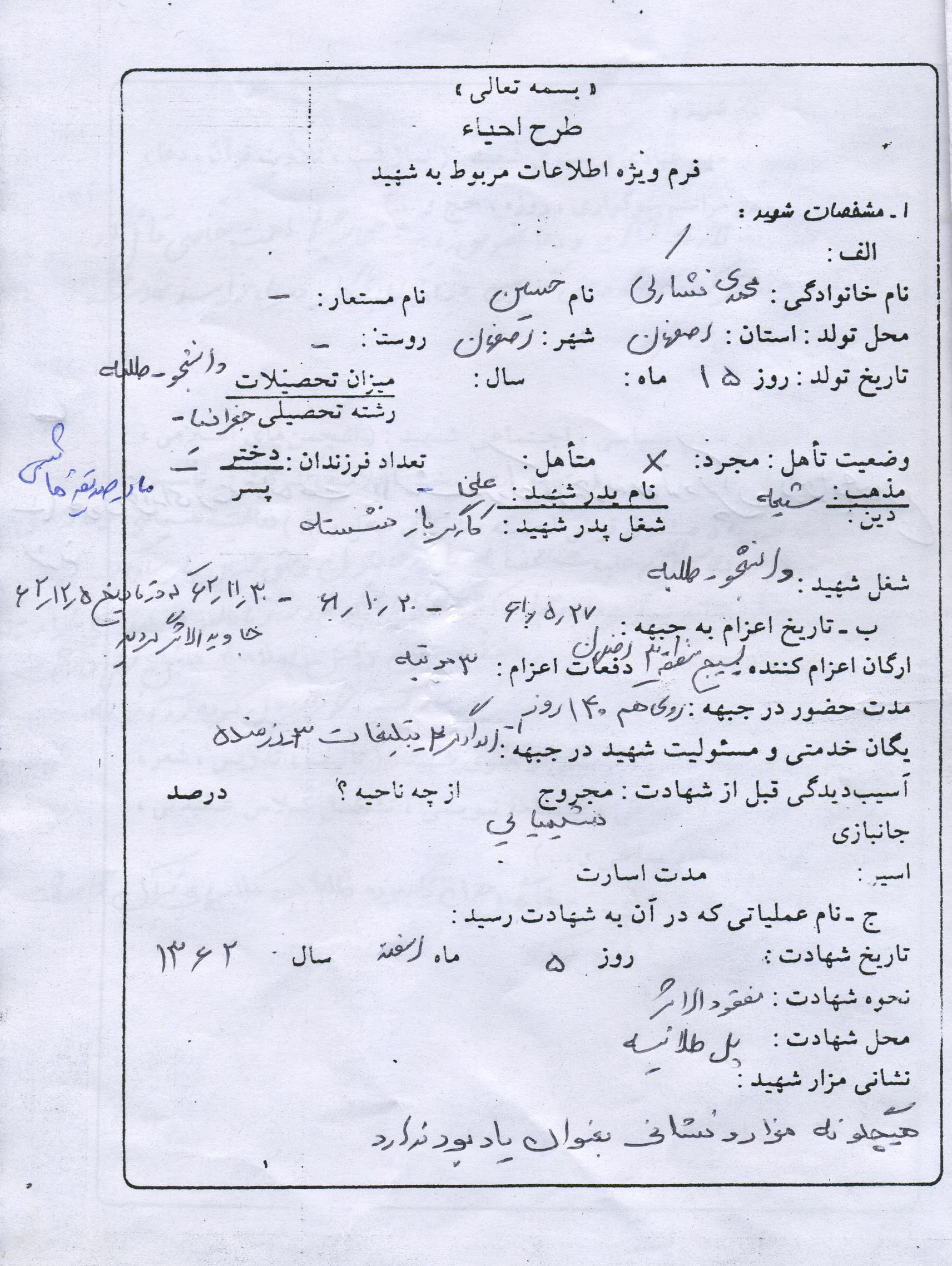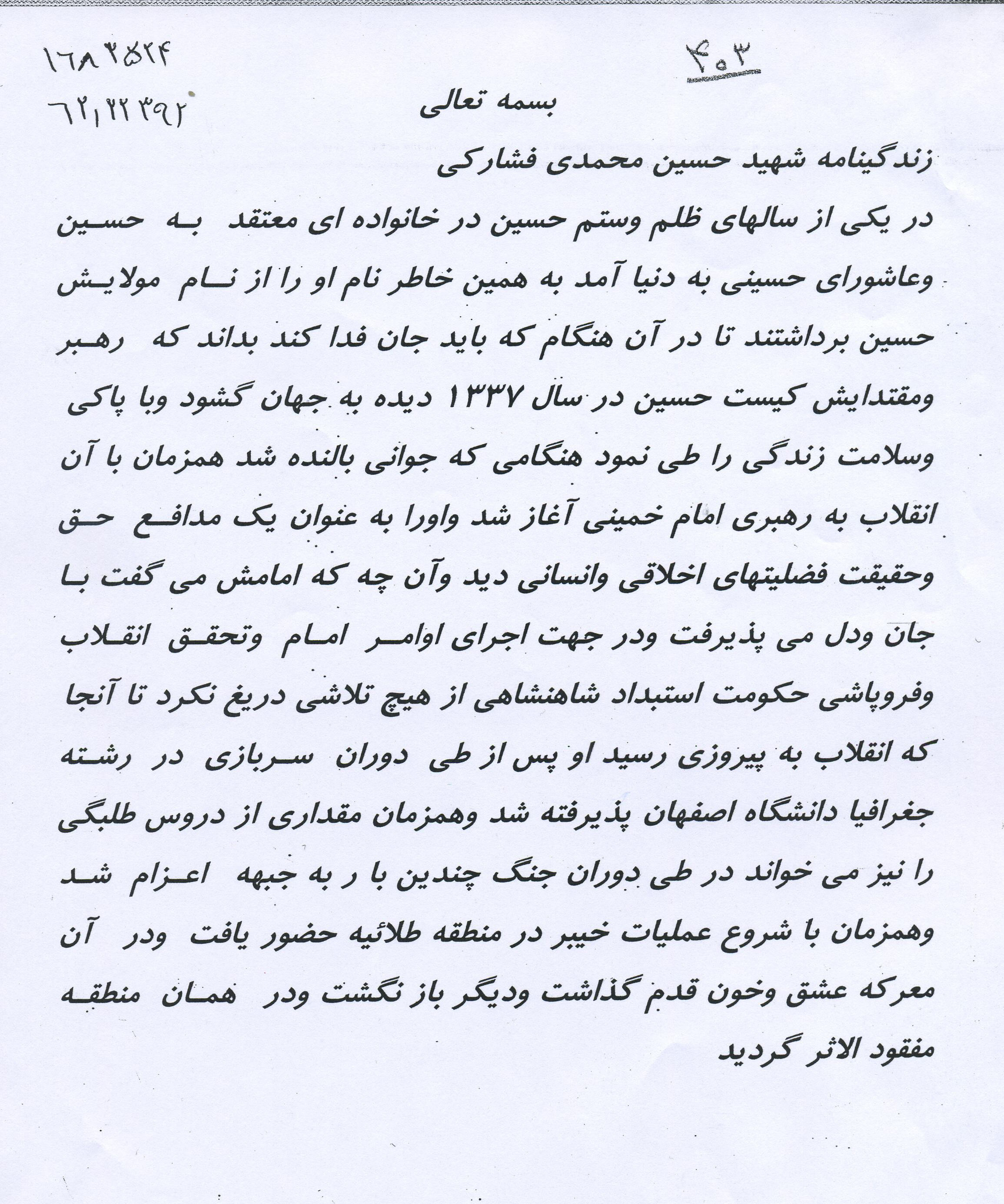 اسناد مرتبط با شهید حسین محمدی فشارکی
