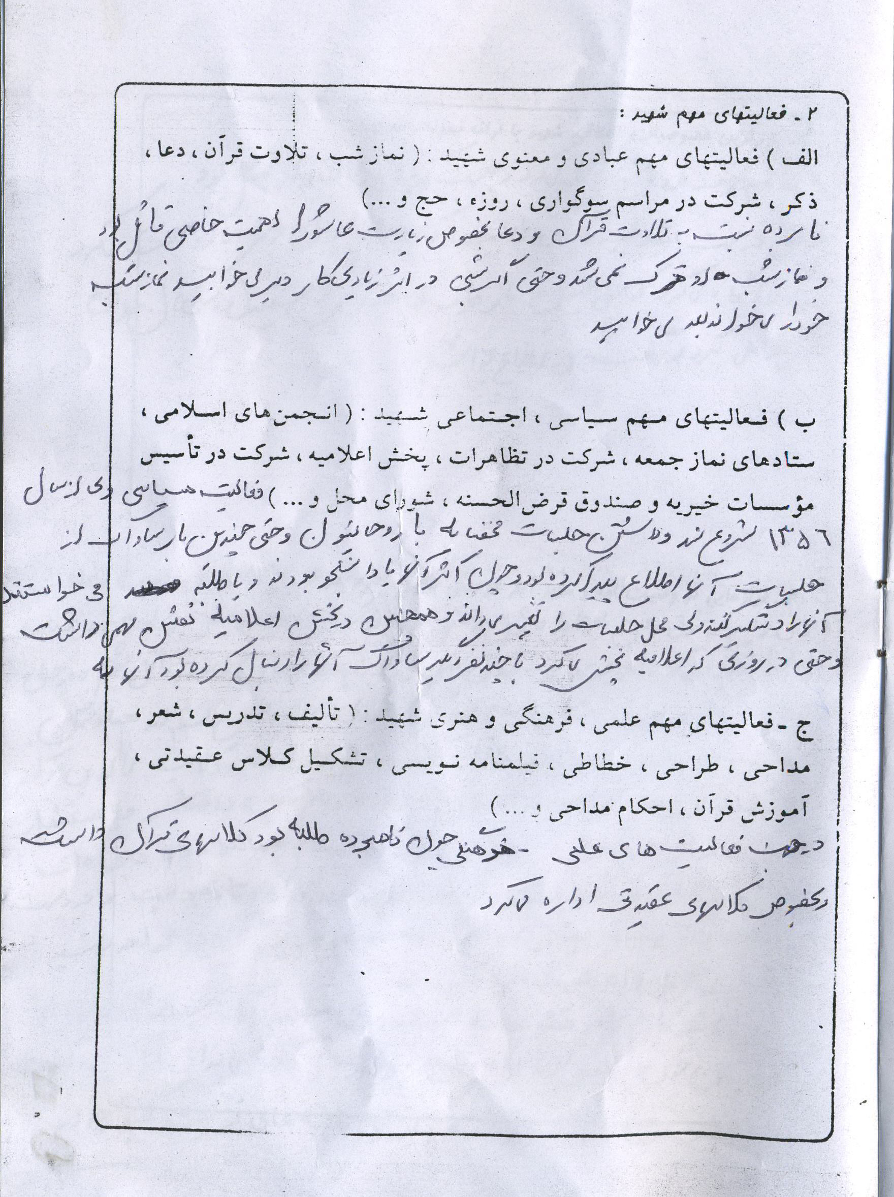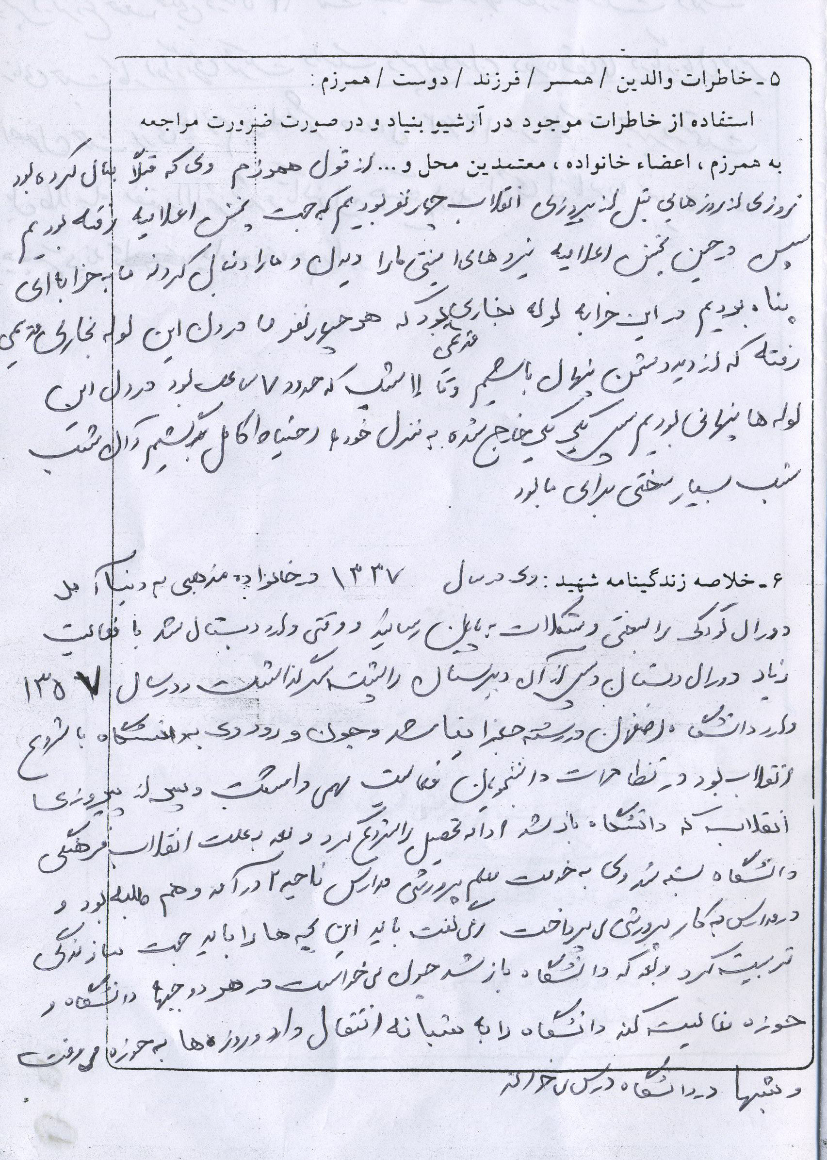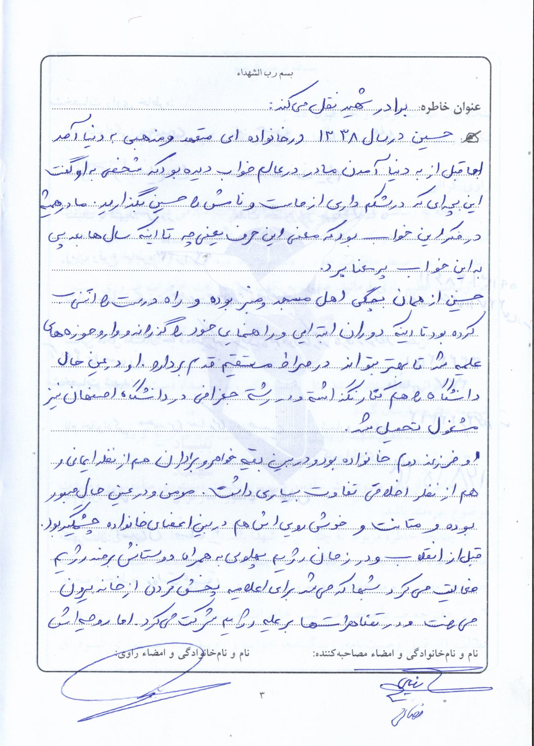 اسناد مرتبط با شهید حسین محمدی فشارکی