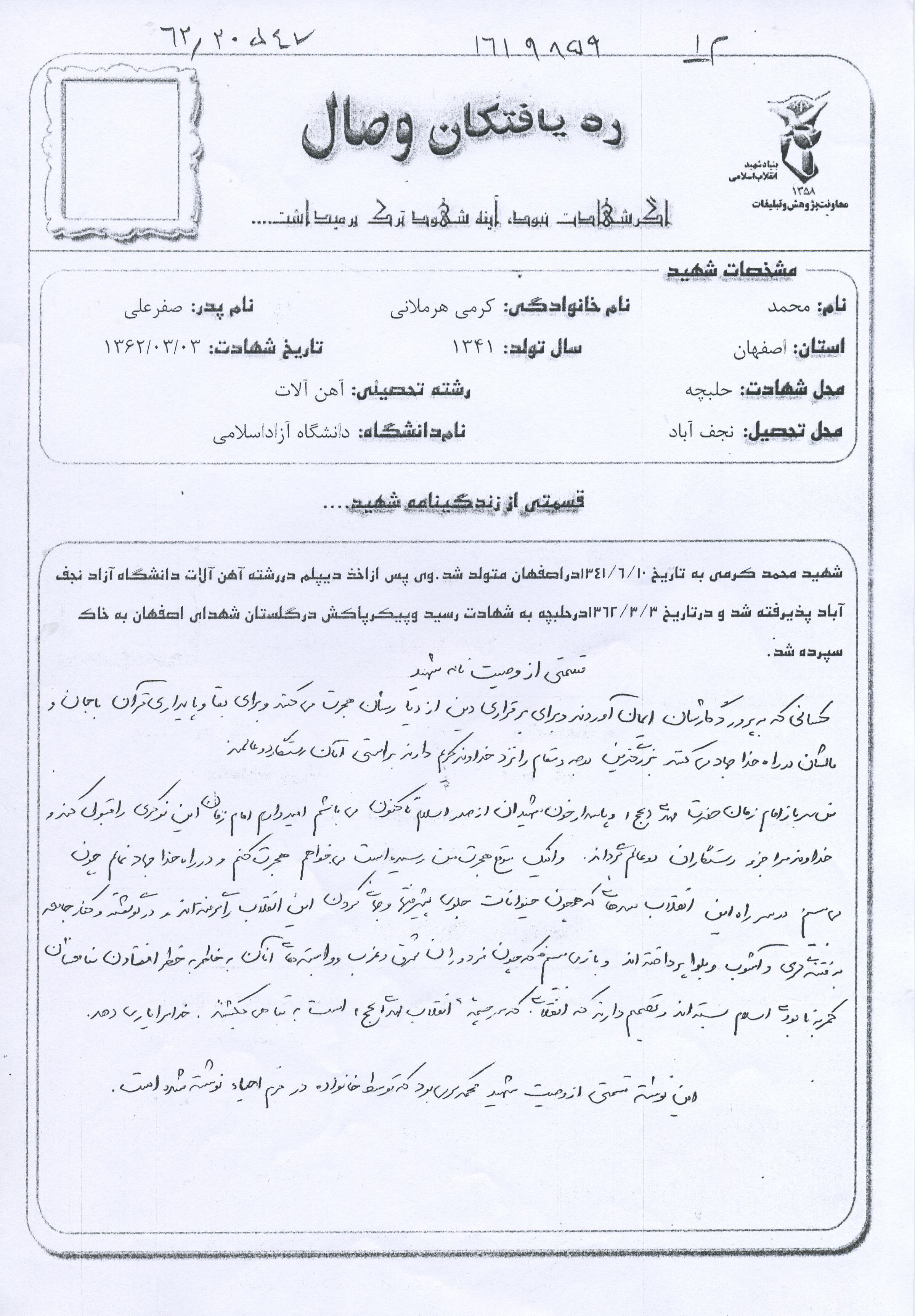 اسناد مرتبط با شهید محمد کرمی هرمدانی