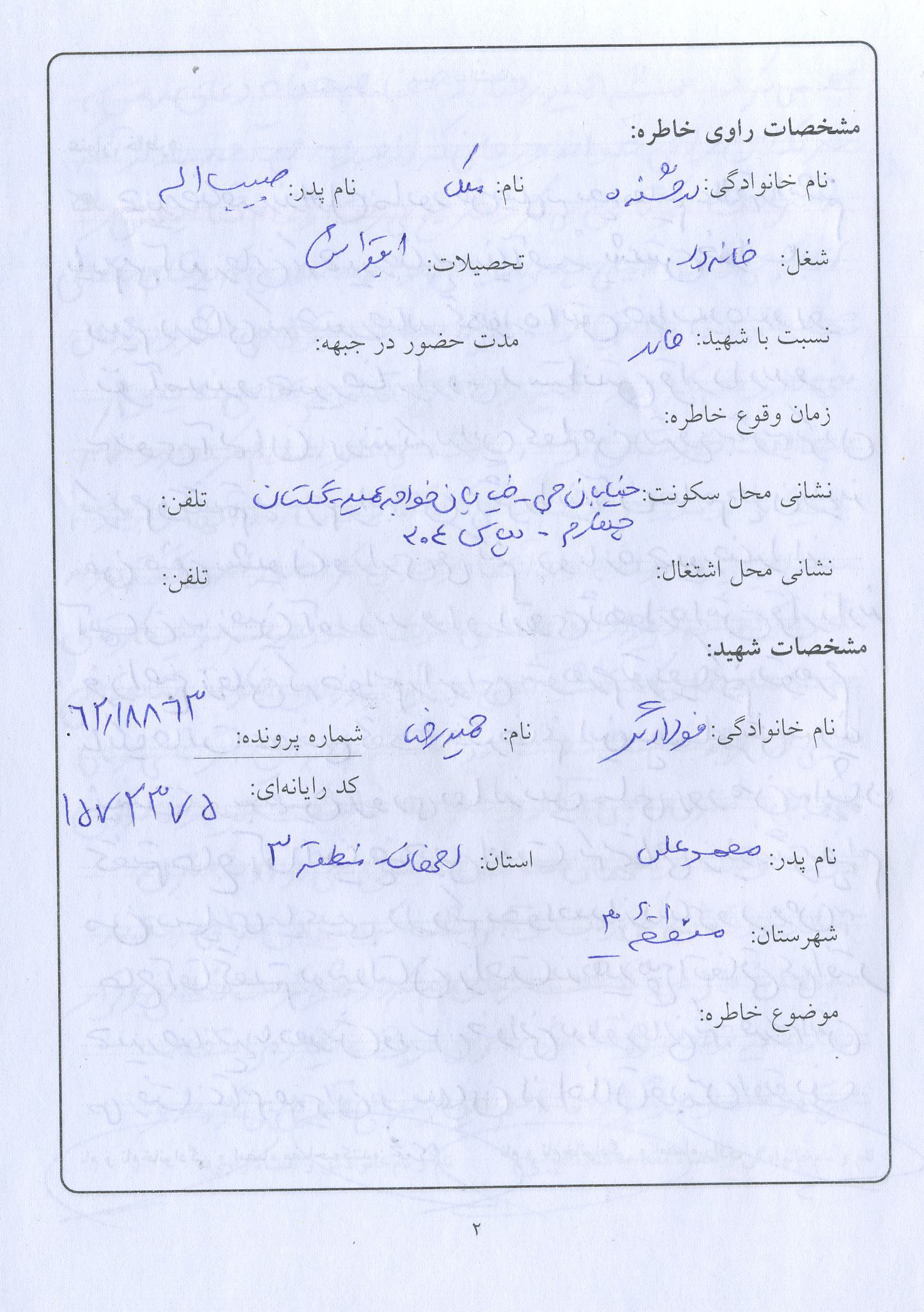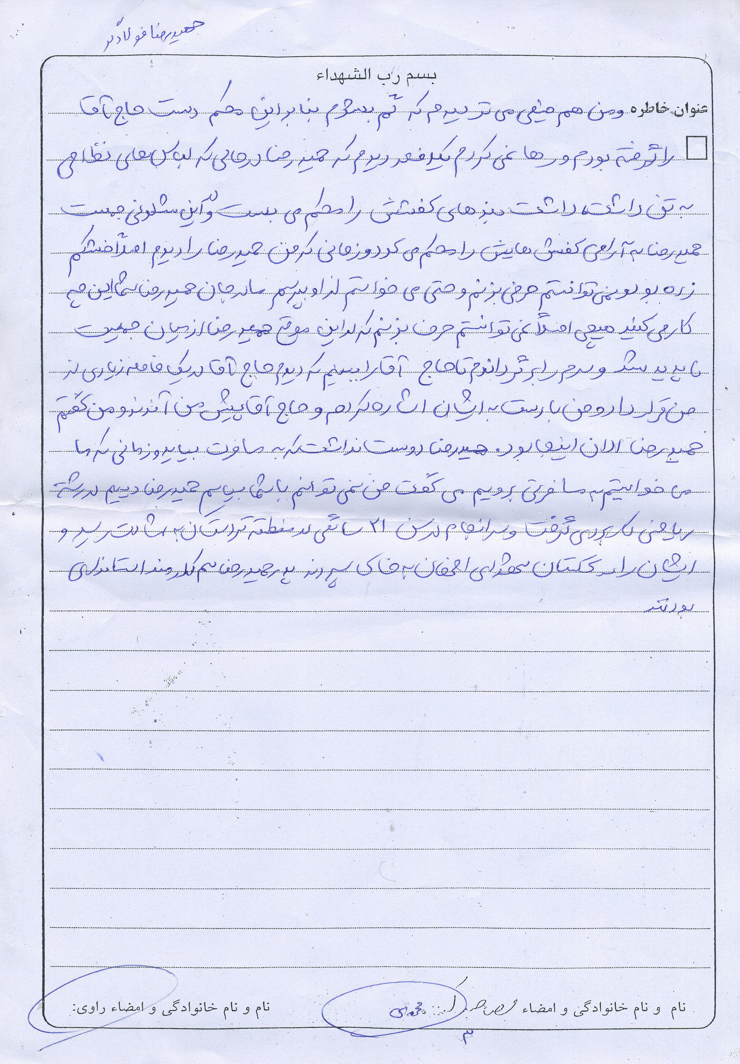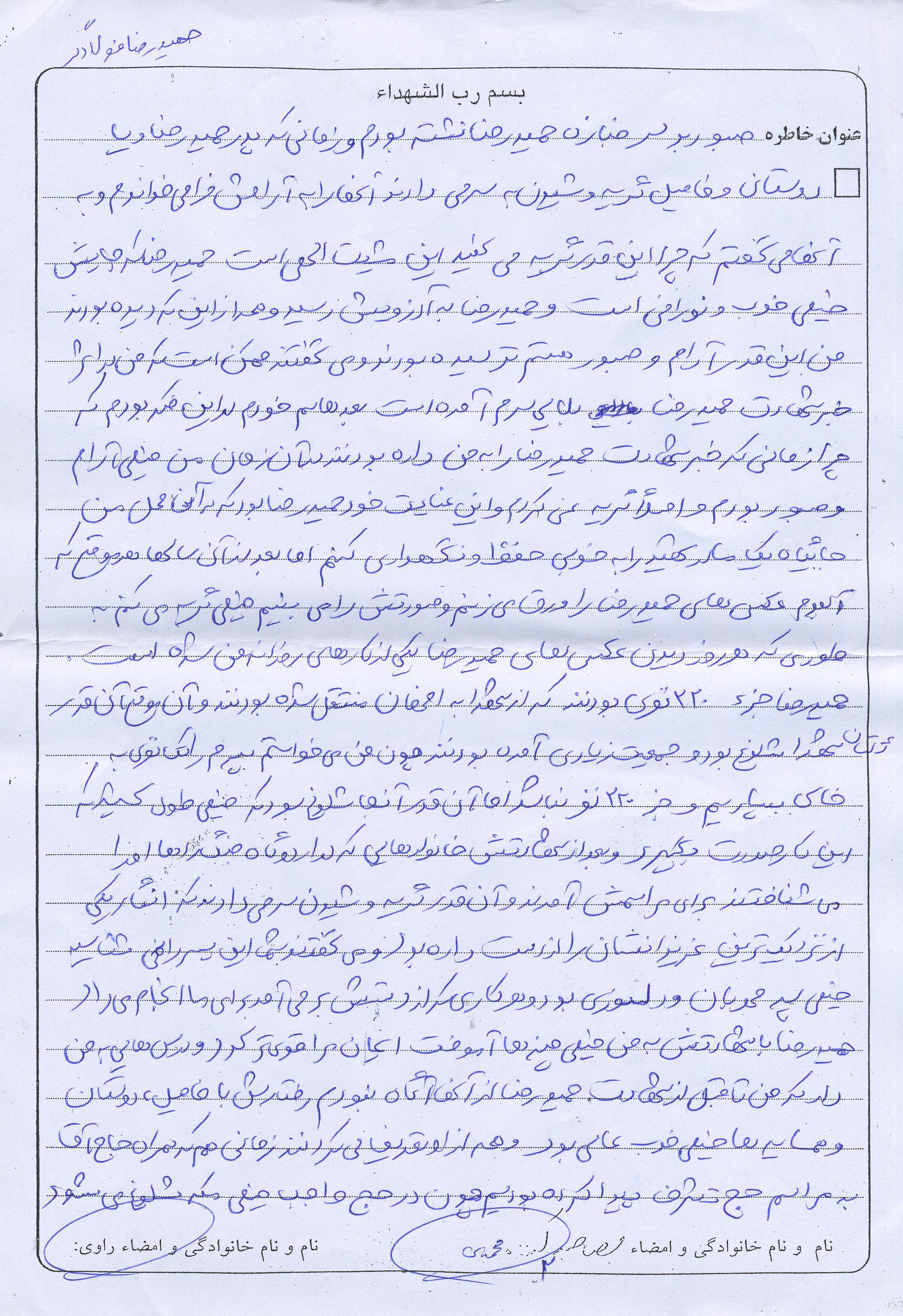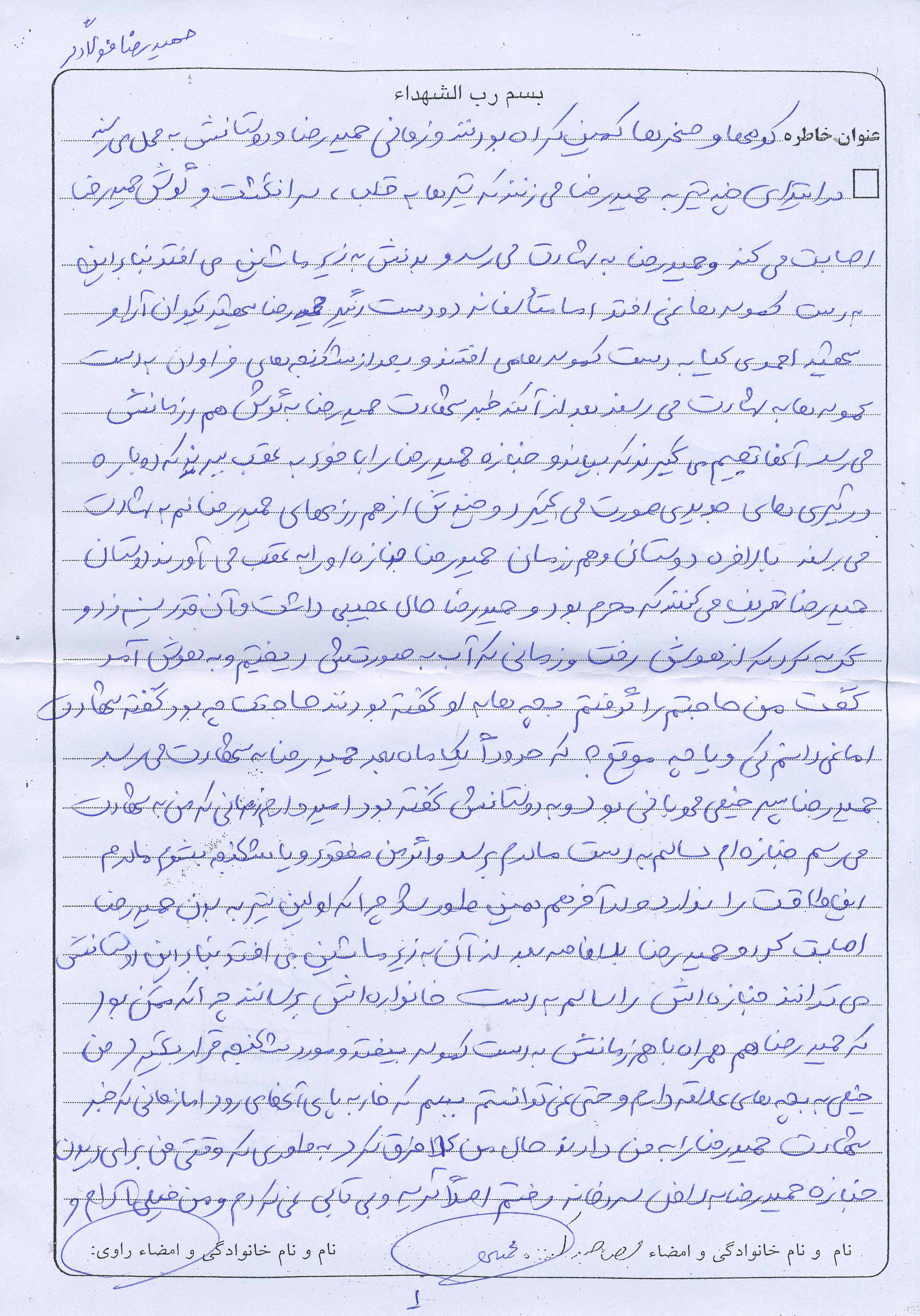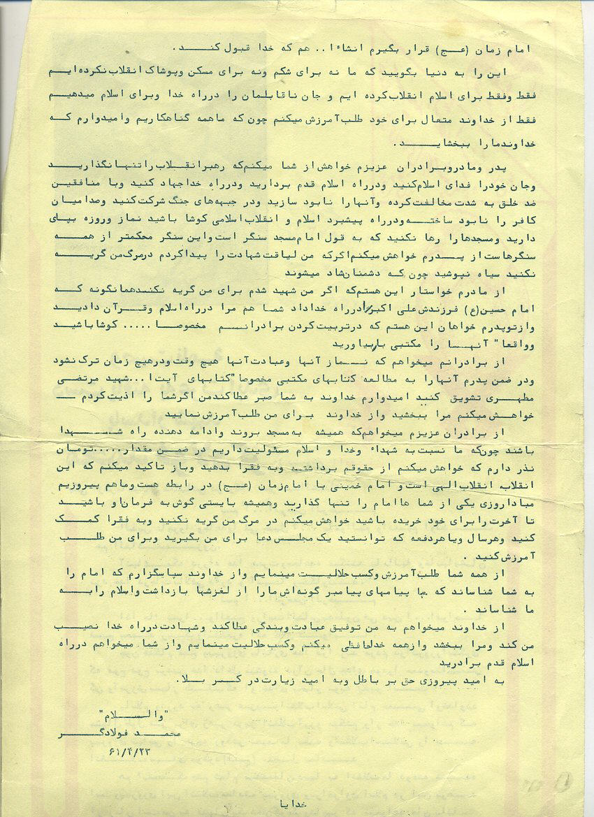 اسناد مرتبط با شهید حمیدرضا فولادگر