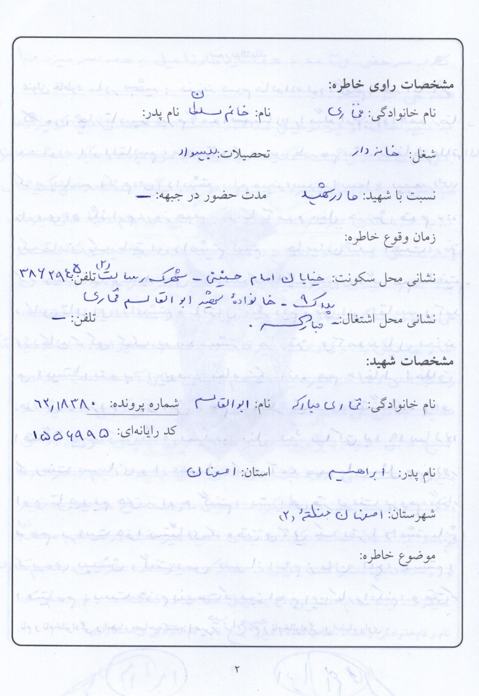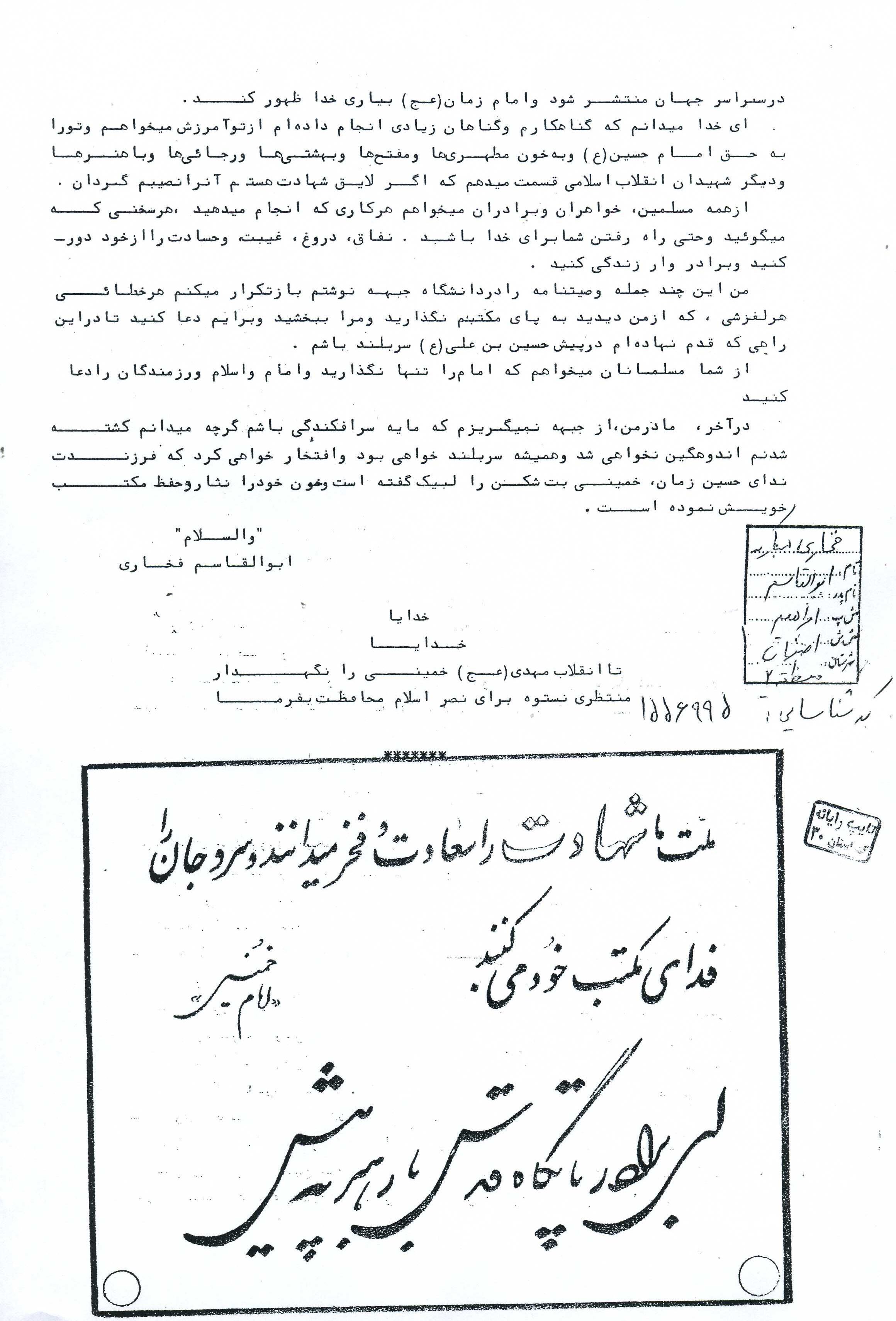 اسناد مرتبط با شهید ابوالقاسم فخاری مبارکه