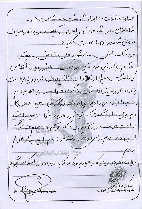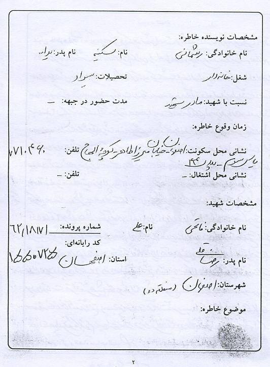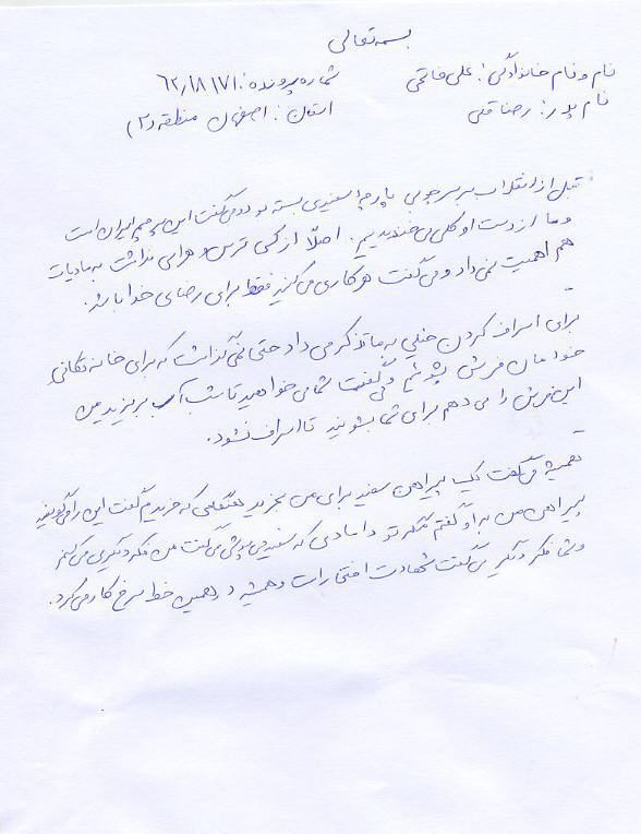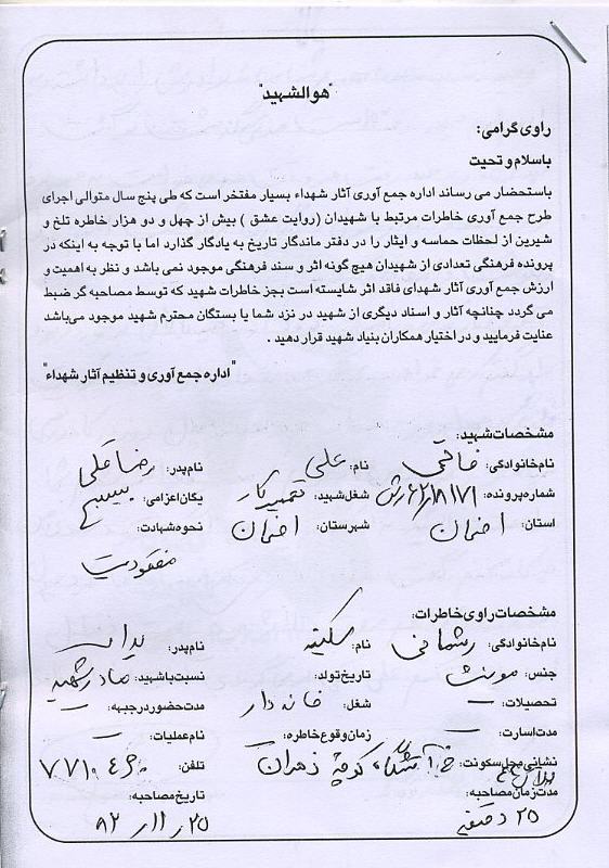 اسناد مرتبط با شهید علی فاتحی دستجردی