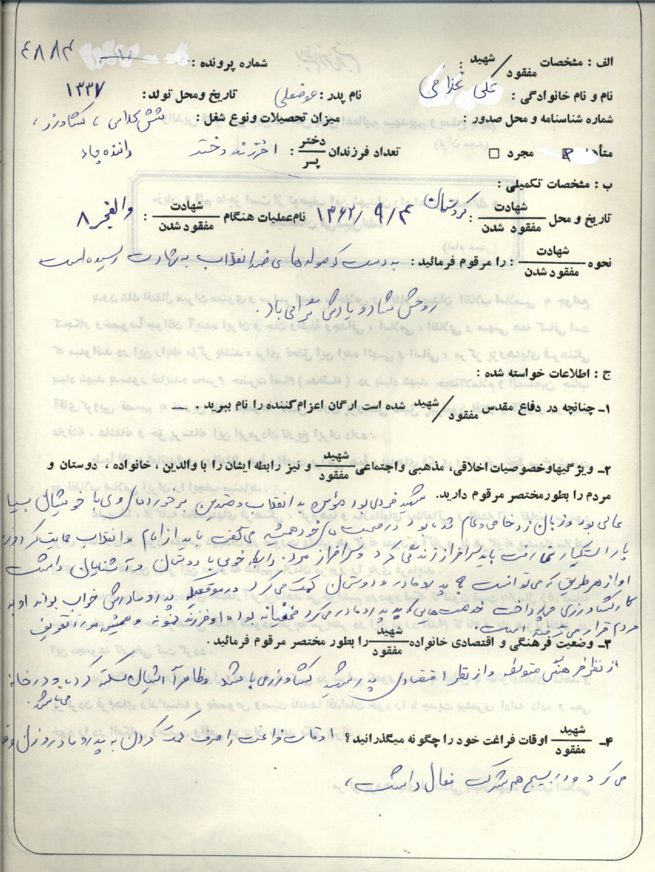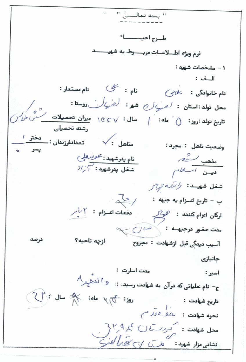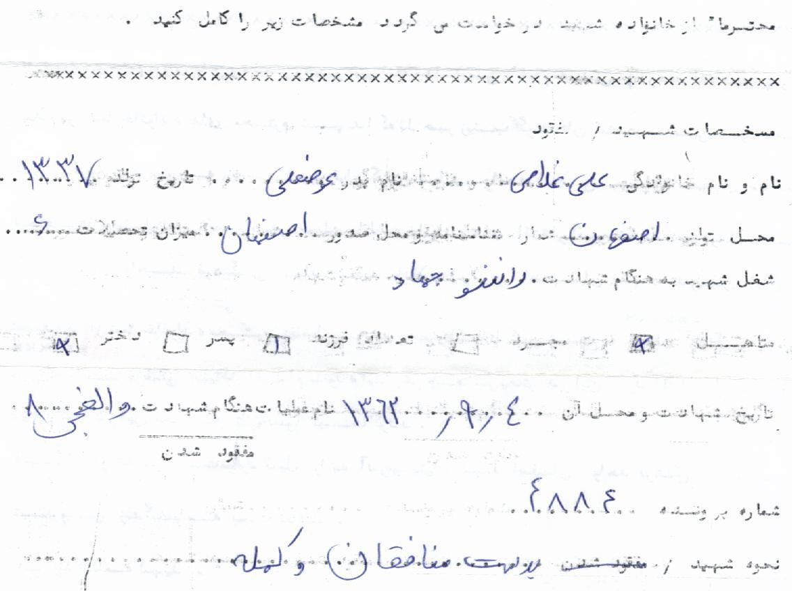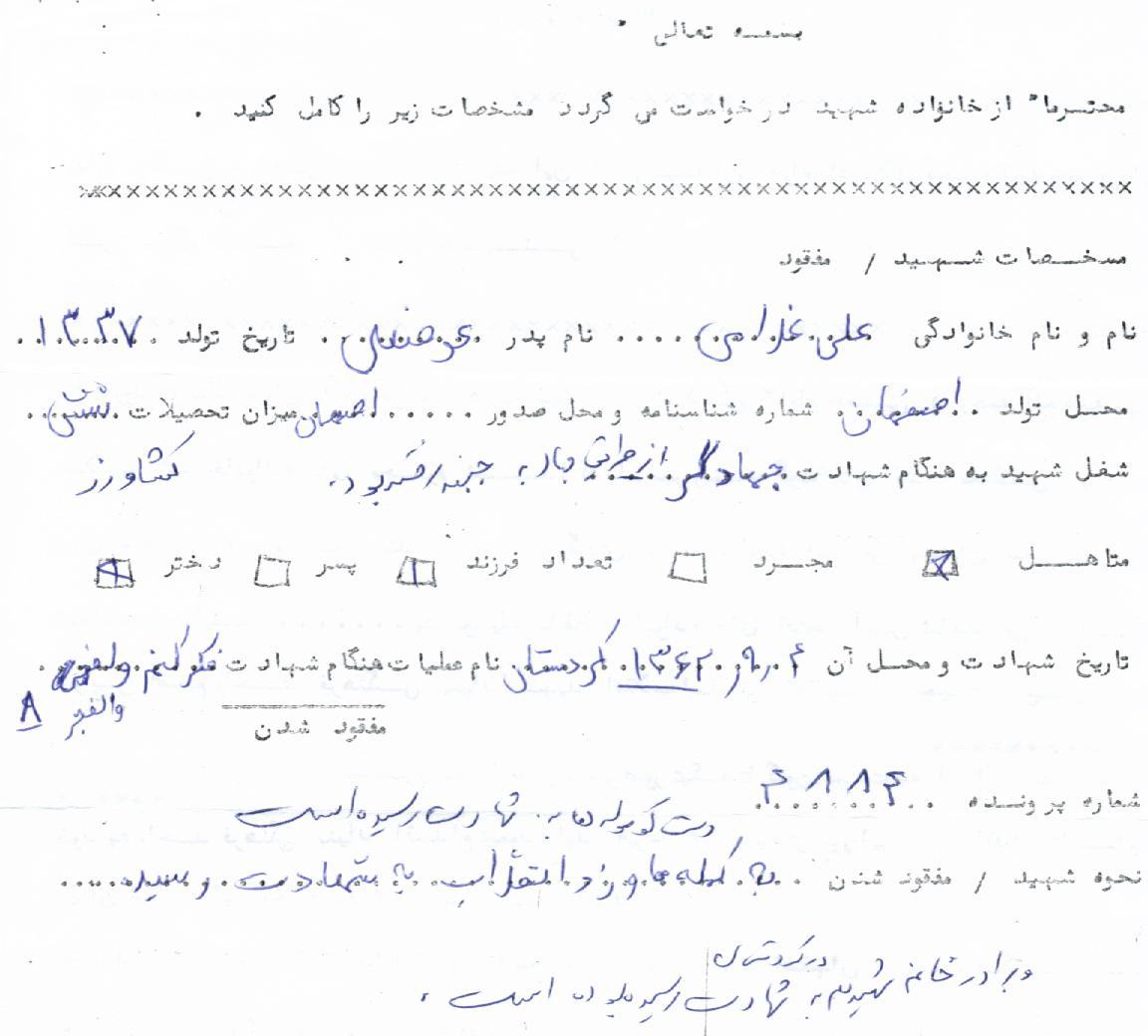 اسناد مرتبط با شهید علی غلامی