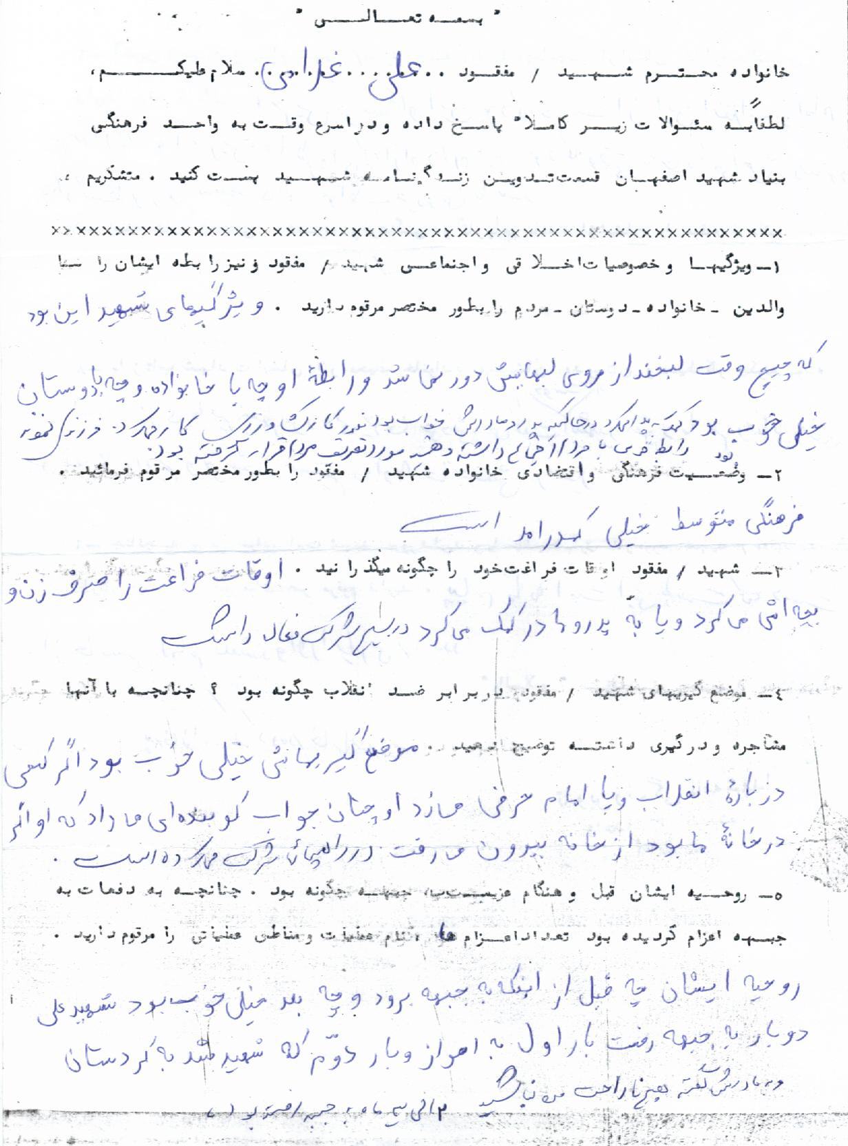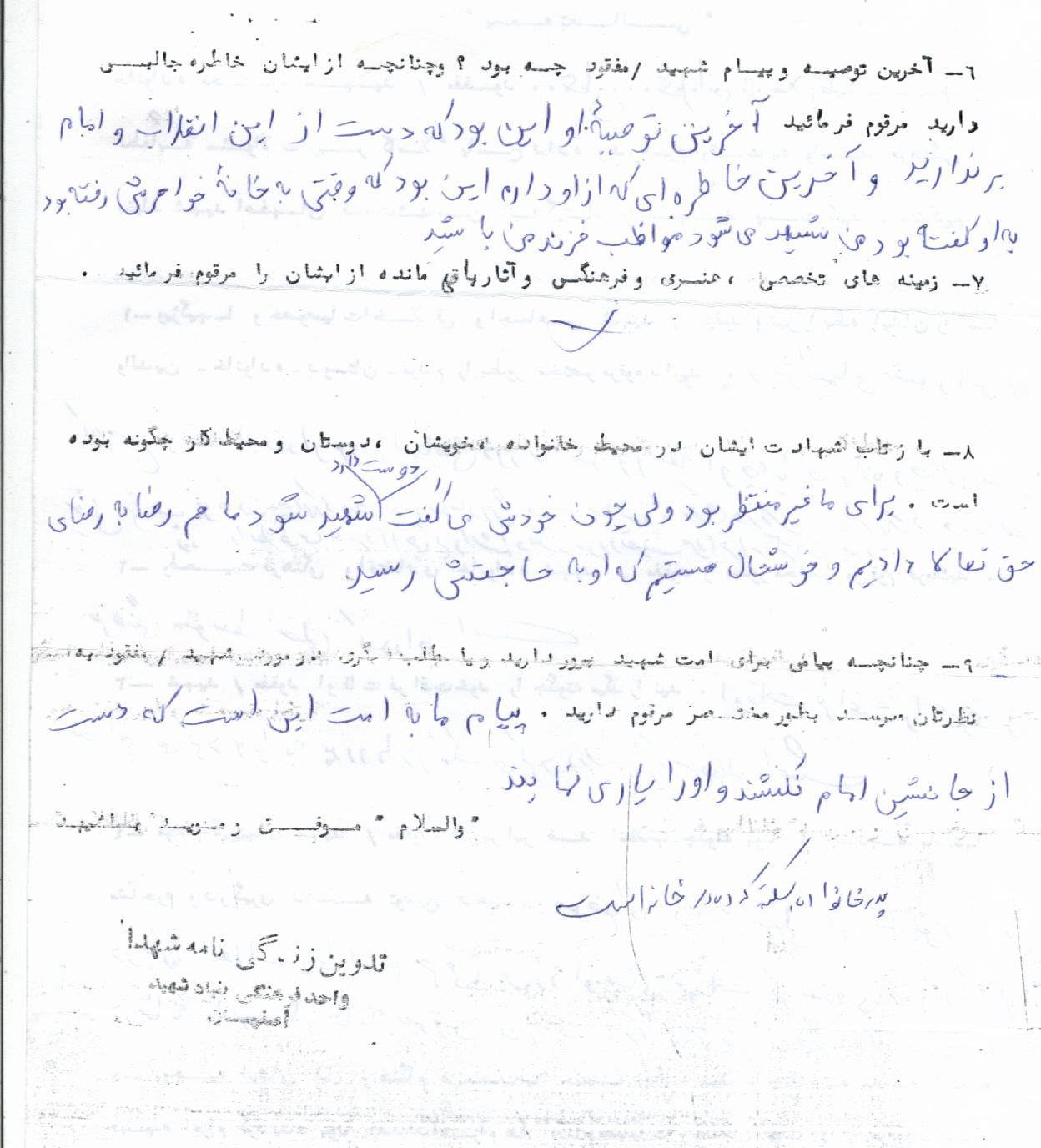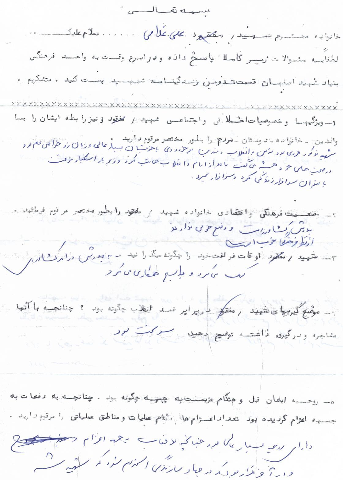 اسناد مرتبط با شهید علی غلامی
