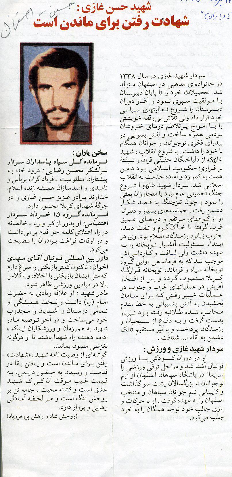 اسناد مرتبط با شهید حسن غازی اصفهانی