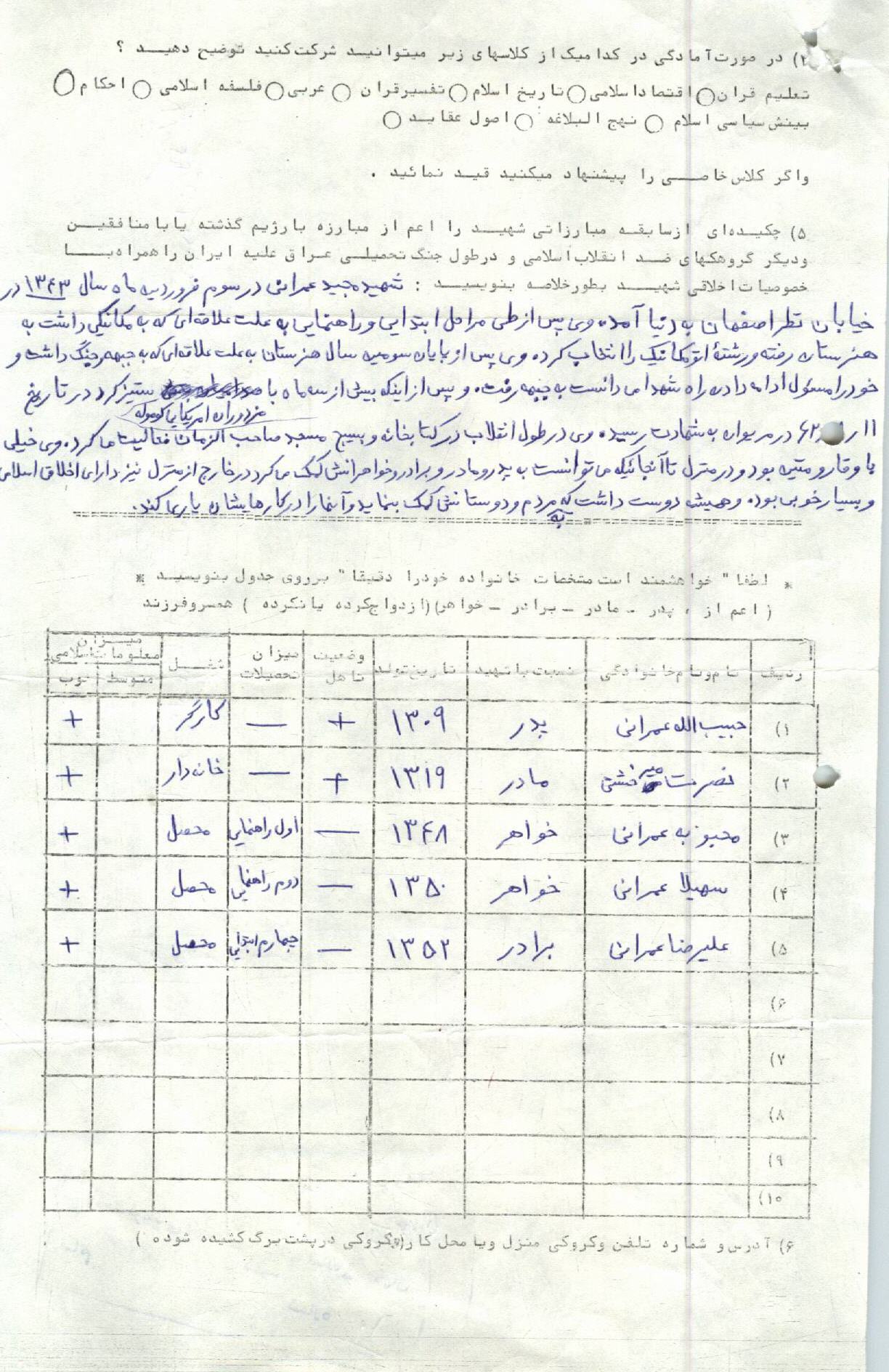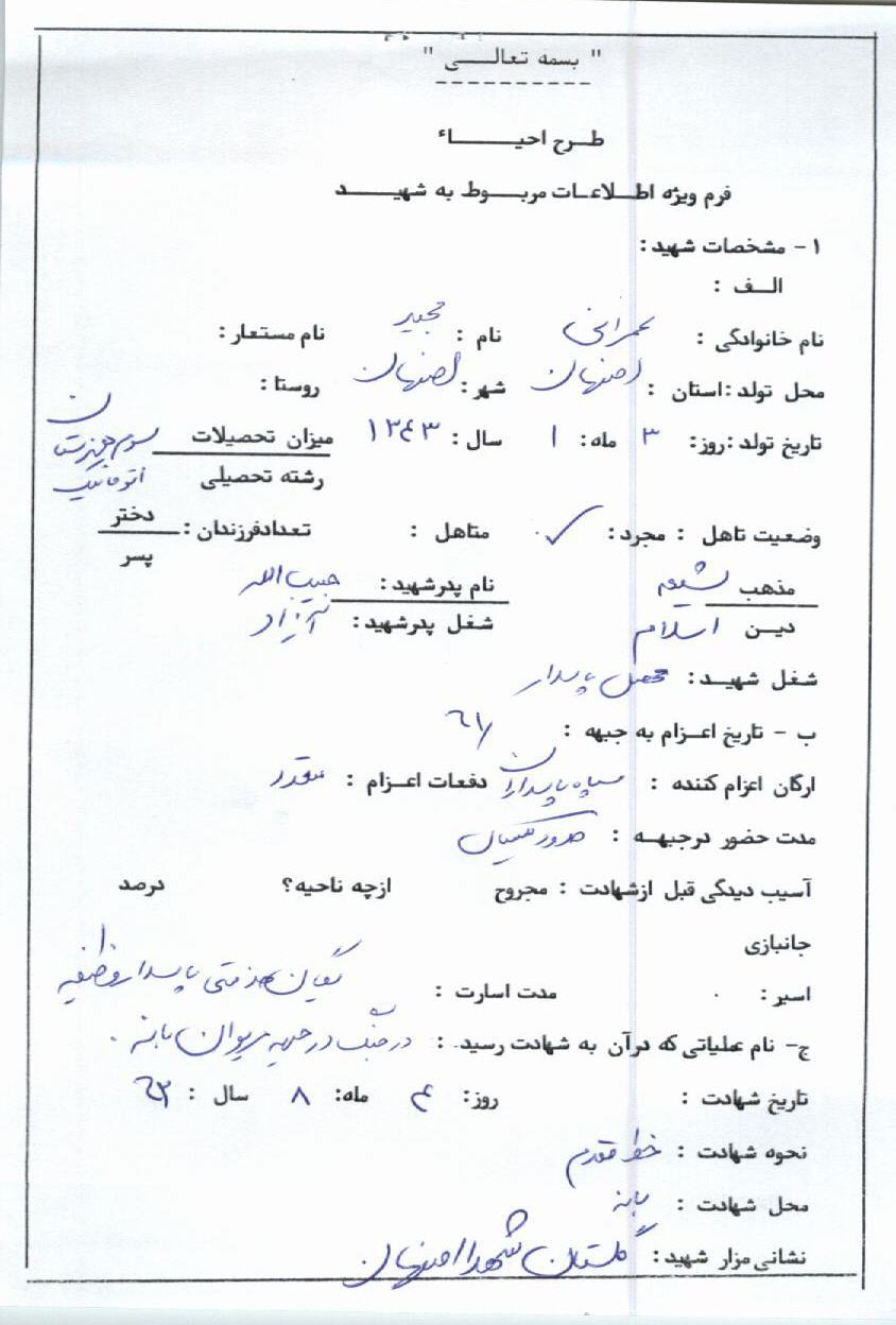 اسناد مرتبط با شهید مجید عمرانی سیچانی