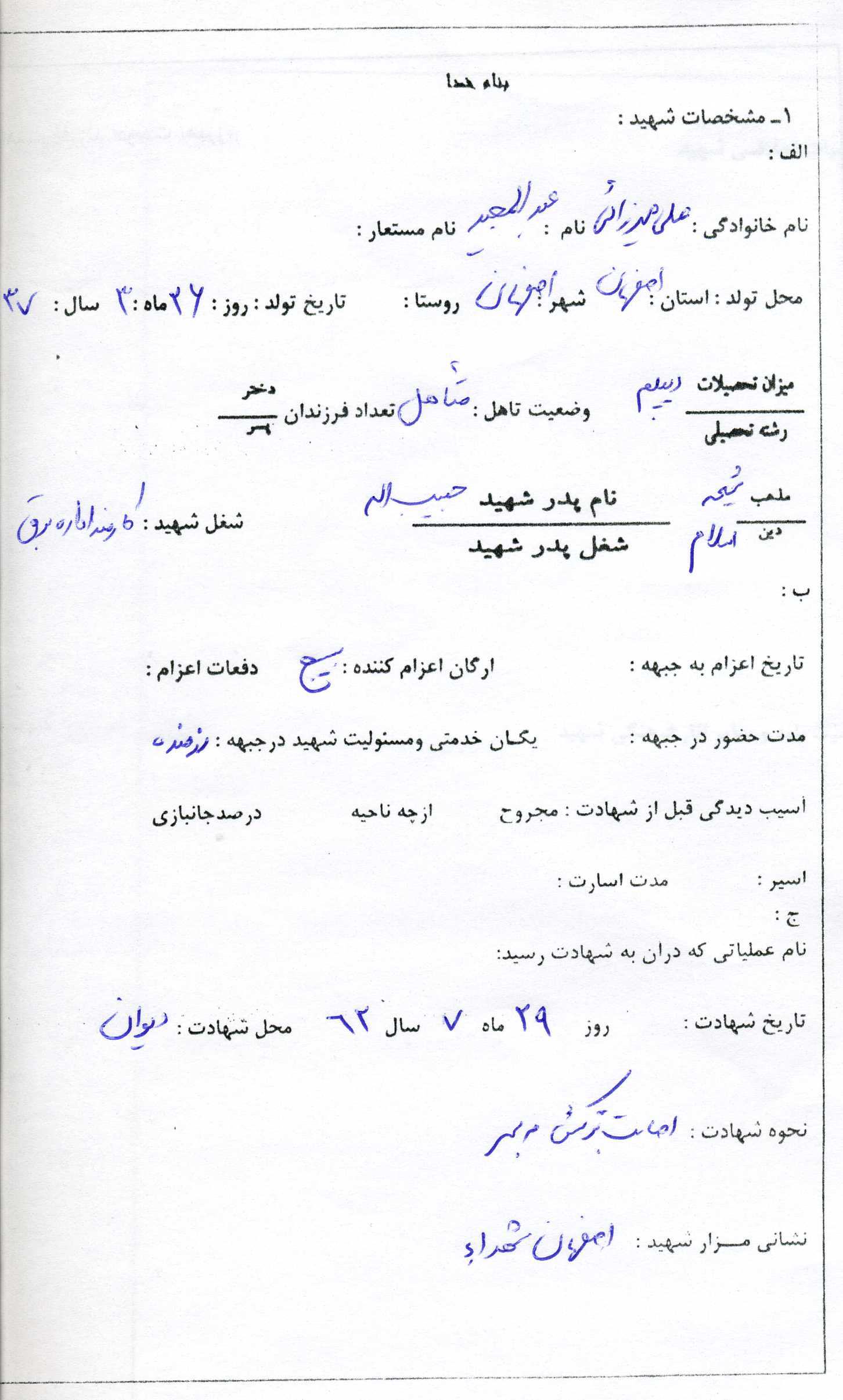 اسناد مرتبط با شهید عبدالمجید علی میرزایی سیچانی