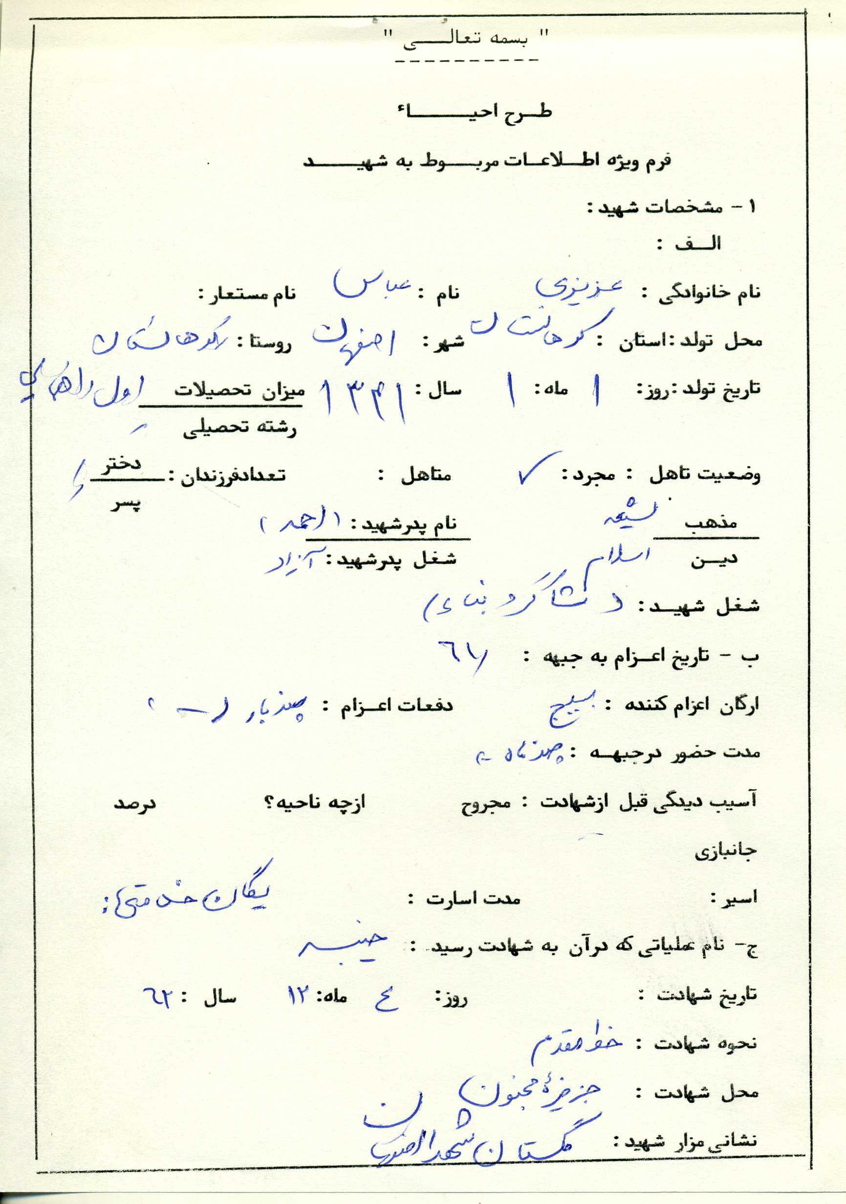 اسناد مرتبط با شهید عباس عزیزی کوهانستانی