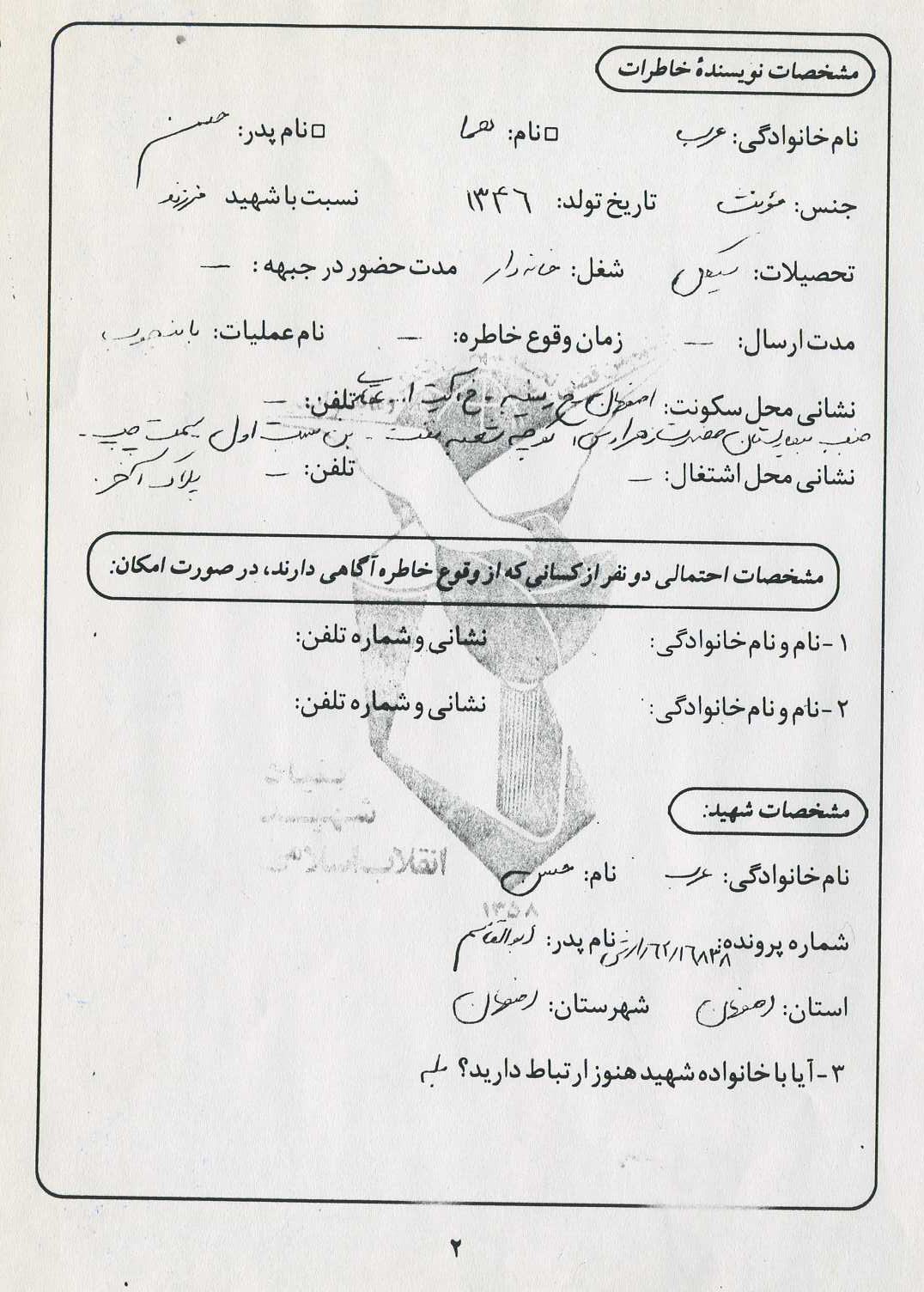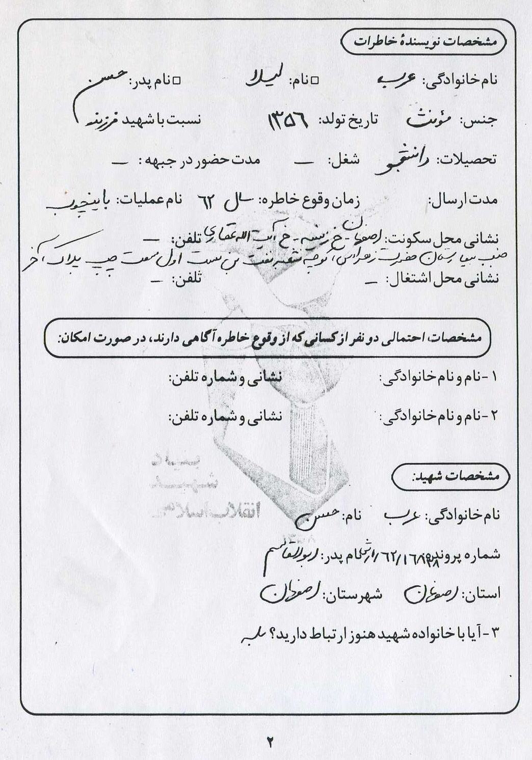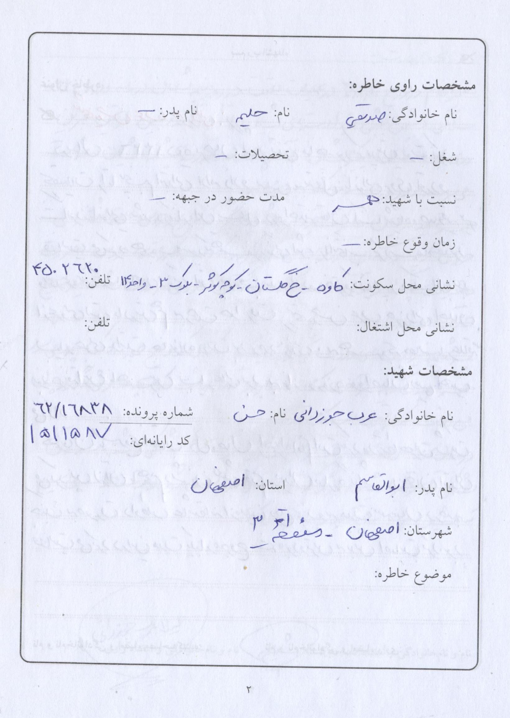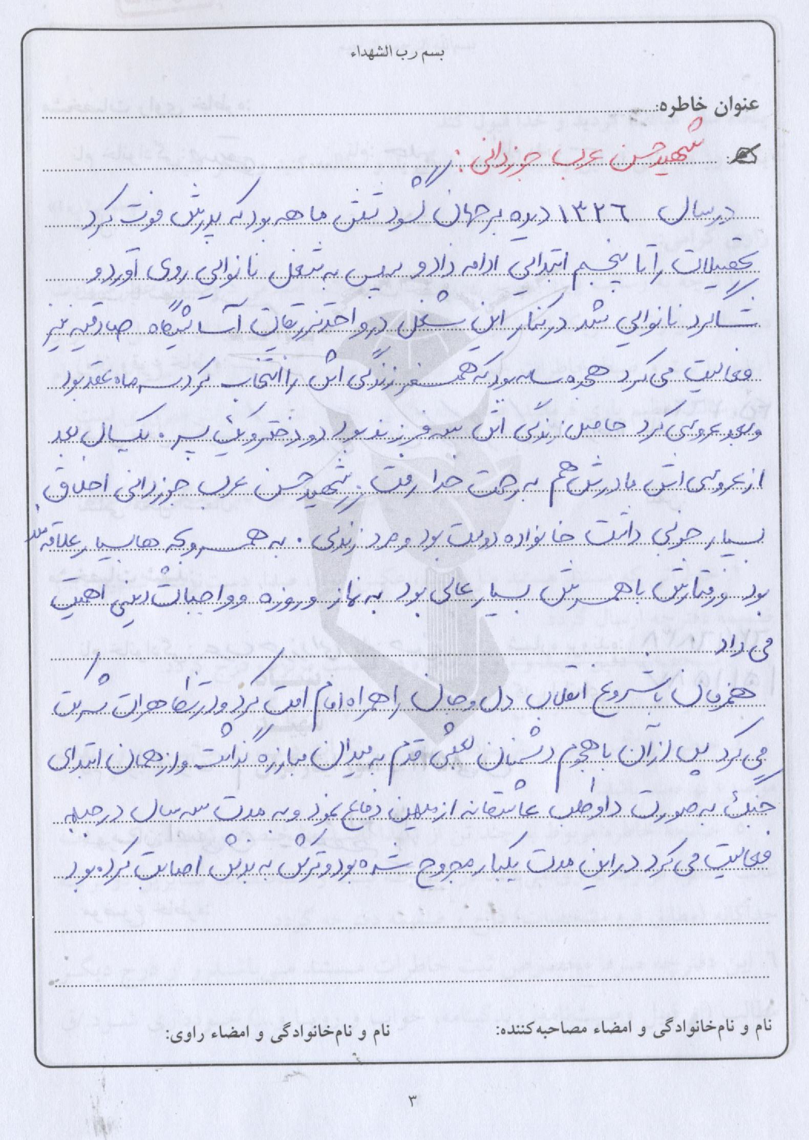 اسناد مرتبط با شهید حسن عرب جوزدانی