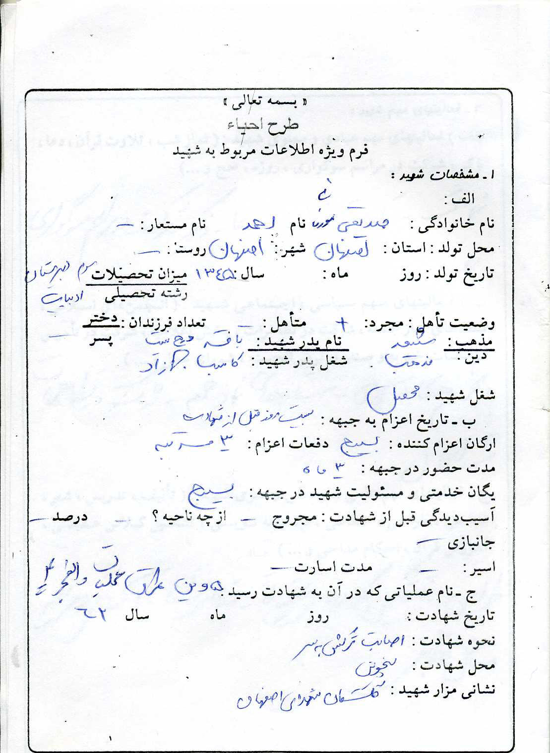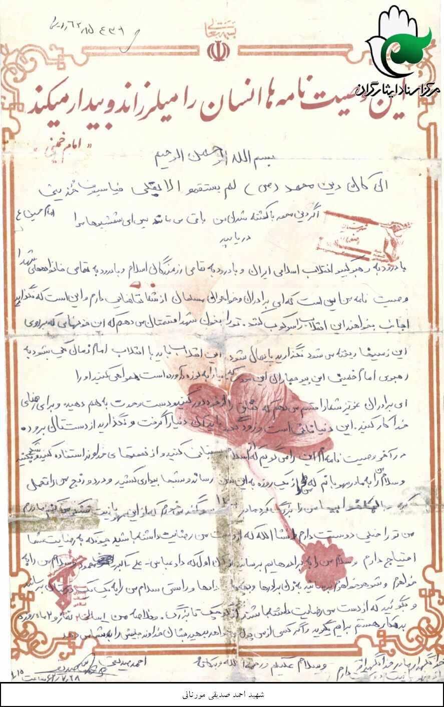 اسناد مرتبط با شهید احمد صدیقی مورنانی