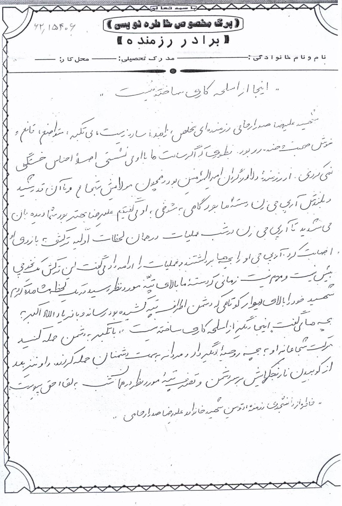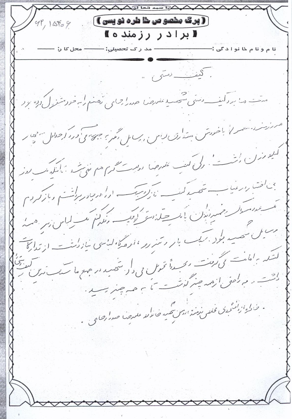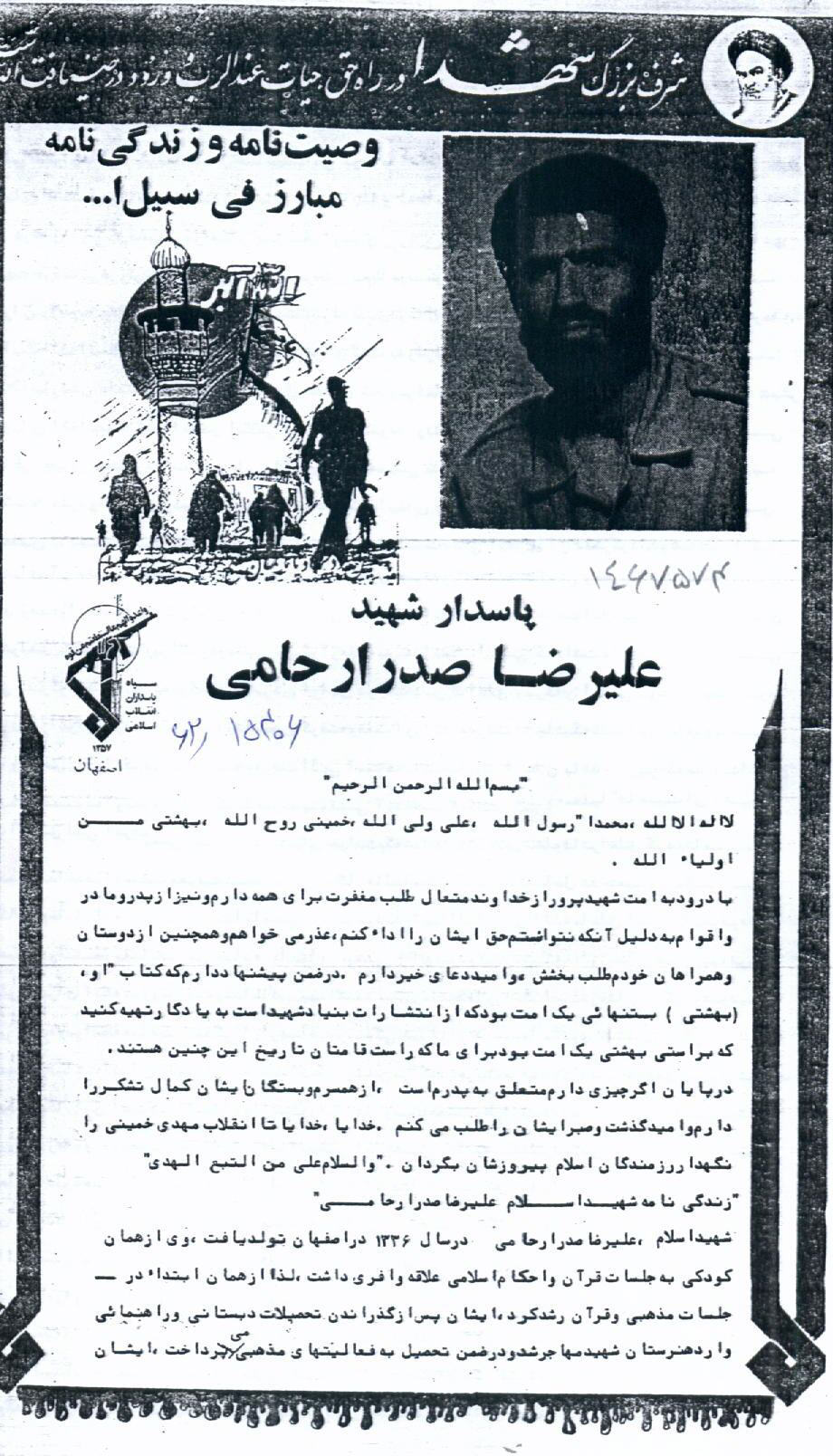 اسناد مرتبط با شهید علی رضا صدرارحامی