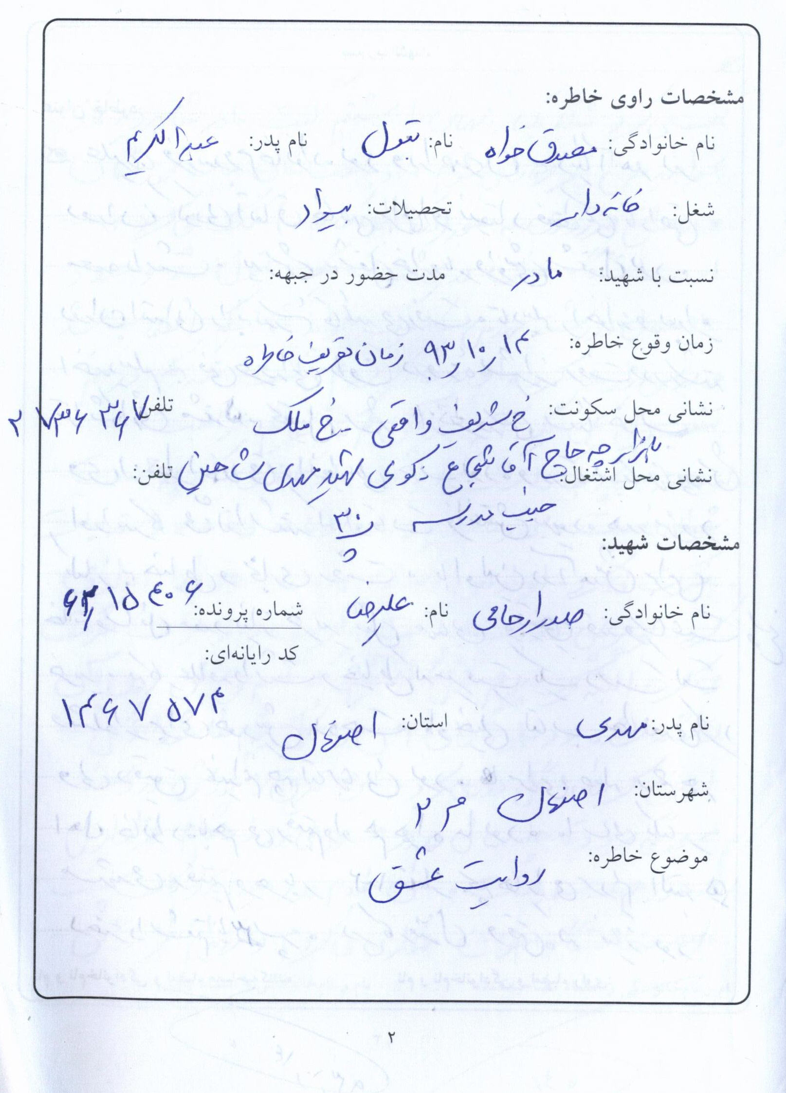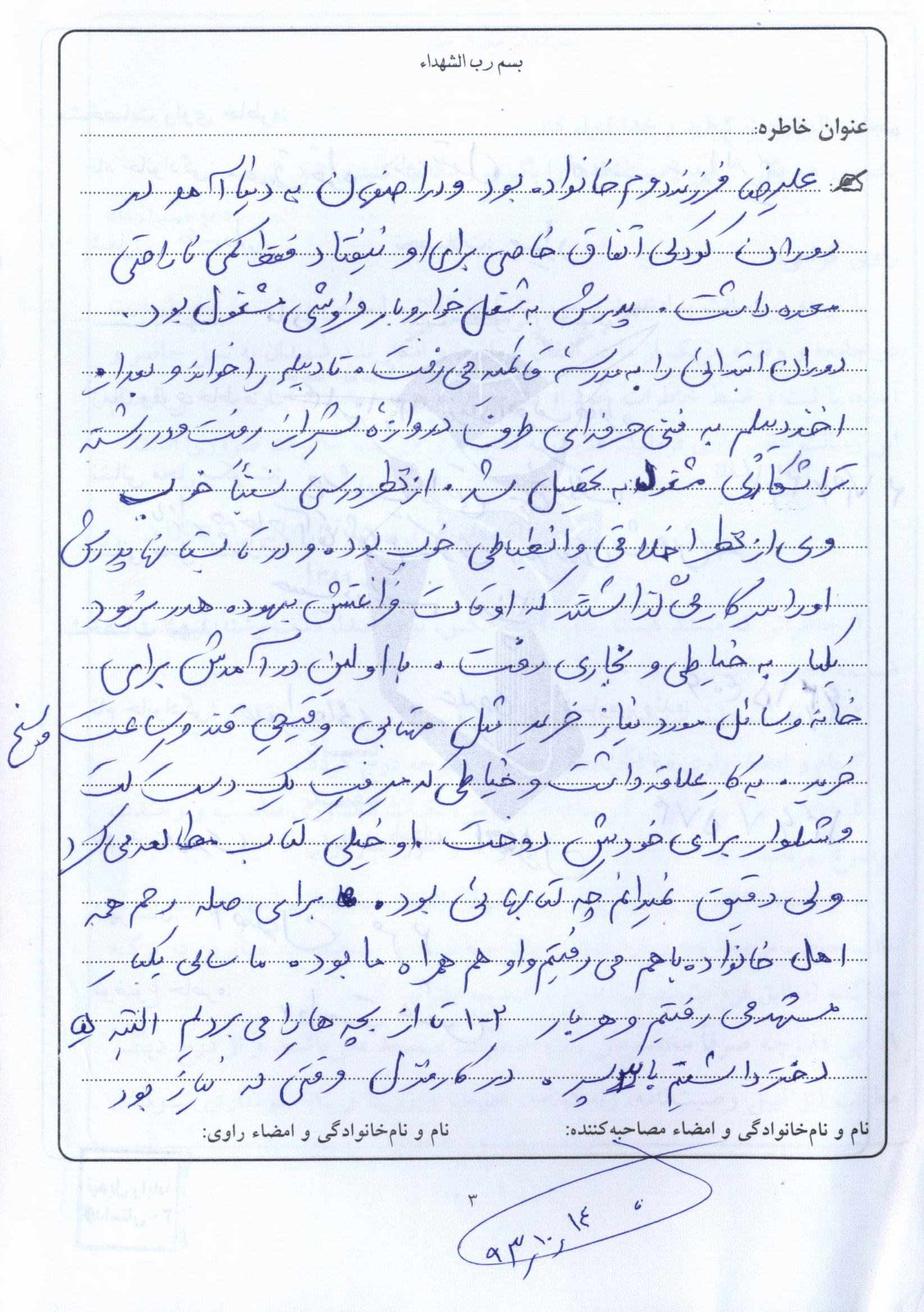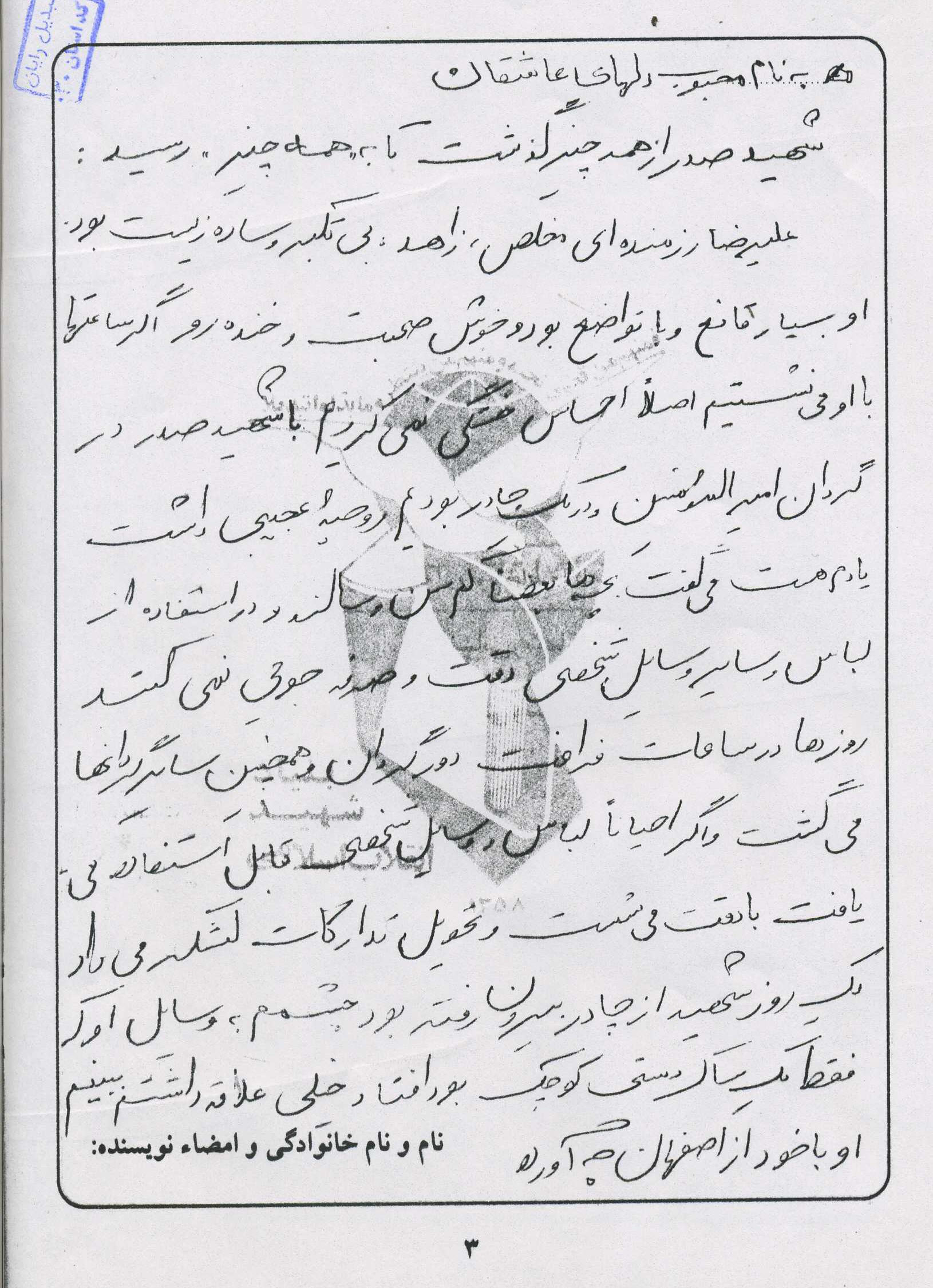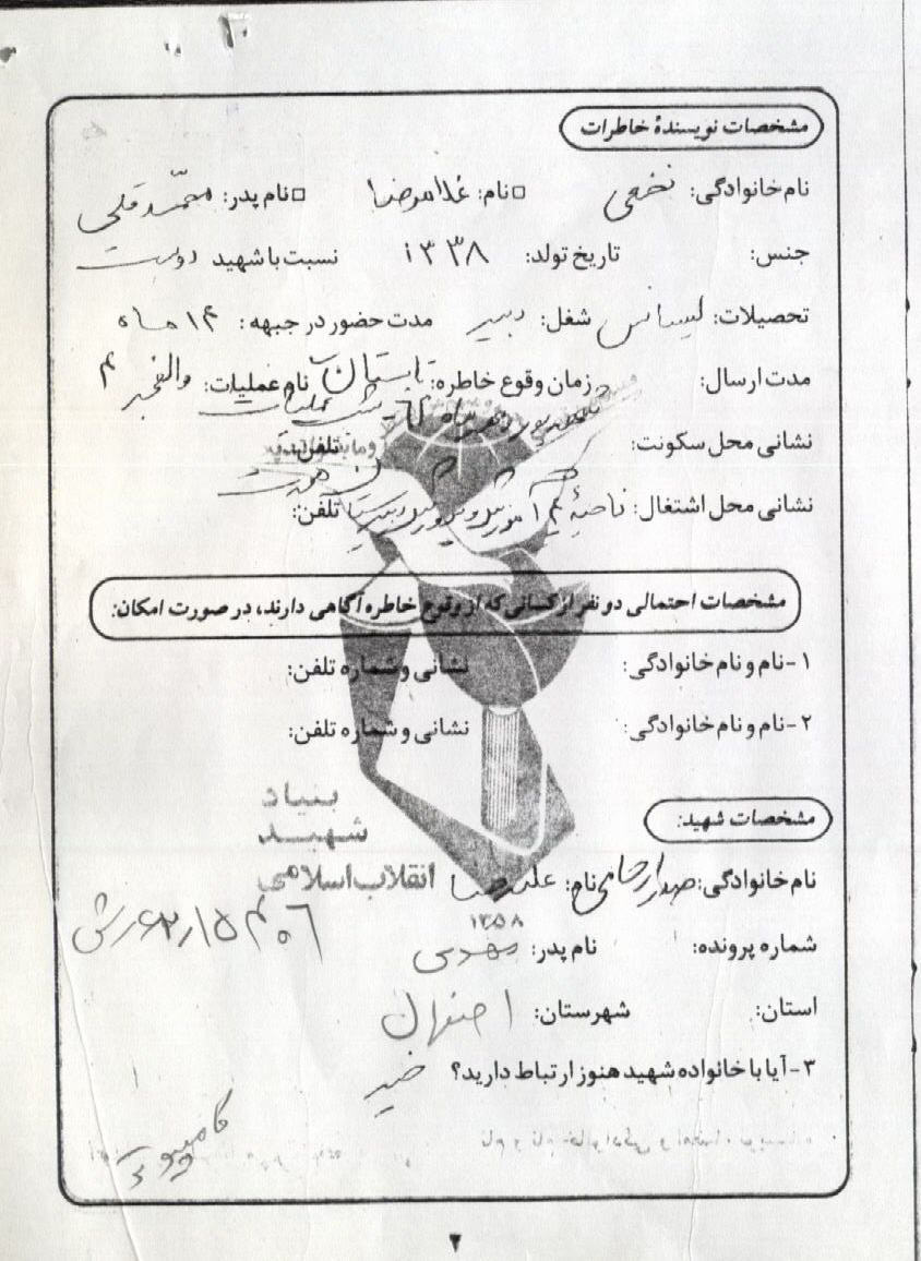 اسناد مرتبط با شهید علی رضا صدرارحامی