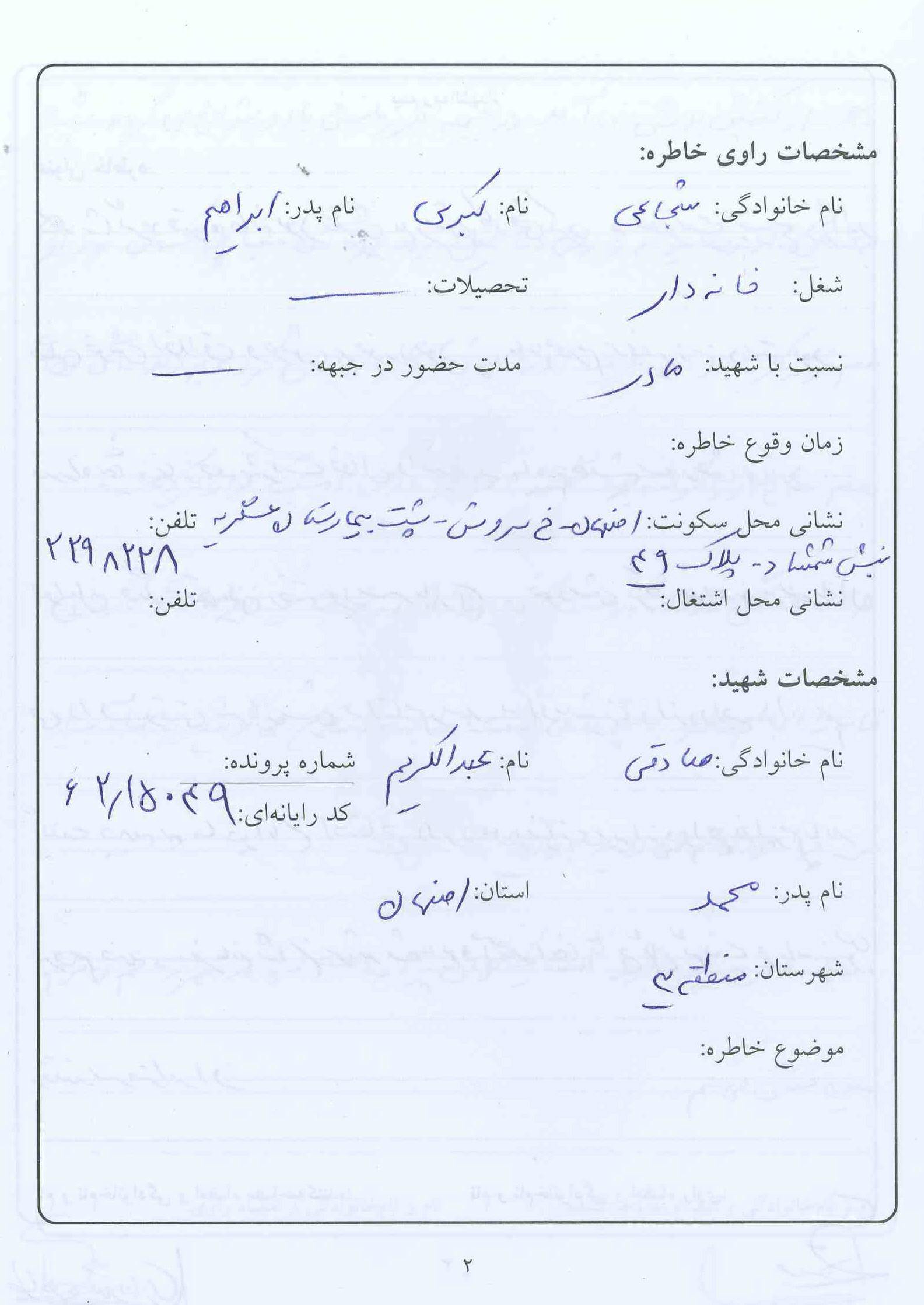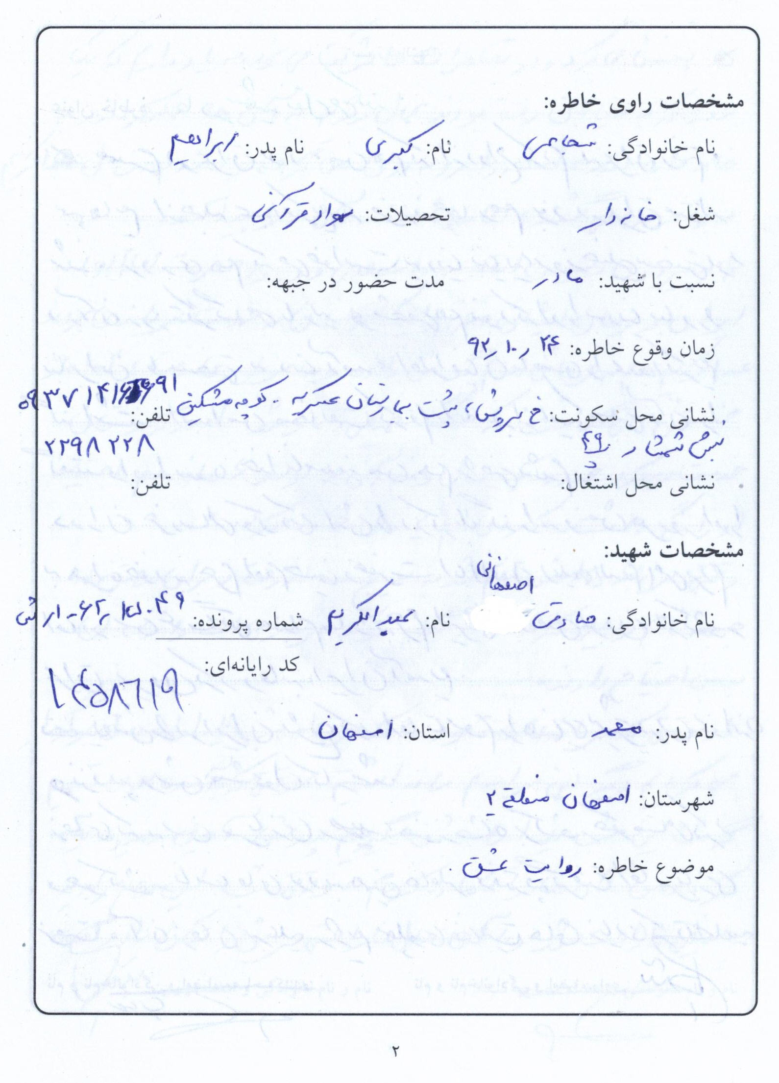 اسناد مرتبط با شهید عبدالکریم صادقی اصفهانی
