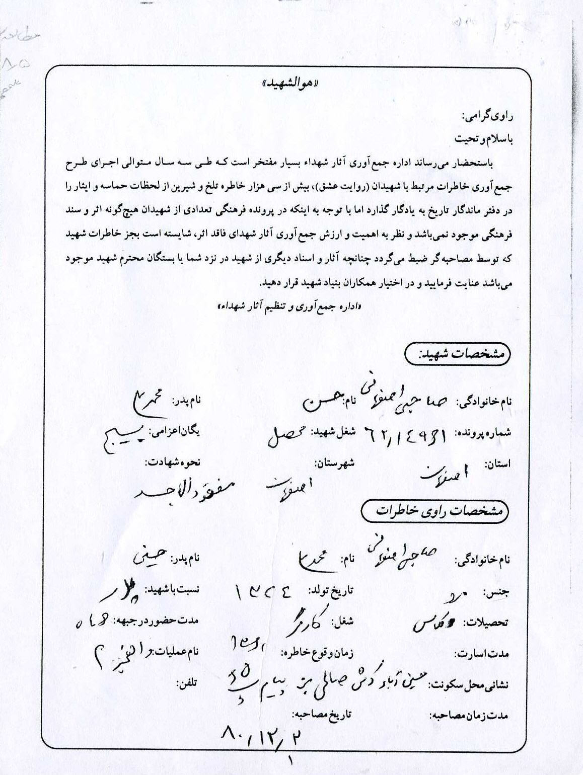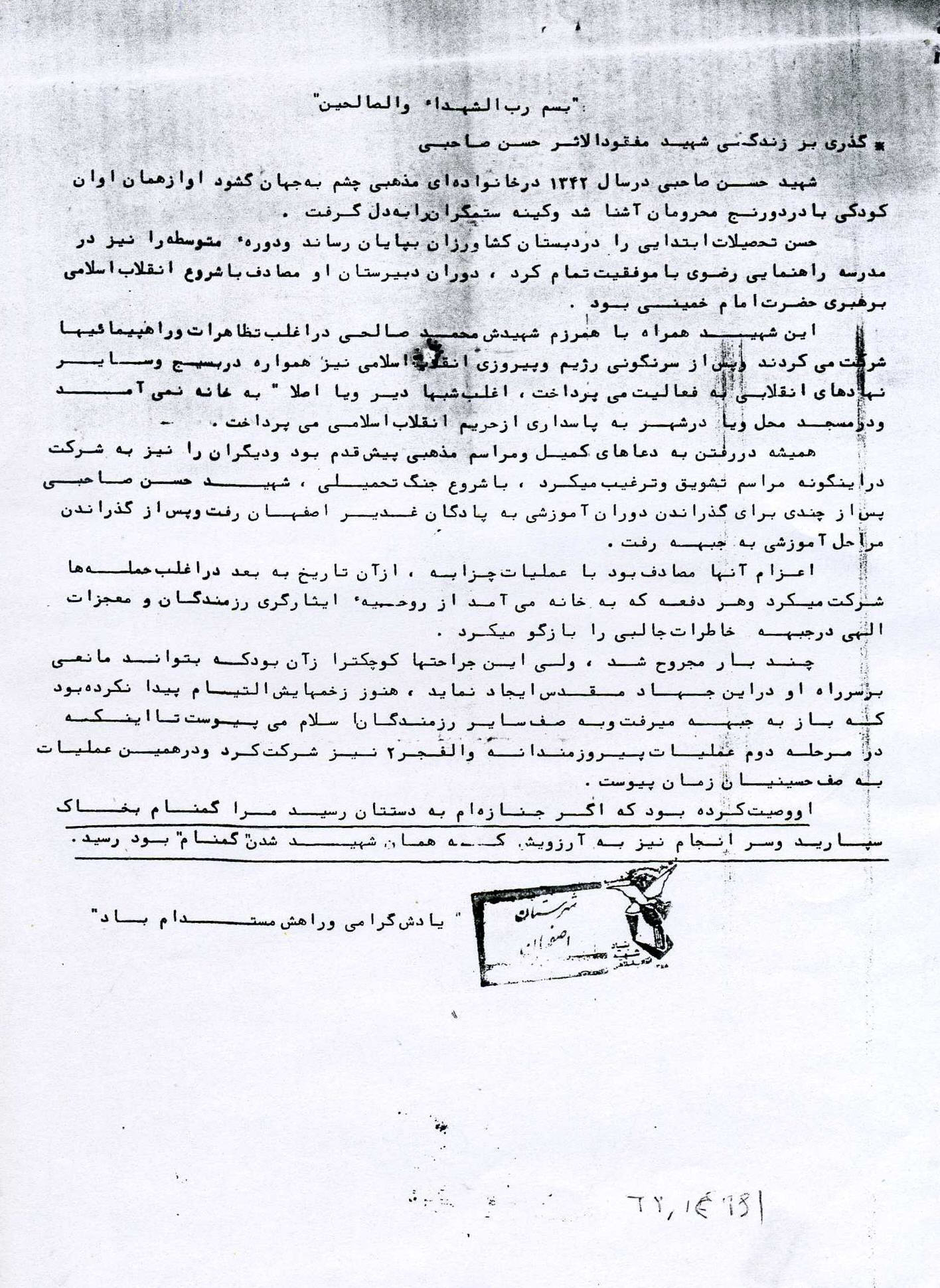 اسناد مرتبط با شهید حسن صاحبی اصفهانی