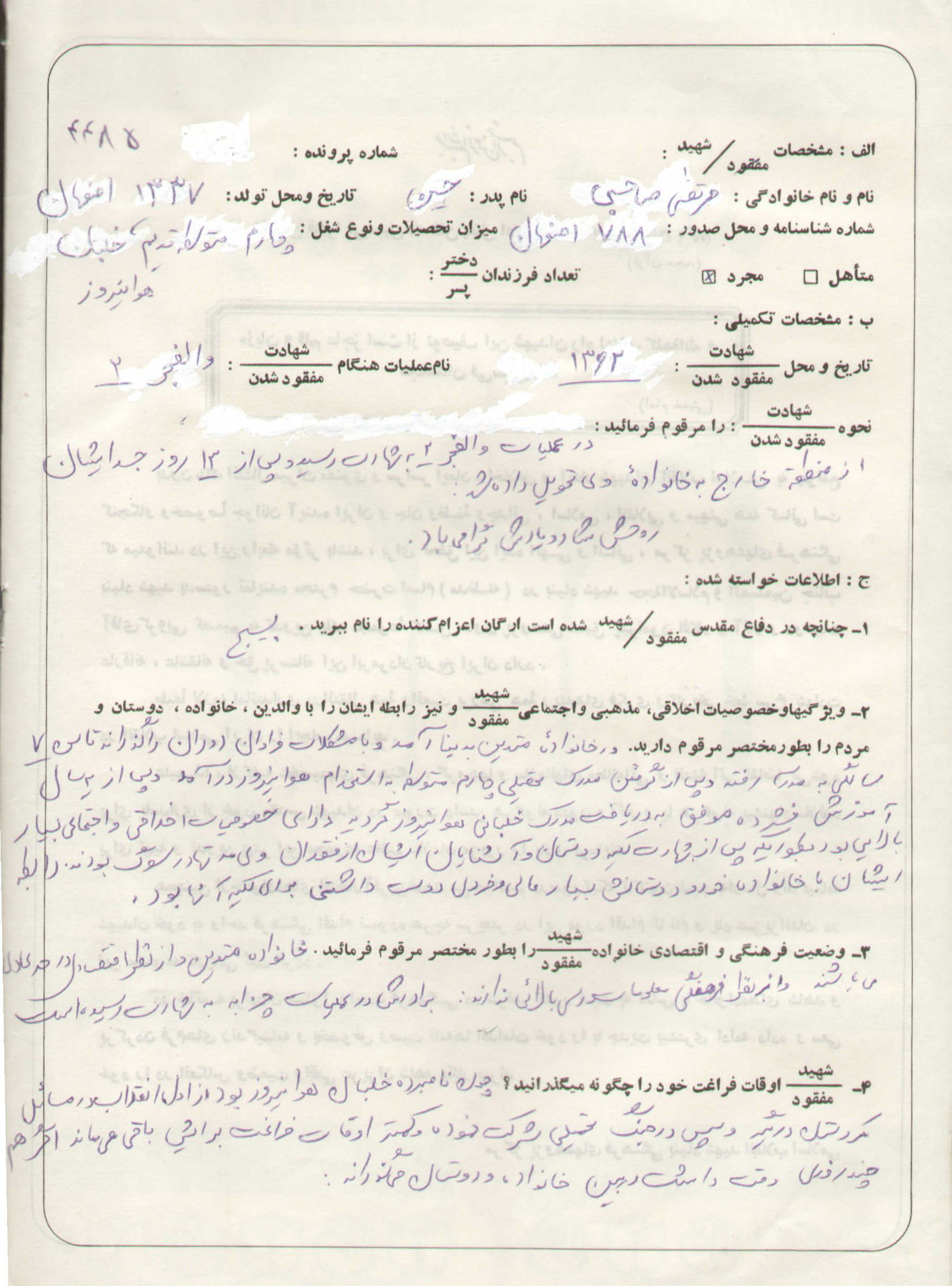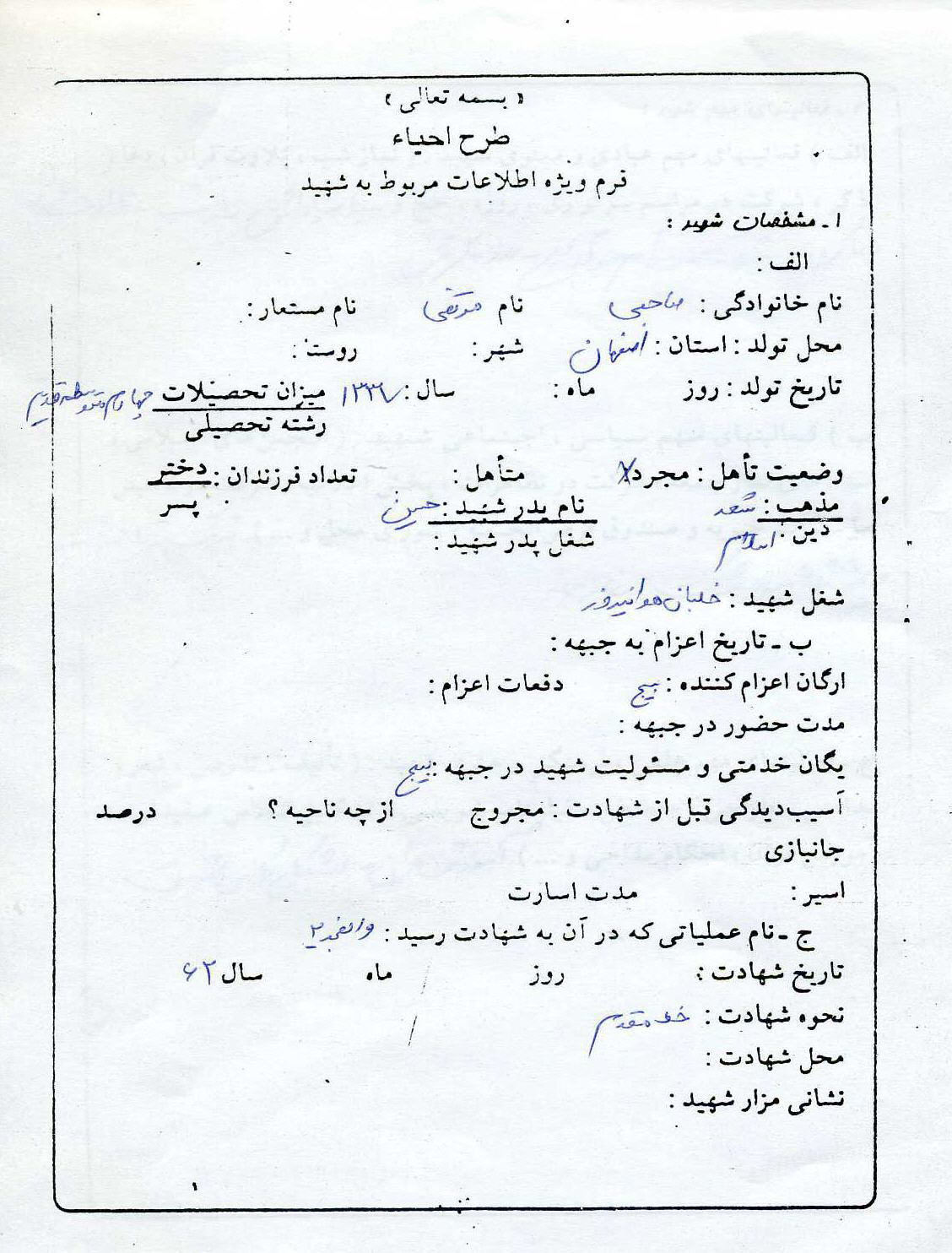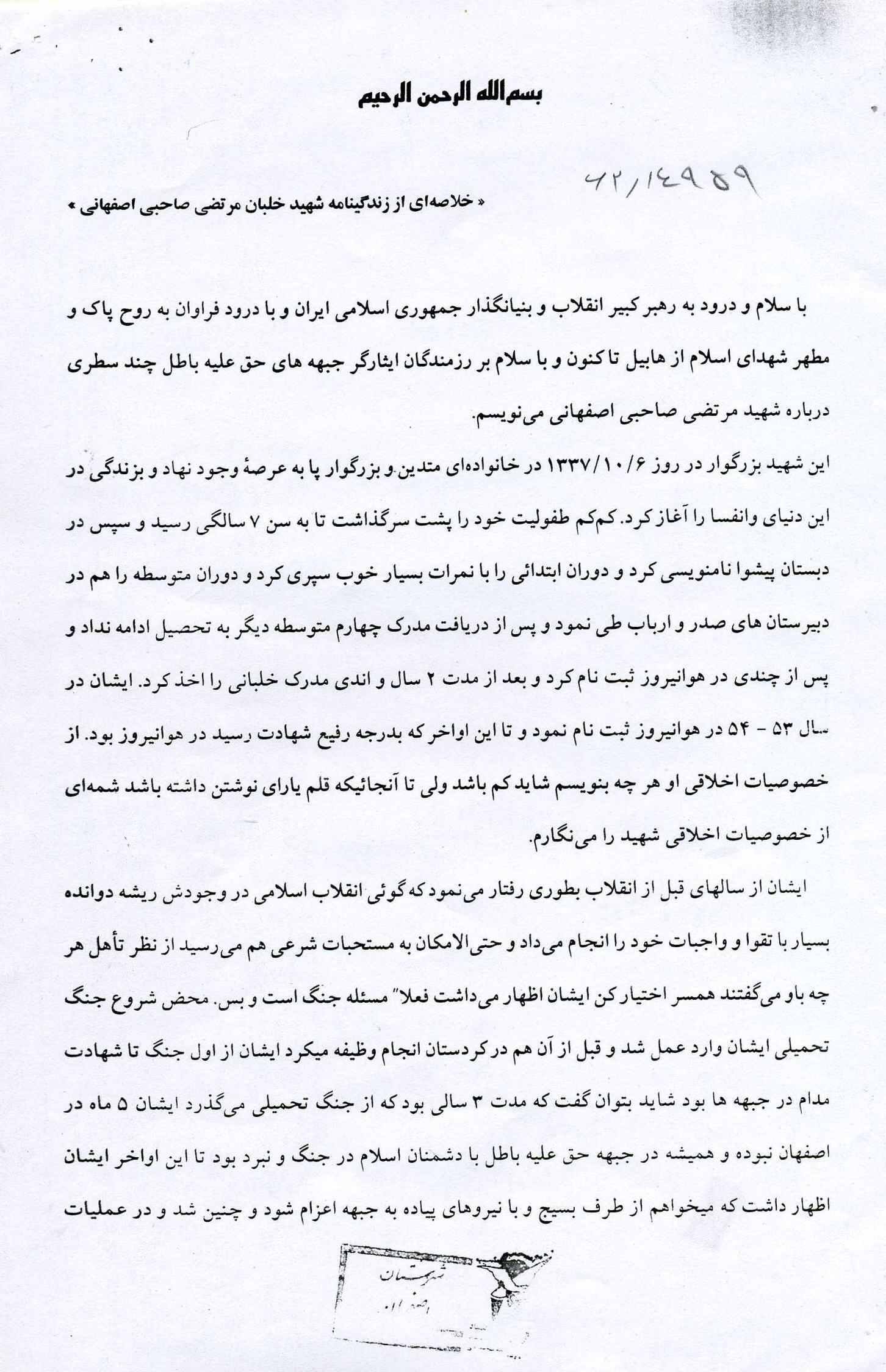 اسناد مرتبط با شهید مرتضی صاحبی اصفهانی